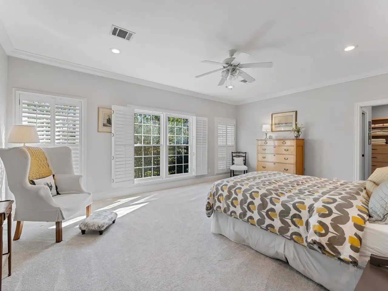 Spa-like primary suite with custom closet