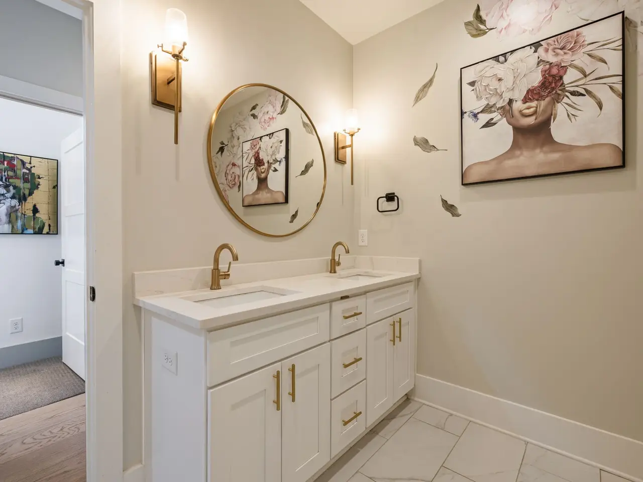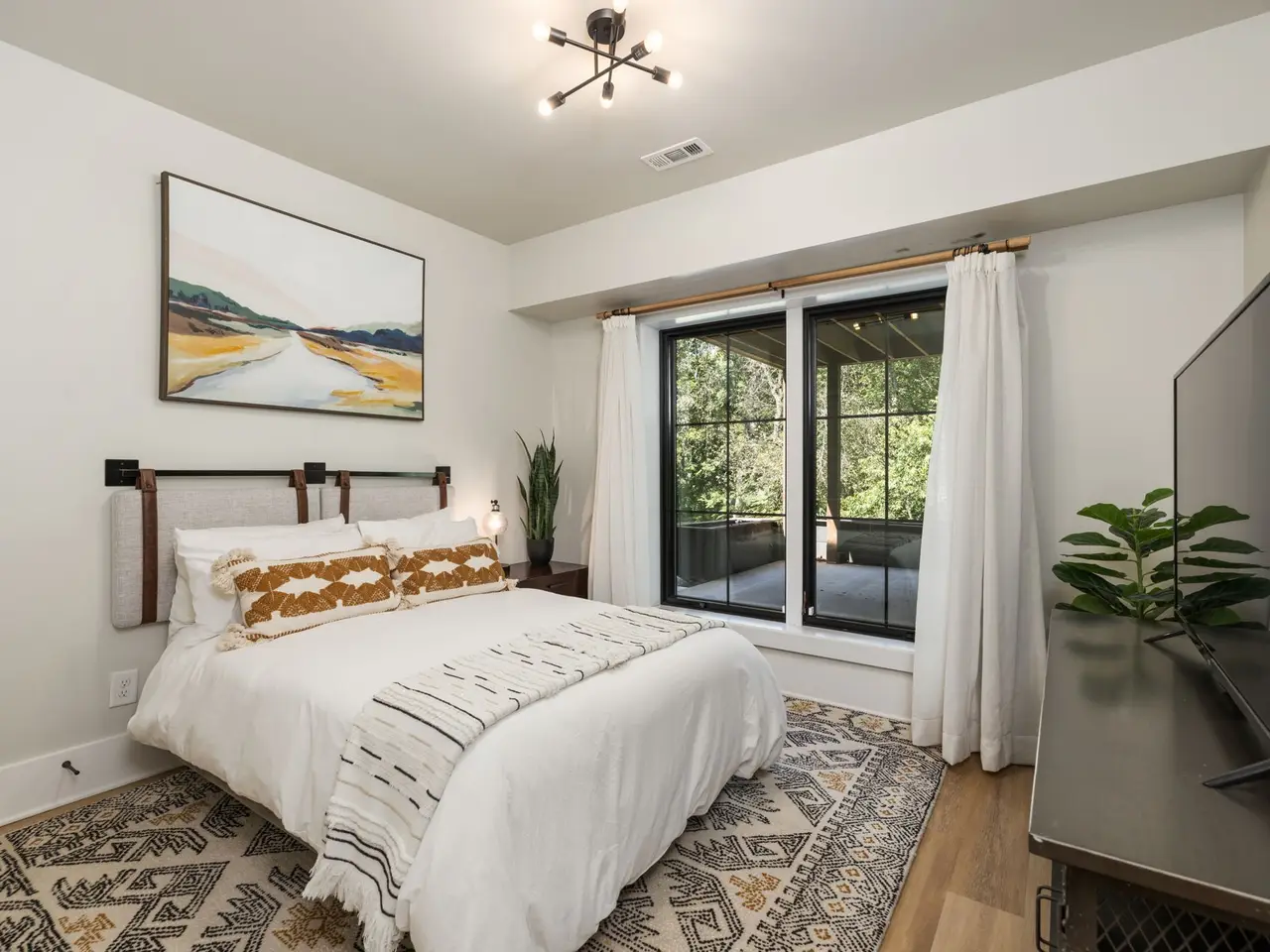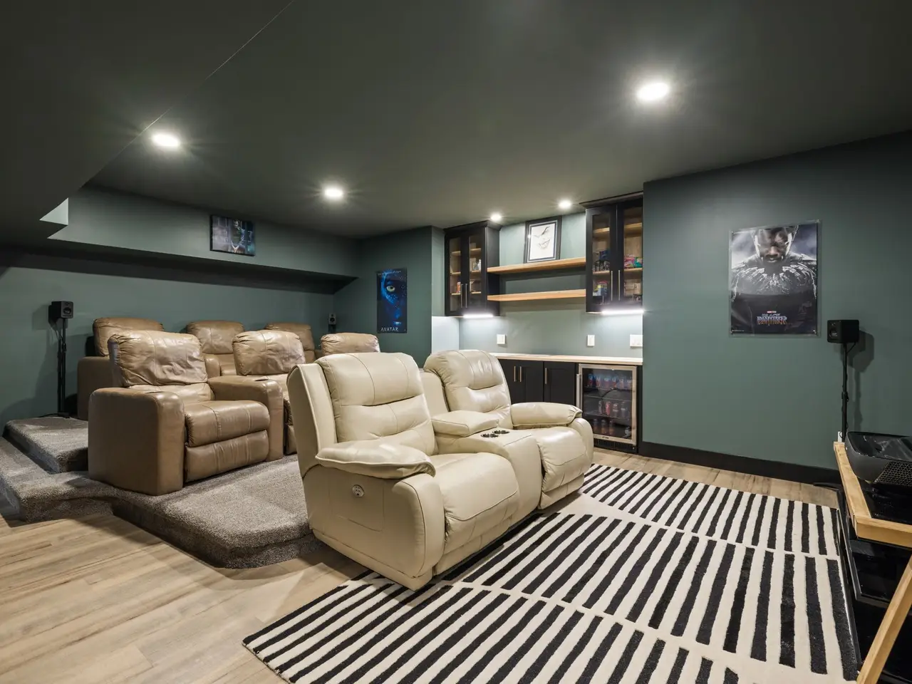 This striking Thompson's Station home blends modern elegance with warm natural accents, featuring a sleek exterior of white, black, brick, and wood finishes. Step inside to a thoughtful floor plan beginning with a moody formal living room--anchored by wainscoting and a statement light fixture--that could also serve as a formal dining space. Across the foyer, a designated office offers custom built-in shelving and cabinetry. The two-story living room impresses with wood-beamed ceilings, a shiplap and tile gas fireplace, and a cozy bay window overlooking the tranquil backyard--the perfect nook for morning coffee, a good book, or evening wine. The kitchen combines function and style with an oversized island, glass-paned cabinetry, open shelving, custom vent hood, top-of-the-line appliances, and a walk-in pantry. A spacious laundry and drop zone with custom cabinetry keeps daily life organized just off the three-car garage, which includes a versatile bay with room for an RV, trailer, or even a partial basketball court. The light-filled main-level primary suite offers a peaceful retreat with a walk-in closet, double vanities, soaking tub, and a floor-to-ceiling tiled shower. Upstairs, enjoy a media room and rec room, while the walk-out basement provides additional living space with a private apartment featuring a full kitchen, bedroom, and bath--ideal for guests. A spiral staircase connects the vaulted, screened-in deck with fireplace to the covered patio below, creating seamless indoor-outdoor living. Additional highlights include abundant unfinished storage space and a serene backyard backing to mature trees and open pasture. Located in the heart of Thompson's Station, this home is minutes from Williamson County schools, scenic parks, walking trails, and the local farmers market, with historic downtown Franklin's shopping and dining just a short drive away.
