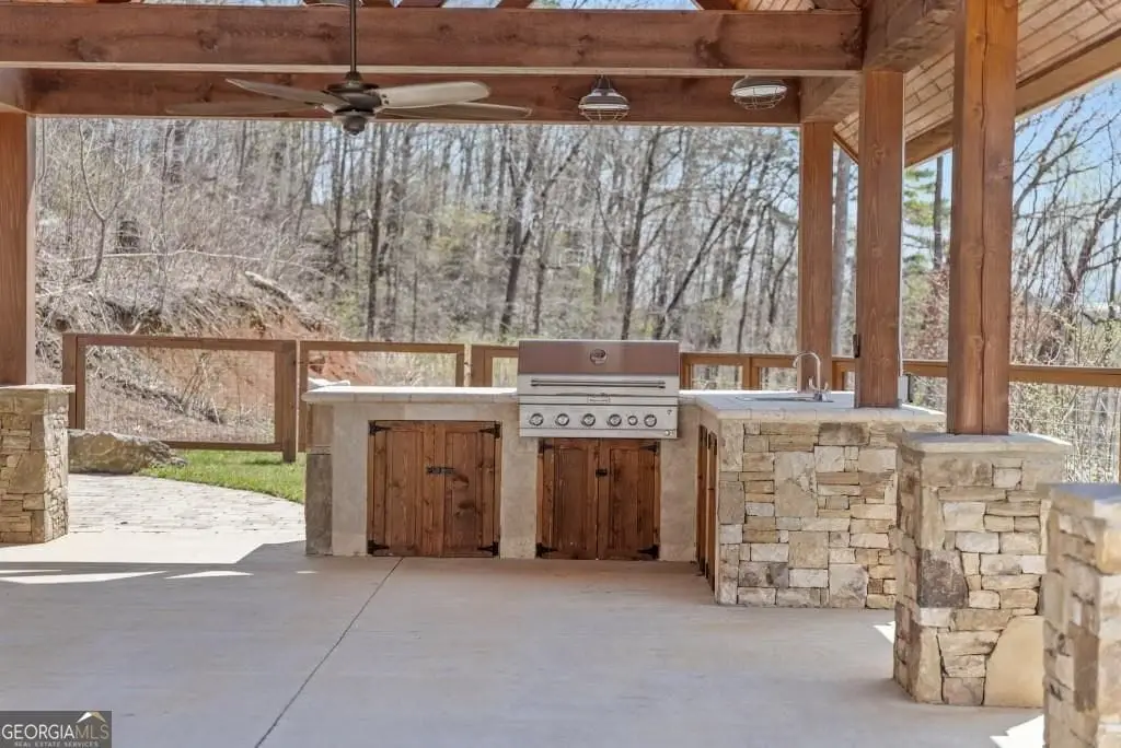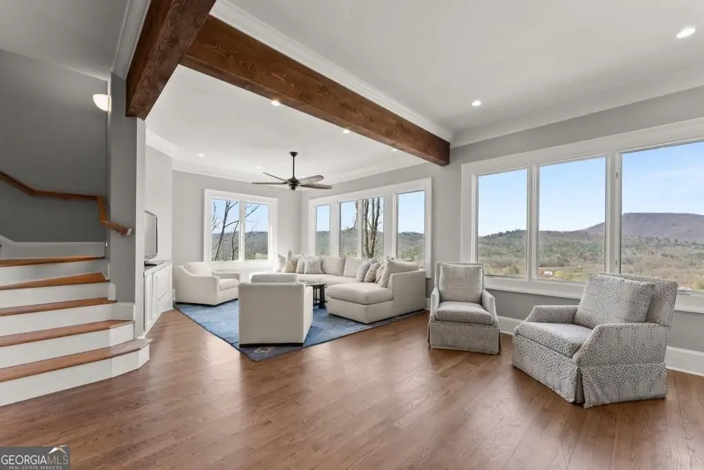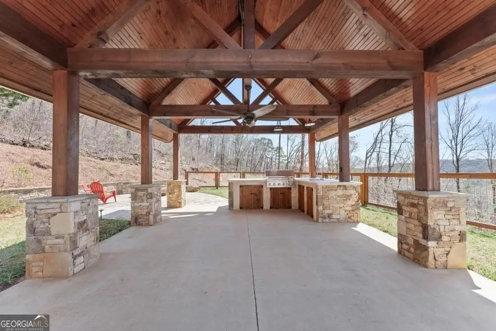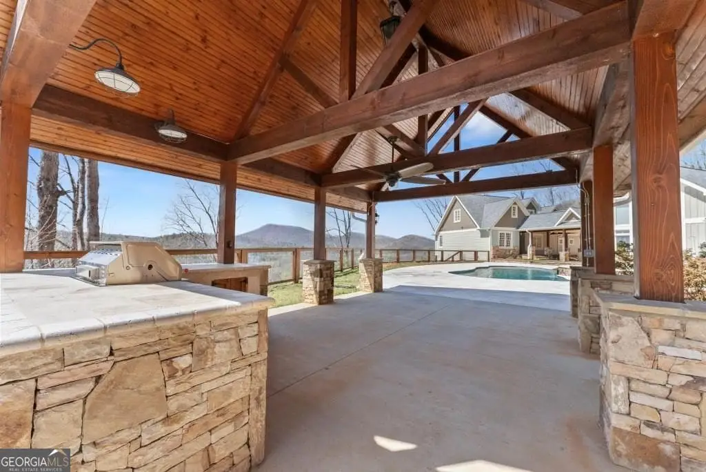 Nestled amidst the serene splendor of Tiger Mountain, this breathtaking 9-acre homestead seamlessly blends natural beauty with refined luxury. Located just 90 minutes from the heart of Atlanta and 12 minutes from the shores of Lake Burton and the charming town of Clayton, this property offers the perfect balance of accessibility and tranquil retreat. Perched high up the mountain the homestead boasts uninterrupted, panoramic views of pristine wilderness, facing expansive land managed by the US Forest Service-ensuring a timeless sanctuary with little chance of future development. Surrounded by towering hardwoods and the gentle whispers of nature this estate invites you to unwind and reconnect. The sprawling acreage provides endless possibilities whether you envision private hiking trials, a thriving garden, or simply a haven of peace and privacy. At the heart of this retreat lies an outdoor oasis designed for unforgettable gatherings: a heated pool with attached jacuzzi and cascading waterfall, a fully equipped outdoor kitchen, and a cozy fire pit area. All are crafted to elevate entertaining to a luxurious art form. Imagine hosting family and friends under the open sky, with ample space to invite then all- these amenities promise cherished memories filled with laughter, warmth and relaxation. The multilevel, Craftsman style, main house and accompanying pool house offer 8 spacious bedrooms, 8 full and 3 half bathrooms ensuring comfort and privacy for every guest. Enter the beautiful alder wood front door to discover rich hardwood floors that flow throughout. Ten-foot ceilings and eight-foot doors create an airy, expansive ambiance in every room. Adding to the allure are two stone fireplaces for those cool evenings. The owner's suite elevates luxury further with a spa-inspired bathroom featuring marble tile and a beautiful soaking tub room with a view overlooking the mountains. Convenience meets indulgence with two full kitchens, two additional kitchenettes, four laundry areas and a rejuvenating indoor sauna. Every detail has been thoughtfully designed to make life effortlessly enjoyable whether you're preparing a feast, unwinding after a day of mountain or nearby lake adventures or simply soaking in the serenity. From the crisp mountain air to the star-filled skies, this Tiger Mountain gem promises a lifestyle defined by natural wonder, boundless possibilities and the ultimate in sophisticated comfort. Imagine the memories waiting to be made in a place where luxury and nature unite in perfect harmony.