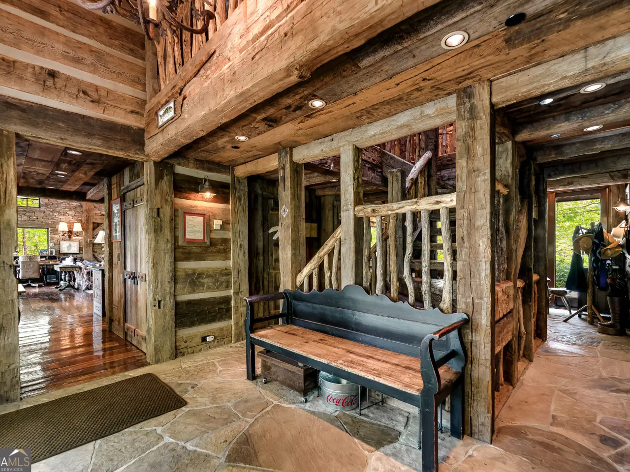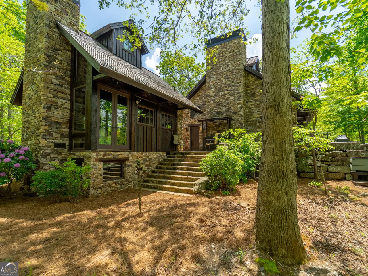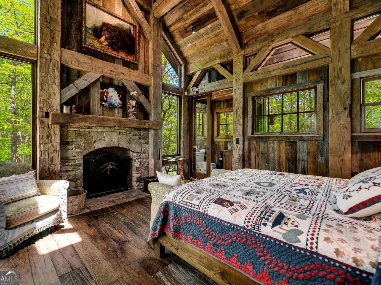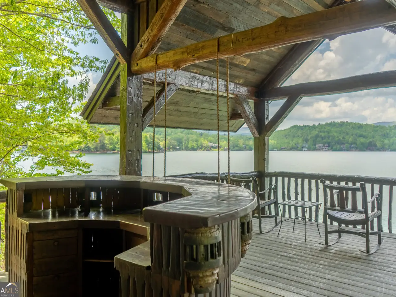 Once-in-a-Lifetime Private Island Estate on Lake Burton Discover the pinnacle of lakeside luxury with this extraordinary 6,186 sqft mountain lodge, perched on its own private island in the heart of Lake Burton's coveted big basin. Offering 360- degree lake and mountain views, total privacy, and Yellowstone-inspired rustic elegance, this one-of-a-kind estate redefines waterfront living. Crafted from reclaimed timbers sourced from Southern cotton mills, the residence exudes old-world craftsmanship and frontier charm. Hand-hewn oak siding with classic chinking, dry stack Tennessee fieldstone, rough-sawn wide plank oak floors, and steel structural supports anchor the home with strength and character. An elegant entry foyer welcomes you from two directions, showcasing east and west views through an open riser staircase with reclaimed treads and flagstone flooring. The soaring great room features lake views from 2 walls, a dramatic cupola, flanking fireplace posts reclaimed from Zachary Taylor Scott's historic home, and a moose antler chandelier complete with a buckshot hole. The chef's kitchen blends style and substance with black soapstone countertops, custom barn wood cabinetry, Viking 6-burner range, dual Bosch dishwashers, refrigerator drawers, custom soapstone sinks and two pantries. The private owner's suite features 3 walls of lake views, a barn wood clad vaulted ceiling and stone fireplace. Each guest bedroom offers unique views and details. The main floor provides 2 guest bedrooms, each with chinked log walls and a private bath. Upstairs, a clever bunk room offers access from 2 separate hallways with a full bath on each end. A large hidden pocket door opens to separate the space into 2 separate bunkrooms when desired. A library with a vaulted ceiling and lake views is currently styled as another guest bedroom upstairs. The terrace level offers a spacious yet cozy media room with a wall of bunk beds against the back wall, a kitchenette with a full fridge/freezer combo, range, sink and dishwasher and laundry room with sink. The gym was designed to mirror the upstairs bunk room, featuring full bathrooms on each end. This space could easily be converted into 2 separate guest bedrooms with the addition of a wall. Outdoors, expansive flagstone patios wrap the home offering views from all directions. Meandering trails of recycled tire wrap the Island, leading to the east wharf and swim dock, putting green, and west side 2-story, 2-stall covered boathouse overlooking one of the most epic sunset views on Lake Burton. Additional Details include: self-contained fire suppression system, copper-clad Kolbe windows, antique terracotta tile, LiteTouch lighting system, extensive security system, 1GB Fiber Optic Internet, slate roof, lightning rods, Generator, central vac. Proof of Funds required before showing. There are security surveillance cameras throughout the island. Do not attempt to access the property without listing agent being present.