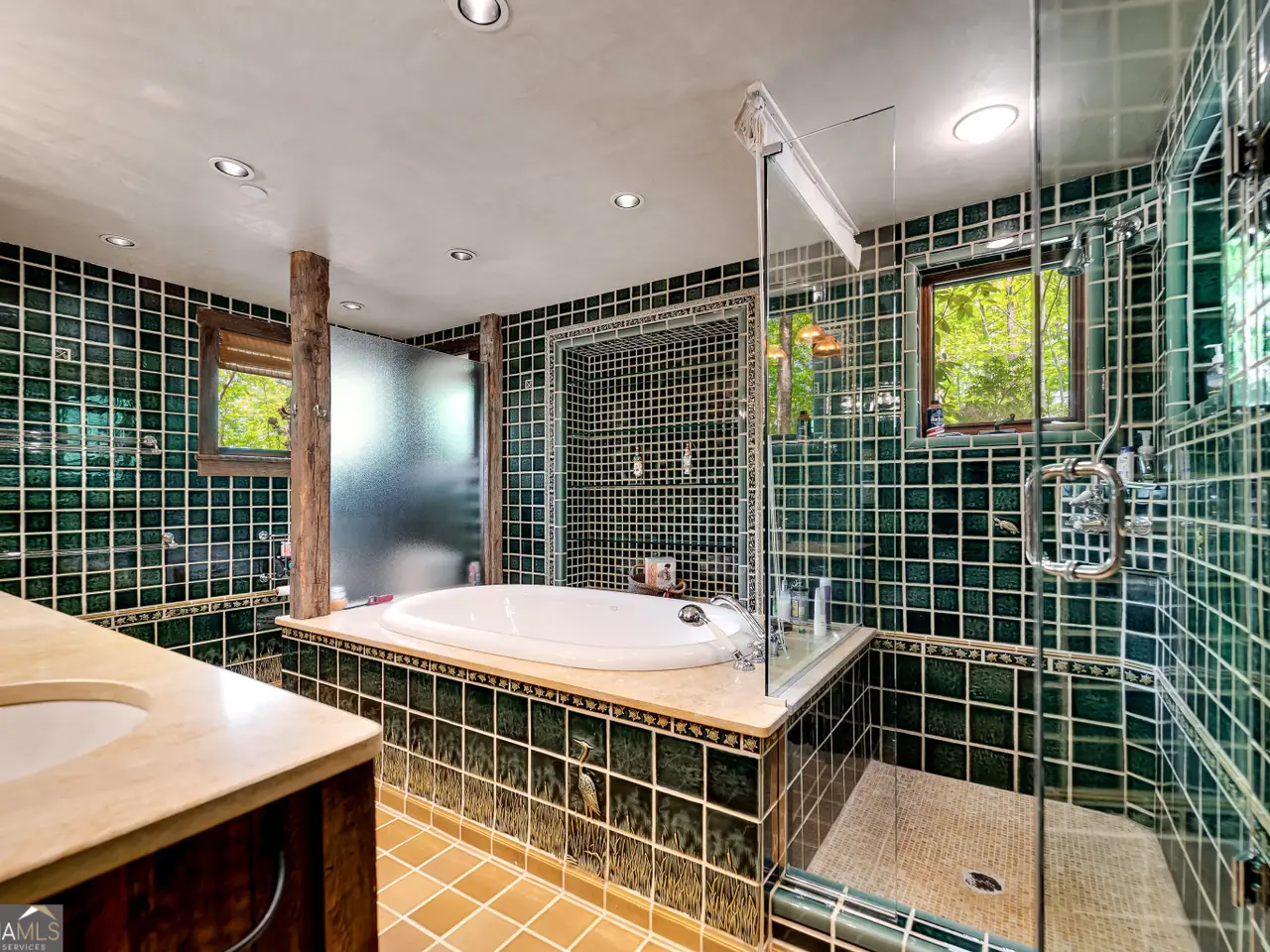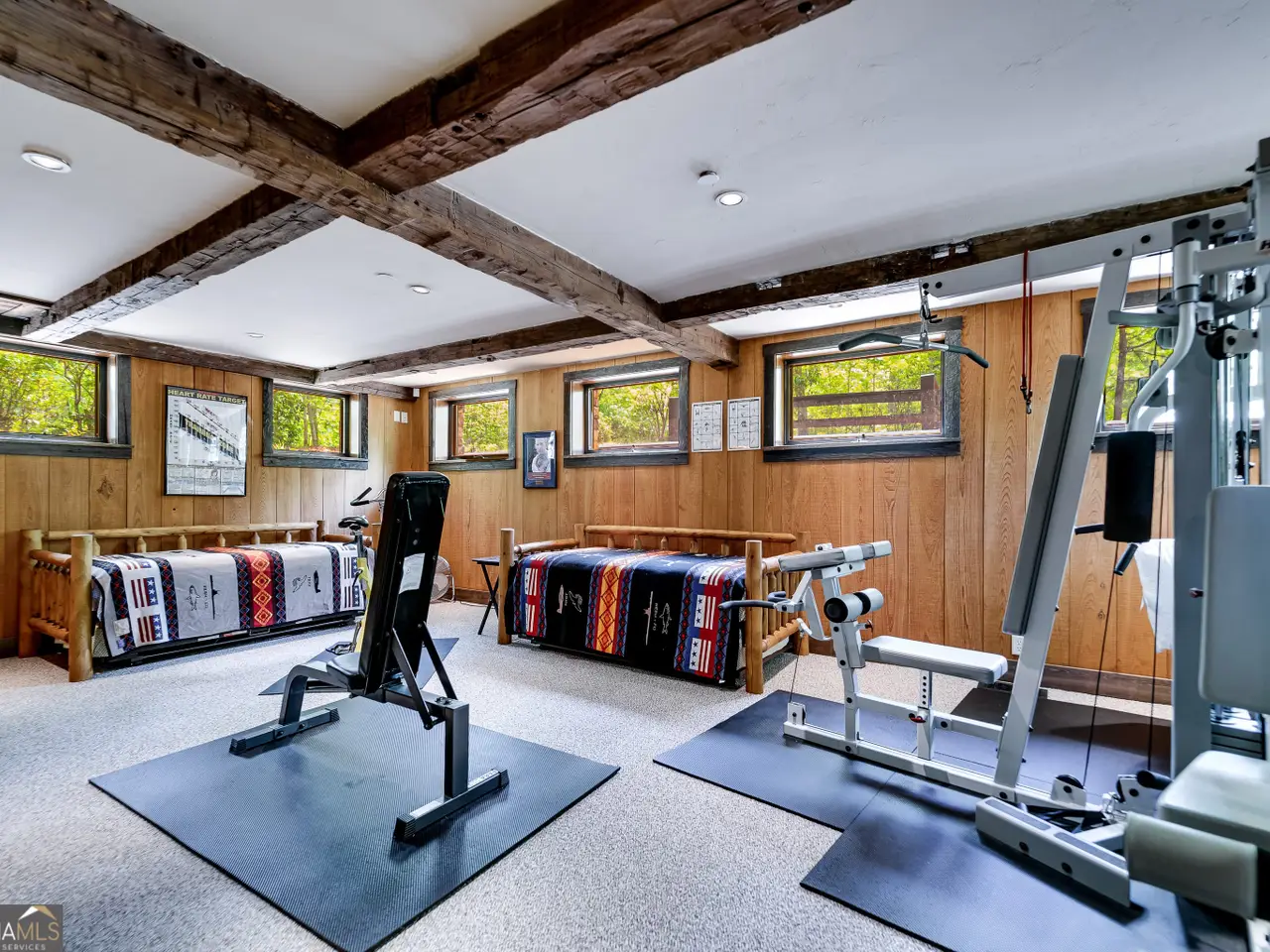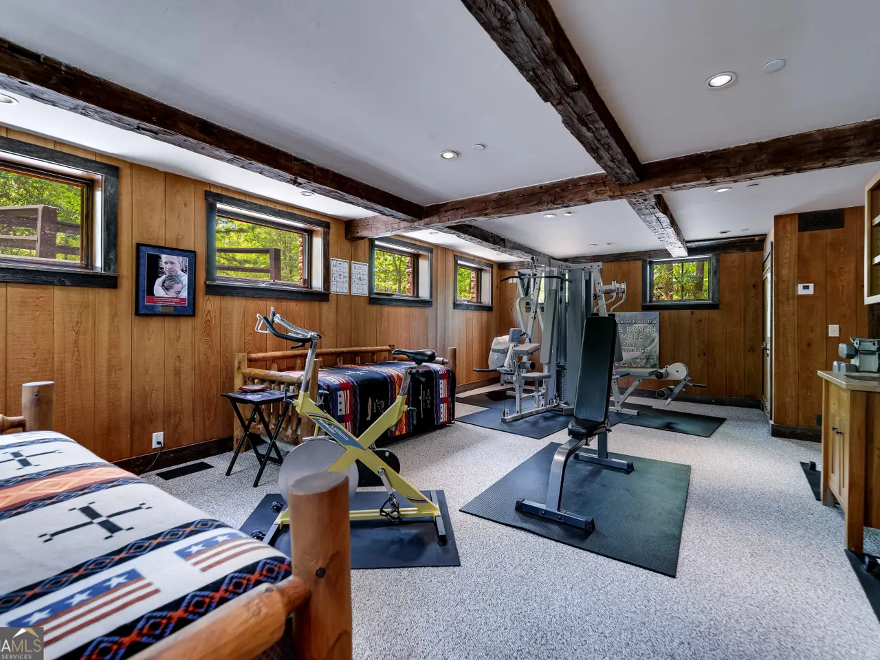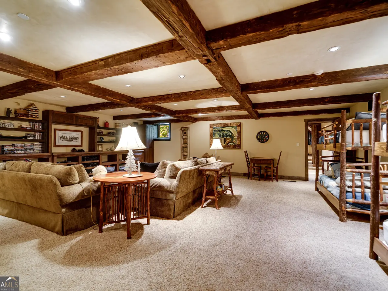 Once-in-a-Lifetime Private Island Estate on Lake Burton Discover the pinnacle of lakeside luxury with this extraordinary 6,186 sqft mountain lodge, perched on its own private island in the heart of Lake Burton's coveted big basin. Offering 360- degree lake and mountain views, total privacy, and Yellowstone-inspired rustic elegance, this one-of-a-kind estate redefines waterfront living. Crafted from reclaimed timbers sourced from Southern cotton mills, the residence exudes old-world craftsmanship and frontier charm. Hand-hewn oak siding with classic chinking, dry stack Tennessee fieldstone, rough-sawn wide plank oak floors, and steel structural supports anchor the home with strength and character. An elegant entry foyer welcomes you from two directions, showcasing east and west views through an open riser staircase with reclaimed treads and flagstone flooring. The soaring great room features lake views from 2 walls, a dramatic cupola, flanking fireplace posts reclaimed from Zachary Taylor Scott's historic home, and a moose antler chandelier complete with a buckshot hole. The chef's kitchen blends style and substance with black soapstone countertops, custom barn wood cabinetry, Viking 6-burner range, dual Bosch dishwashers, refrigerator drawers, custom soapstone sinks and two pantries. The private owner's suite features 3 walls of lake views, a barn wood clad vaulted ceiling and stone fireplace. Each guest bedroom offers unique views and details. The main floor provides 2 guest bedrooms, each with chinked log walls and a private bath. Upstairs, a clever bunk room offers access from 2 separate hallways with a full bath on each end. A large hidden pocket door opens to separate the space into 2 separate bunkrooms when desired. A library with a vaulted ceiling and lake views is currently styled as another guest bedroom upstairs. The terrace level offers a spacious yet cozy media room with a wall of bunk beds against the back wall, a kitchenette with a full fridge/freezer combo, range, sink and dishwasher and laundry room with sink. The gym was designed to mirror the upstairs bunk room, featuring full bathrooms on each end. This space could easily be converted into 2 separate guest bedrooms with the addition of a wall. Outdoors, expansive flagstone patios wrap the home offering views from all directions. Meandering trails of recycled tire wrap the Island, leading to the east wharf and swim dock, putting green, and west side 2-story, 2-stall covered boathouse overlooking one of the most epic sunset views on Lake Burton. Additional Details include: self-contained fire suppression system, copper-clad Kolbe windows, antique terracotta tile, LiteTouch lighting system, extensive security system, 1GB Fiber Optic Internet, slate roof, lightning rods, Generator, central vac. Proof of Funds required before showing. There are security surveillance cameras throughout the island. Do not attempt to access the property without listing agent being present.