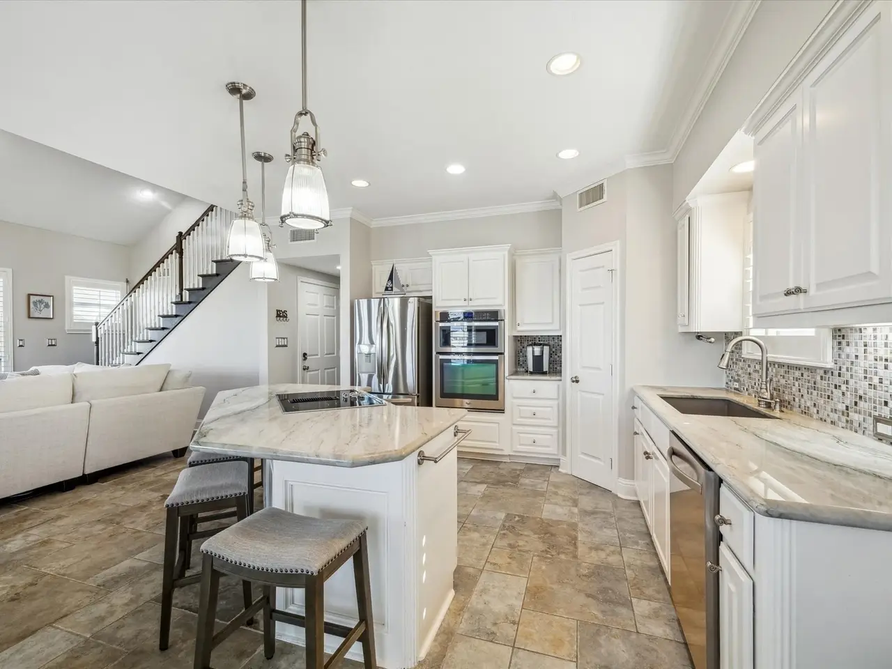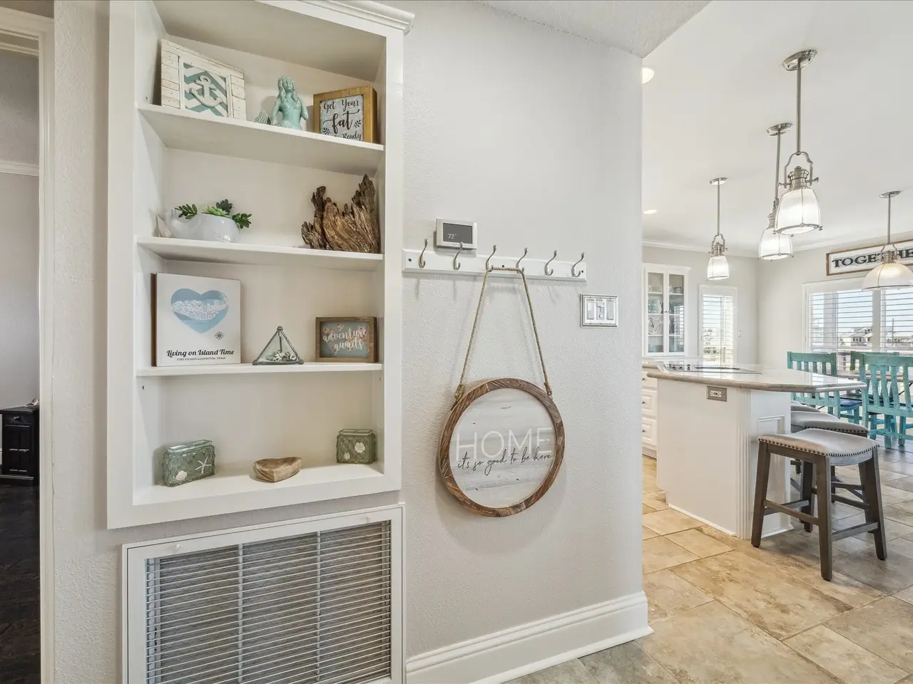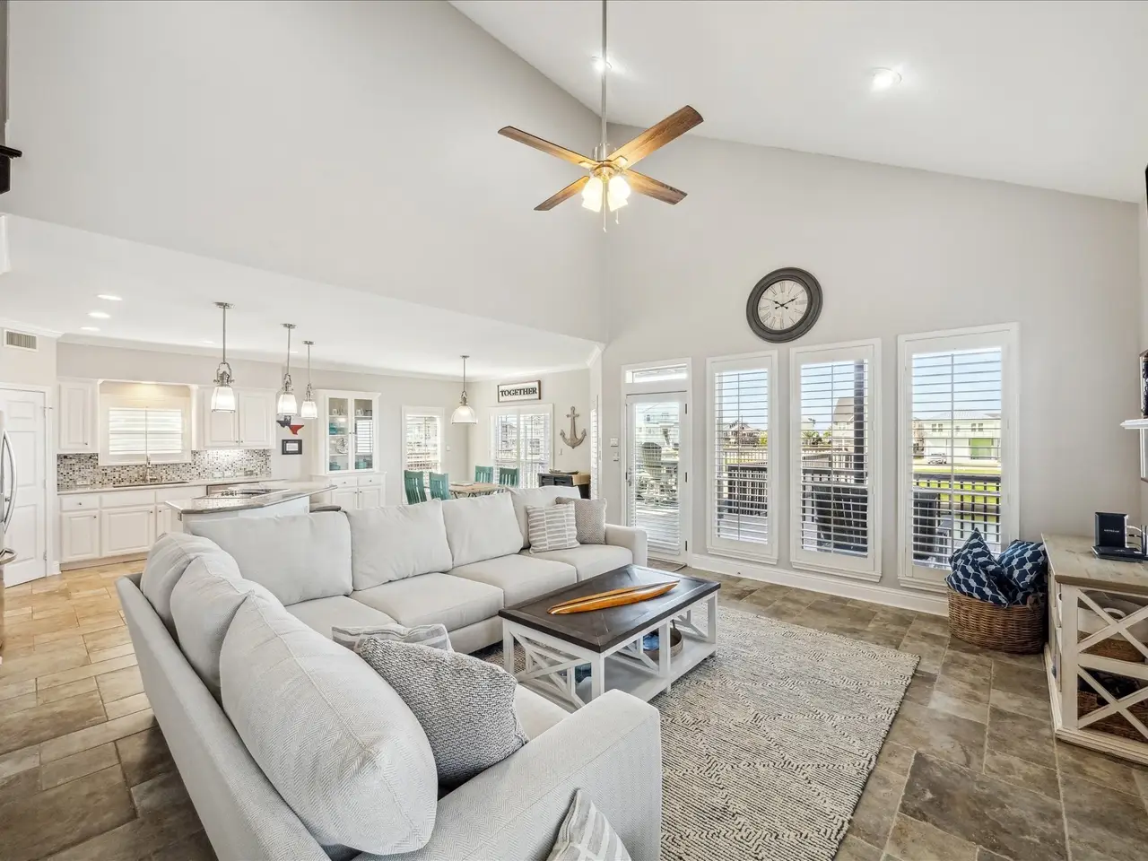 Experience waterfront living at its finest in this stunning Tiki Island home with breathtaking bay views and direct water access. Set on a spacious canal lot, this property is a dream for boating and fishing enthusiasts, with deep-water canal access to West Galveston Bay. The outdoor space features a heated pool with a swim-up bar, a recently updated synthetic Coastal Shade palapa (2023), and a fully equipped summer kitchen, perfect for entertaining. Inside, the home boasts high ceilings, wood floors, and a spacious kitchen. The oversized primary suite offers a private retreat with an ensuite bath and large walk-in closet, while three guest bedrooms ensure ample space for visitors. Thoughtful updates make this home move-in ready. Located in the exclusive Tiki Island community, this home is ideal for both vacation and full-time coastal living, just minutes from Galveston. Enjoy boating, fishing, swimming, and creating lasting memories in this one-of-a-kind home. All per Seller.