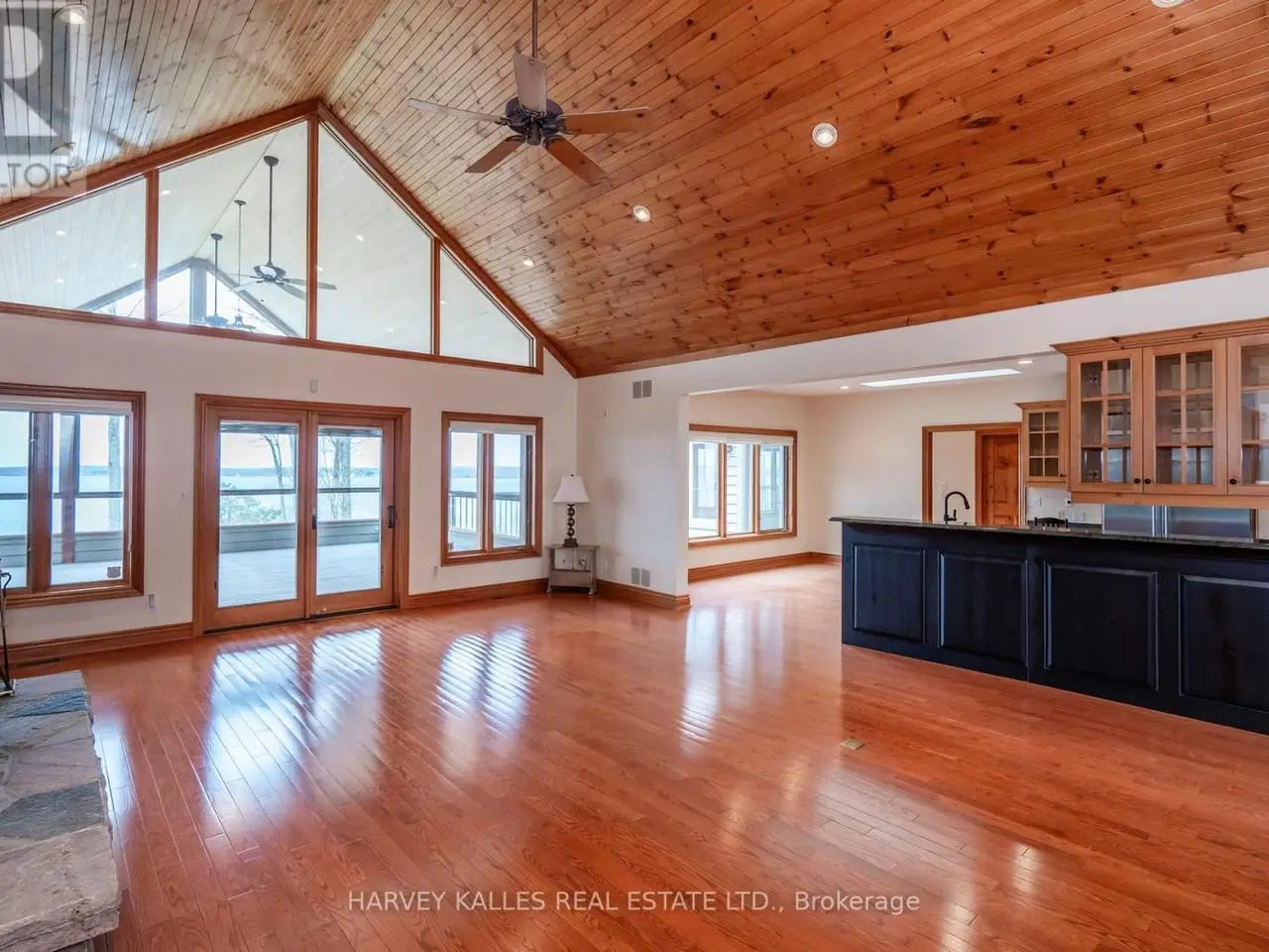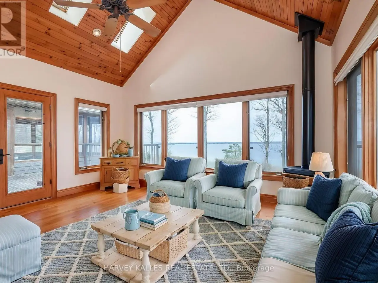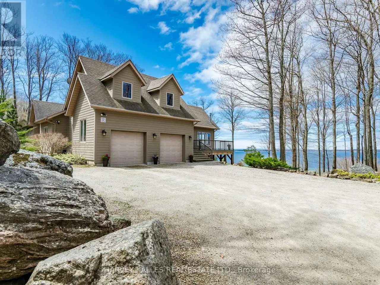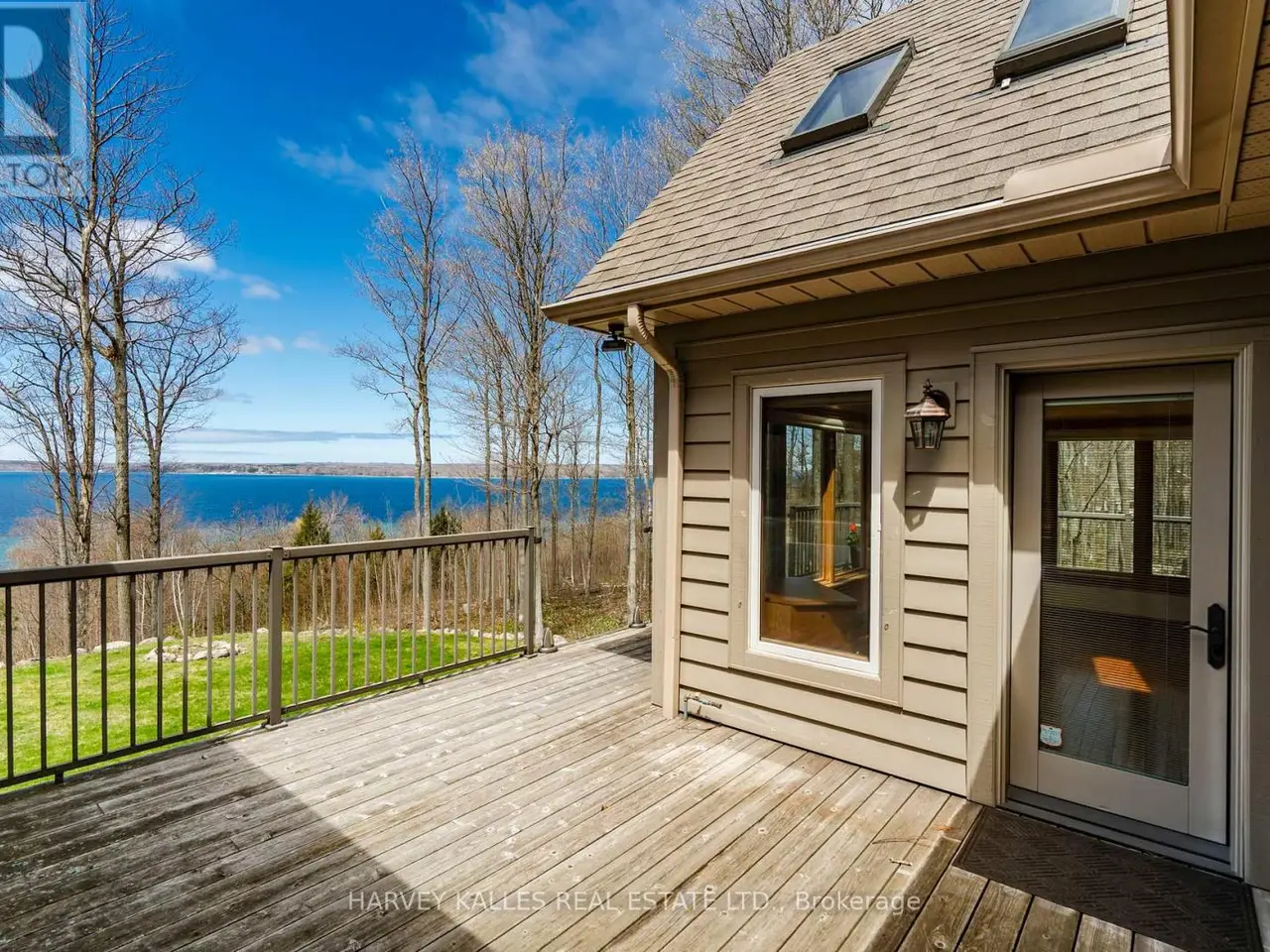 Perched high on a ridge at Cedar Point in the coveted Cedar Ridge community, this home is located just under 2 hours from Toronto. This spectacular residence captures sweeping, panoramic views over the turquoise crystal-clear waters of Georgian Bay with stunning western sunsets. Set on a premium 4-acre lot, this thoughtfully designed home offers unmatched privacy, natural beauty, and a true four-season lifestyle. Crafted for both relaxation and entertaining, this home features an open-concept kitchen, dining and great rooms with soaring vaulted ceilings, an abundance of natural light through oversized windows and skylights, and oak flooring. Warmth and ambience abound with a granite stone wood-burning fireplace in the great room and a cozy propane stove in the sunroom. The wrap-around Western Red Cedar deck and screened porch create a seamless flow between interior and exterior spaces. The private primary suite features a 5-piece ensuite and direct access to its own exterior deck - perfect for quiet mornings with a coffee and unobstructed views of the Bay. The walkout lower level, with in-floor radiant heating and the upper level loft, offer additional living space for family and guests. Located near the well-known Thunder Beach community, Awenda Provincial Park, Lafontaine Beach & the towns of Penetanguishene and Midland. World-class skiing at Blue Mountain and Horseshoe Valley is just 40 minutes away. While nearby golf courses, sailing clubs, skiing clubs, trails, and sandy beaches offer recreation for every season. A rare opportunity to own a four-season retreat in a truly breathtaking setting! (id:6370)