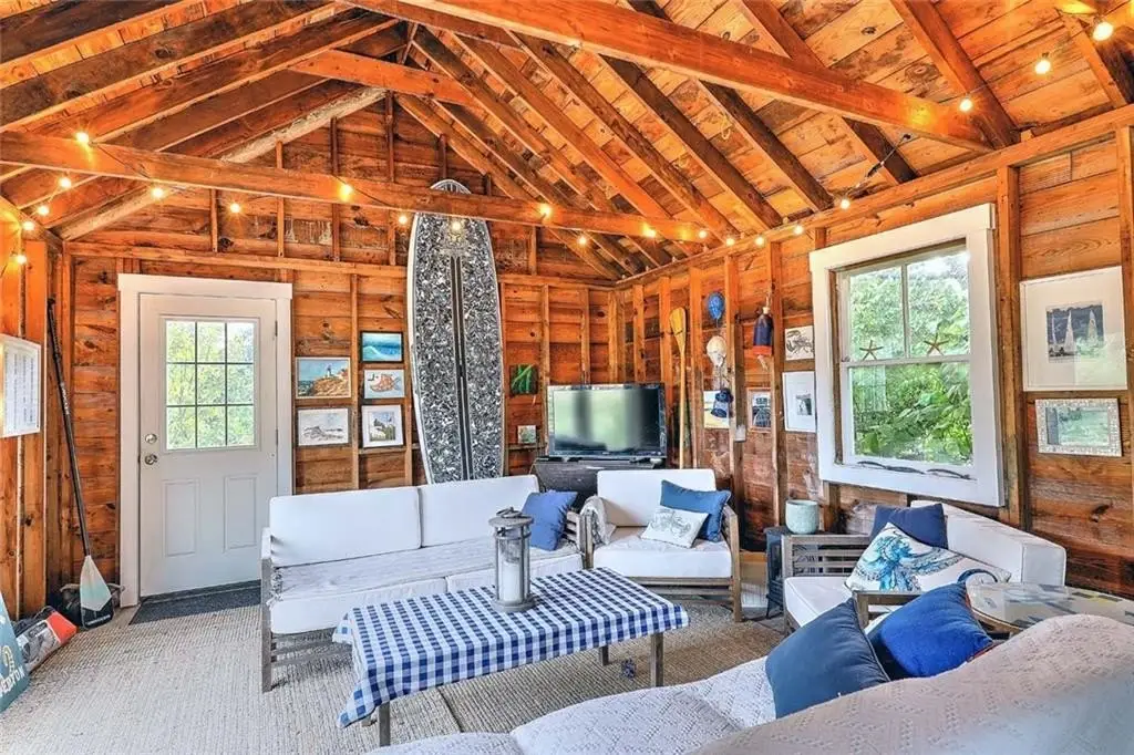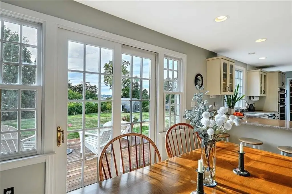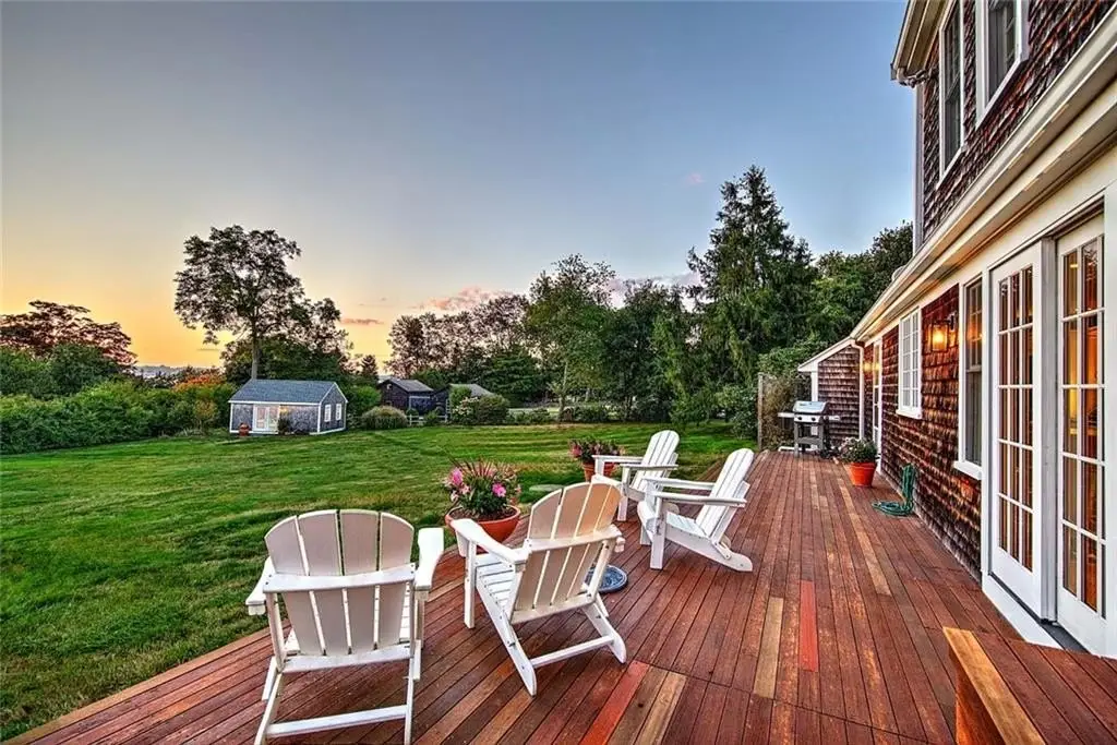 Just steps from the Sakonnet River, with deeded shoreline access and a mooring, 80 Leonard offers the best of coastal living. This 3-bedroom home features an updated, open floor plan that flows effortlessly from kitchen to dining to living areas—perfect for entertaining or simply enjoying the relaxed seaside lifestyle. A first-floor bedroom with fireplace, two additional bedrooms and a full bath upstairs, and fully renovated bathrooms throughout provide comfort and flexibility. Multiple doors open to expansive decks and a generous lawn, where sweeping sunset views over the water create the ideal backdrop for gatherings. Privately tucked at the end of a cul-de-sac, the property also includes an attached garage, a 300 SF studio/retreat, and an outdoor shower for rinsing off after a day on the water. Whether year-round or seasonal, this home is a true coastal retreat.
