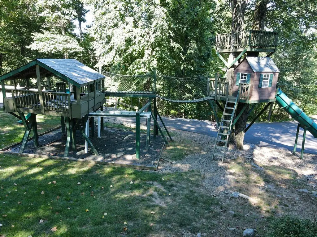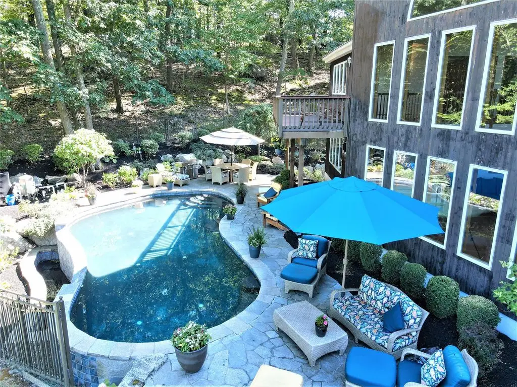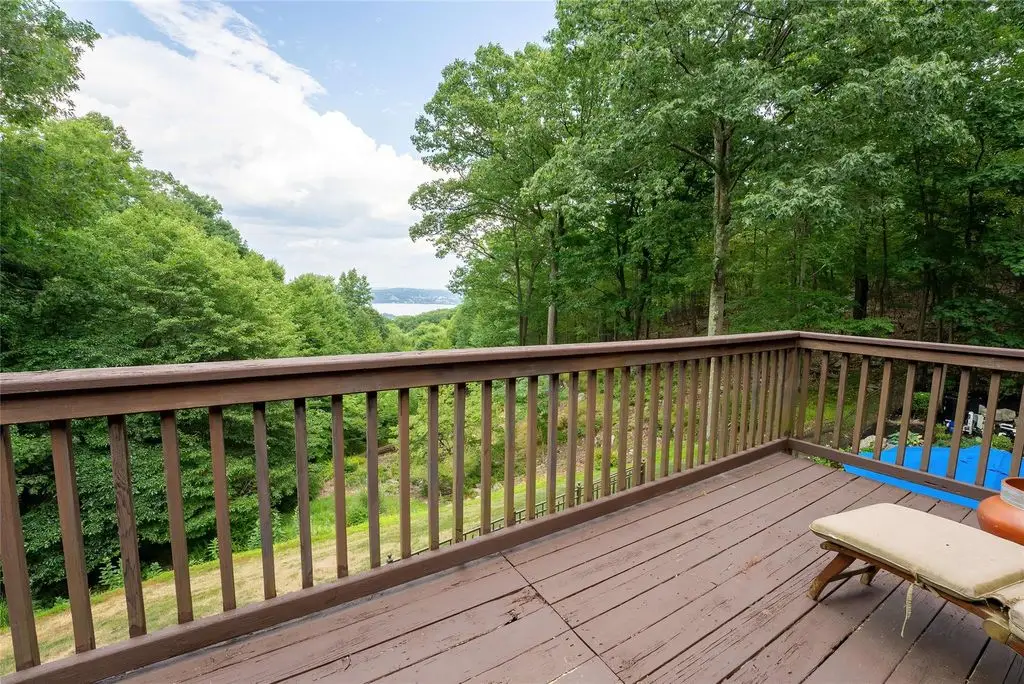 STUNNING CONTEMPORARY WITH SWEEPING RIVER VIEWS IN A PRIVATE LAKE COMMUNITY YET AMAZINGLY CLOSE TO New York City- Looking for a spacious, high-end daily or weekend retreat Look no further. Dramatic 2-story walls of windows showcase the glorious natural setting which is adjacent to Harriman State Park and overlooking the majestic Hudson River. A brand new eat-in kitchen with many beautiful and expensive finishes and appliances has just been completed and is a great place to prepare for and entertain guests at the same time. Large or small groups are easily accommodated in the spacious formal dining room next to the kitchen and leading to the impressive Great Room, truly worthy of its name. The sought-after open floorplan featuring this exceptional Great Room with spectacularly high ceilings, a motorized chandelier and striking fireplace connects all rooms. A room on this level used as an office or den, could serve as another bedroom, if you want two on the main level. A breathtaking catwalk framing the entire second level invites you upstairs. All rooms are large with light colored hardwood floors which serve to enhance the abundant natural light . The primary bedroom has its own fireplace, huge spa bath with a double sink vanity, whirlpool tub, separate shower and private deck facing the river. Nearby bedrooms have their own viewing deck too so all can be enchanted by the uniquely picturesque views. The partly finished basement adds lots of additional space and a wealth of handy storage. A breathtaking infinity pool with stone patio and energy efficient heating system faces the river and an amazing treehouse built by the owners to delight their grandchildren. Don't miss the community lake steps away with waterfront activities and don't forget to bring your canoes and kayaks to leave at the lakefront for easy access. Spring, Summer, Winter ,Fall 36 Ridgetop has it all.