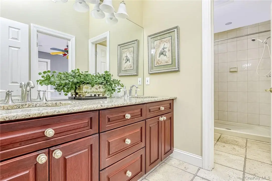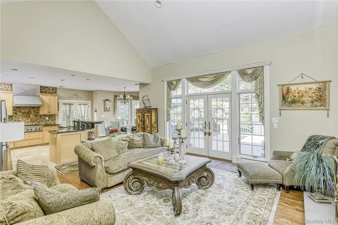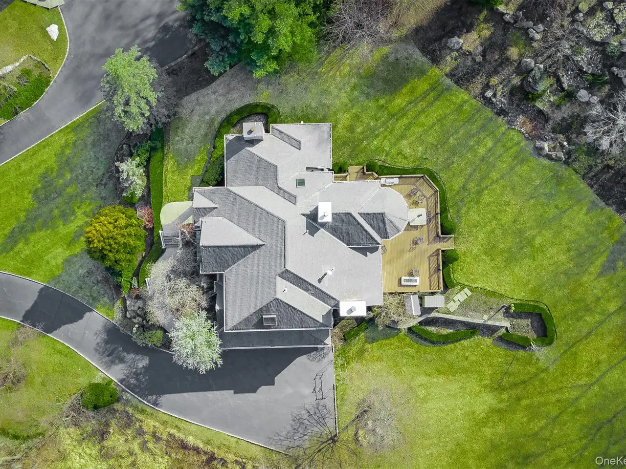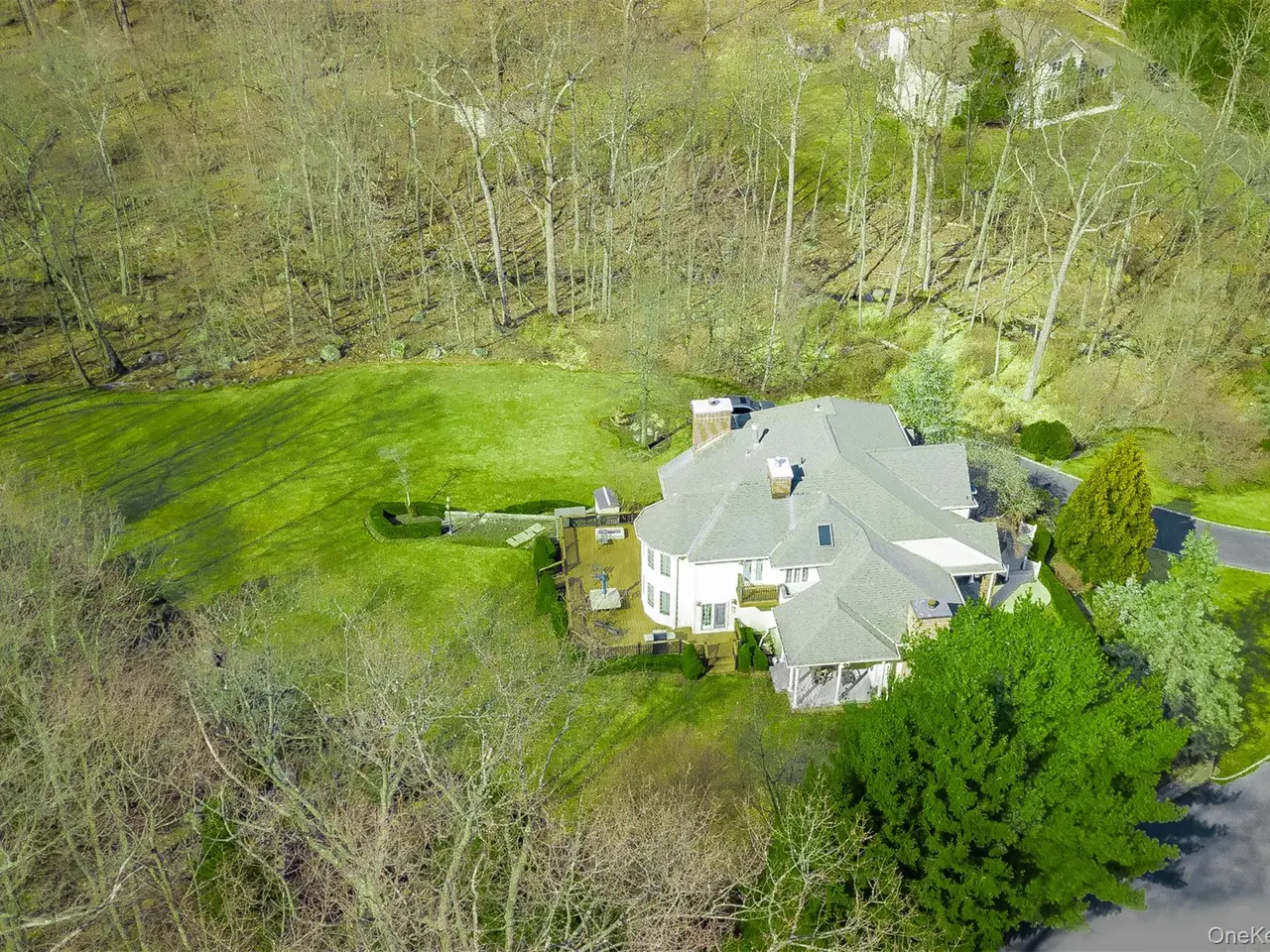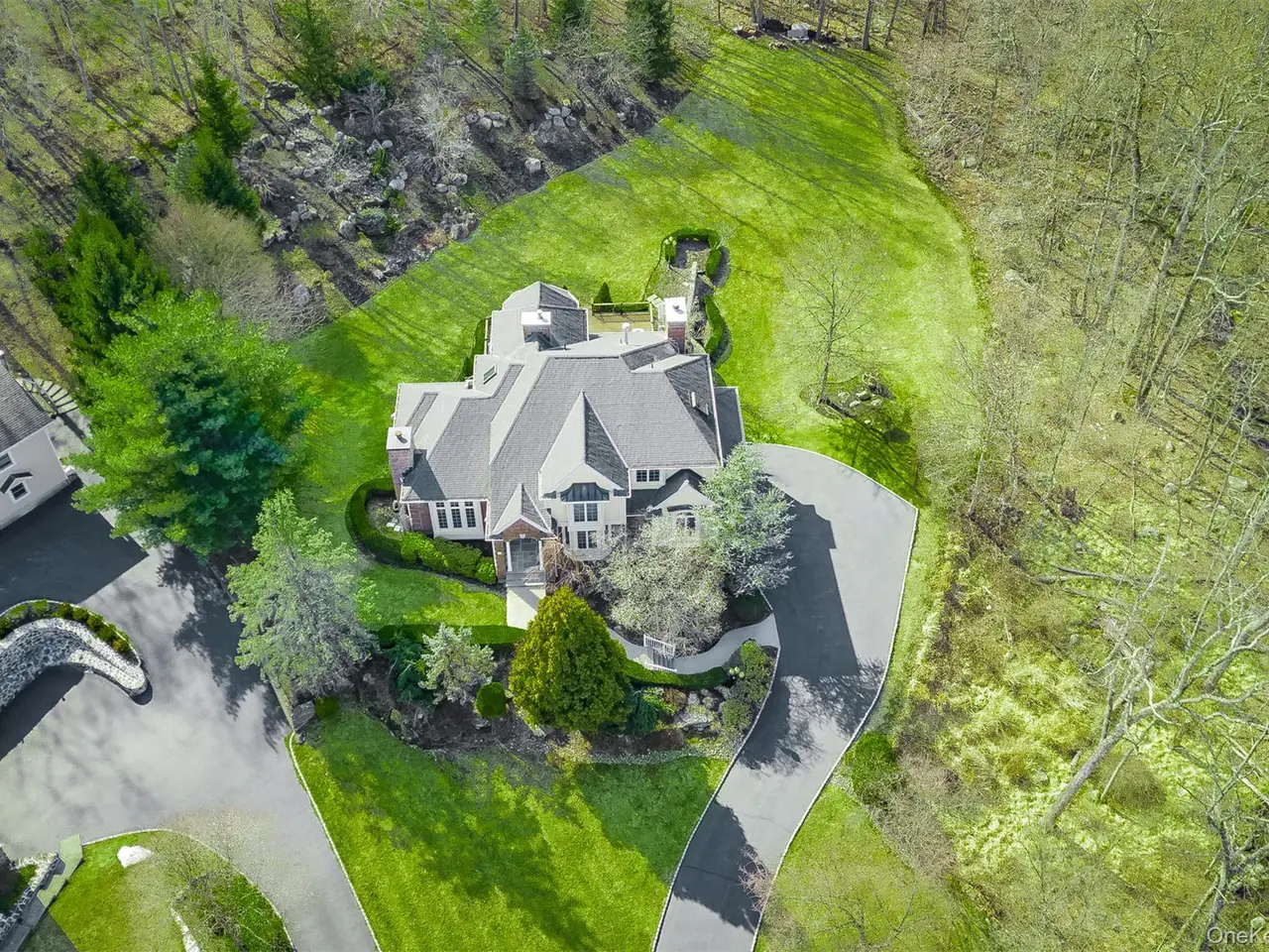 This magnificent colonial is nestled in a serene cul-de-sac with meticulously landscaped property which boarders state park land. The backyard is a true oasis with almost 2 acres of picturesque park like property that promotes privacy and tranquility. As you ascend up the drive you are met with how special this home is. This beautiful home is a thoughtfully designed 4/5-bedroom retreat that combines luxury, comfort, functionality, and entertainment seamlessly. Once inside, you are met with a cathedral foyer that boasts a stunning alabaster chandelier. The main floor is lovely with French doors, 2 wood burning fireplaces, and hardwood floors throughout. The Great Room is an outstanding entertainment space, with 9 ft. ceilings, a custom built-in entertainment center and wet bar. The Formal Living Room w/wood burning fireplace flows into the Dining Room with French doors to the backyard portico perfect for entertaining. The chef s kitchen features custom cabinets, granite countertops, double Thermador electric ovens, 6-burner Thermador gas cooktop and hood that allows you to entertain with ease. The kitchen, where loved ones gather flows into the family room with vaulted 16ft ceilings, fireplace and access to an oversized new trex deck that seamlessly connects indoor and outdoor spaces. The office with custom cabinets is a classic, which could also serve as a first floor bedroom. The spacious and luxurious primary bedroom is perfection with 12 ft. vaulted ceilings, a gas fireplace, balcony that faces the waterfalls outside, an en-suite with large tub, steam shower, double vanities and 3 walk-in closets. The second bedroom has 12 ft. ceiling and hardwood floors w/dedicated full bath. The third and forth bedroom share a spacious full bath with Jack and Jill doors, double sinks and water closet. The finished lower level has endless possibilities w/ 2 spacious versatile rooms ready to be designated(media room, gym, or potential en suite ), wine room, full bathroom, storage room and access to a 3 car pristine garage. This home is very energy efficient with 5 zones for heat and 2 zones for central AC. Other features: security system. sprinkler system and indoor/outdoor sound system. With entertainment spaces throughout the home and the vast backyard offers amazing space for family gatherings, large special events or simply unwinding and enjoying your own private sanctuary. Only 50 minutes to NYC; minutes to Bear Mountain State Park; close to marinas, golfing, hiking trails, and 7 lakes. Enjoy fishing, kayaking, hiking, and boating or jet skiing on the Hudson River. LOW TAXES! This home is a must see. A true gem!