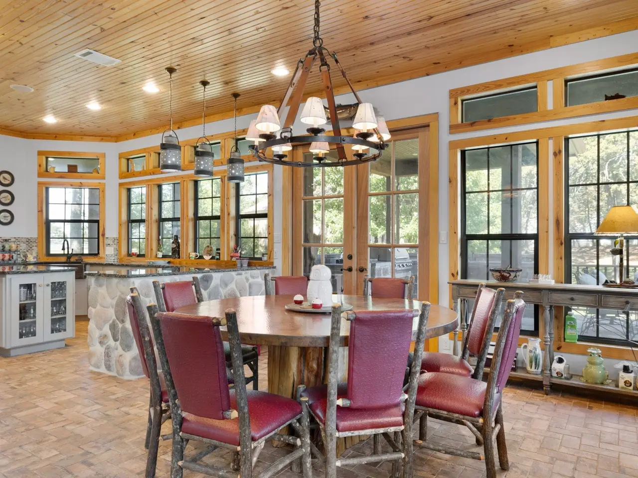 Set on the coveted shores of Cedar Creek Lake, this five-bedroom, three-and-a-half bath masterpiece redefines lakefront living with 2,933 square feet of refined comfort and style. Showcasing rustic elegance at its finest, the home features dramatic ceilings, striking wood and stone accents, and an open floor plan wrapped in windows that capture dazzling water views from every angle.Designed for both grand entertaining and relaxed living, the residence offers multiple patios, a wraparound porch, and an expansive backyard anchored by a lakeside firepit. Whether hosting sunset dinners by the built-in outdoor grill, enjoying morning coffee on the porch, or gathering under the stars, every moment here feels like a private retreat.Direct access to the water elevates the experience, with a private boat ramp and dock offering endless opportunities for boating, fishing, and waterfront leisure. After a day on the lake, retreat to your serene patios or welcome guests with ease thanks to ample parking and thoughtfully designed outdoor spaces.Rarely does a home of this caliber become availablecombining rustic charm, modern luxury, and unrivaled lakefront access in one of the areas most desirable settings. Perfect as a year-round residence or a luxurious getaway, this property represents the pinnacle of Cedar Creek living.