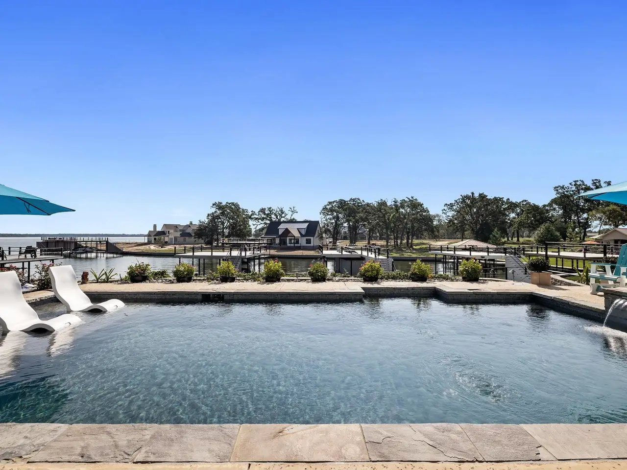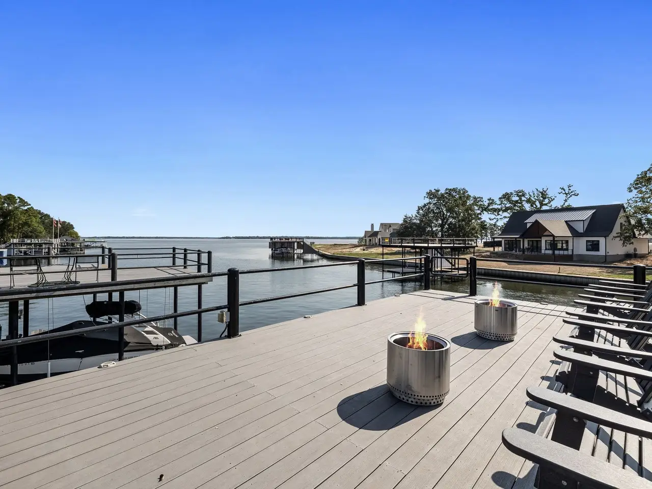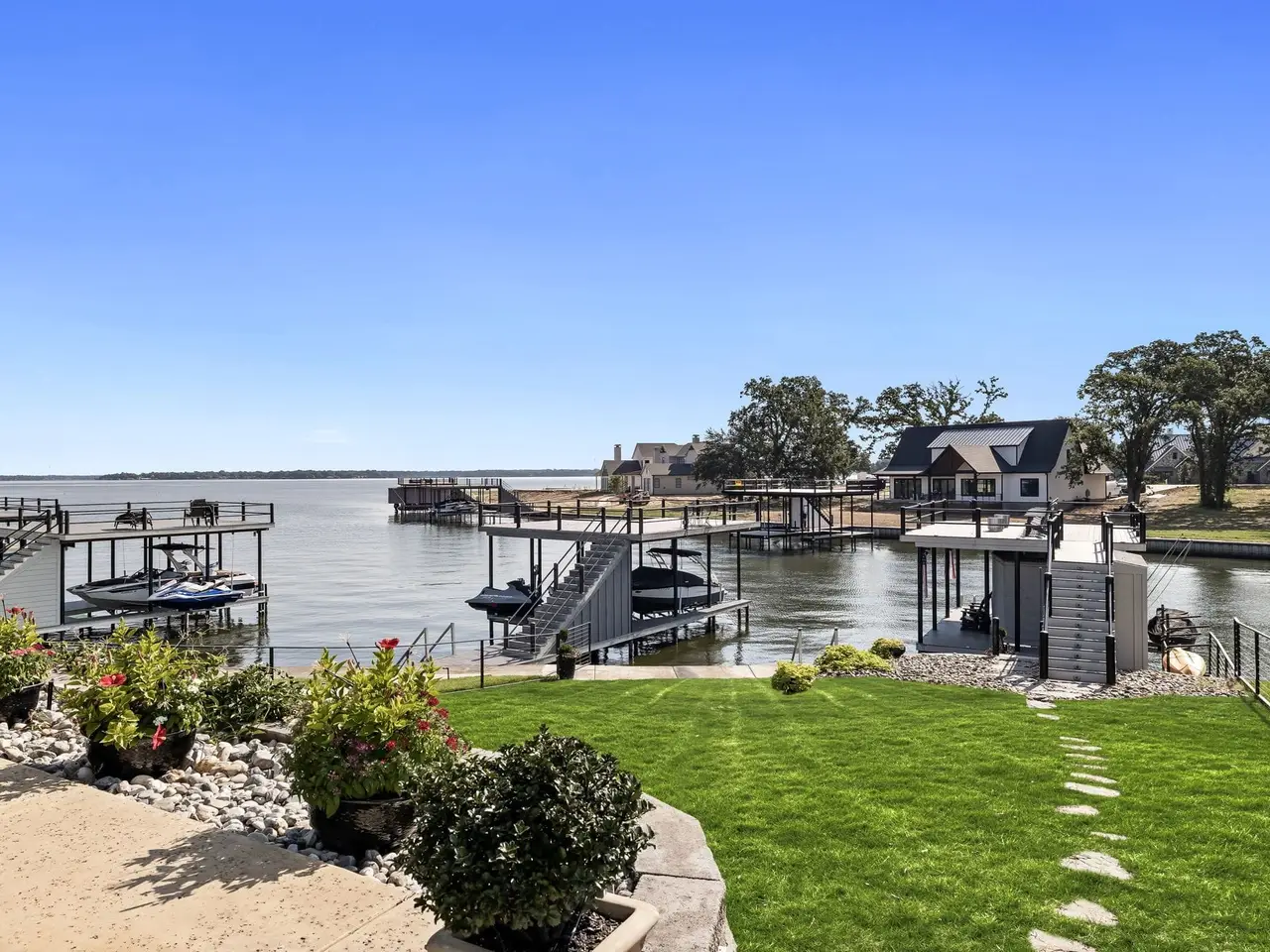 Simply stunning lake house for the discriminating buyer who wants to walk right in and enjoy! There's not a to-do list on this one; they custom-built and thought of everything and more! Located in one of Cedar Creek Lake's newest gated neighborhoods on the west side of the lake, for a quick commute from the Metroplex, you’ll love the lock-and-leave lifestyle. The open floor plan flows right on out to the dreamiest outdoor living spaces to make entertaining a breeze. The outdoor space has remote control screens for shade or enclosing the space, then overhead radiant heaters and an outdoor fireplace making this a space for all seasons. The primary suite downstairs overlooks the lake and has a spa-worthy bathroom. Kitchen is as beautiful as it is functional with quartz countertops, cabinets, and storage galore, a 6-burner gas cooktop, and the heart of the kitchen is a 4 x 8 foot island! Upstairs is a second living area with two bedrooms, a bunk room, an office space, and a balcony with miles and miles of lake views. The pool overlooking the lake is the gem of the lakeside yard, which has a new steel retaining wall, boathouse with Trex decking and touchless cover for boat, plus additional lift for Sea Doo. Contact agent for the full list of upgrades and available furnishings.