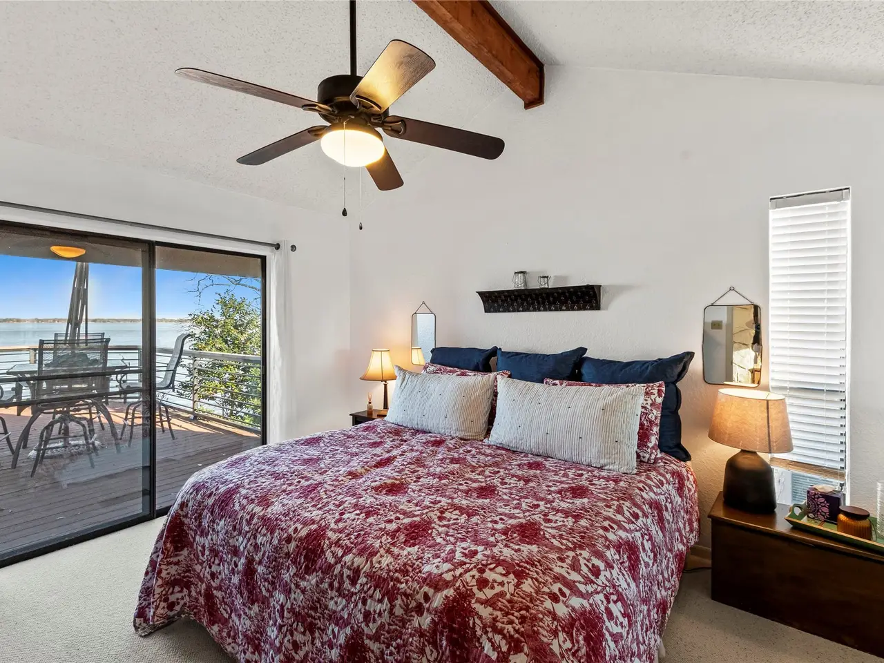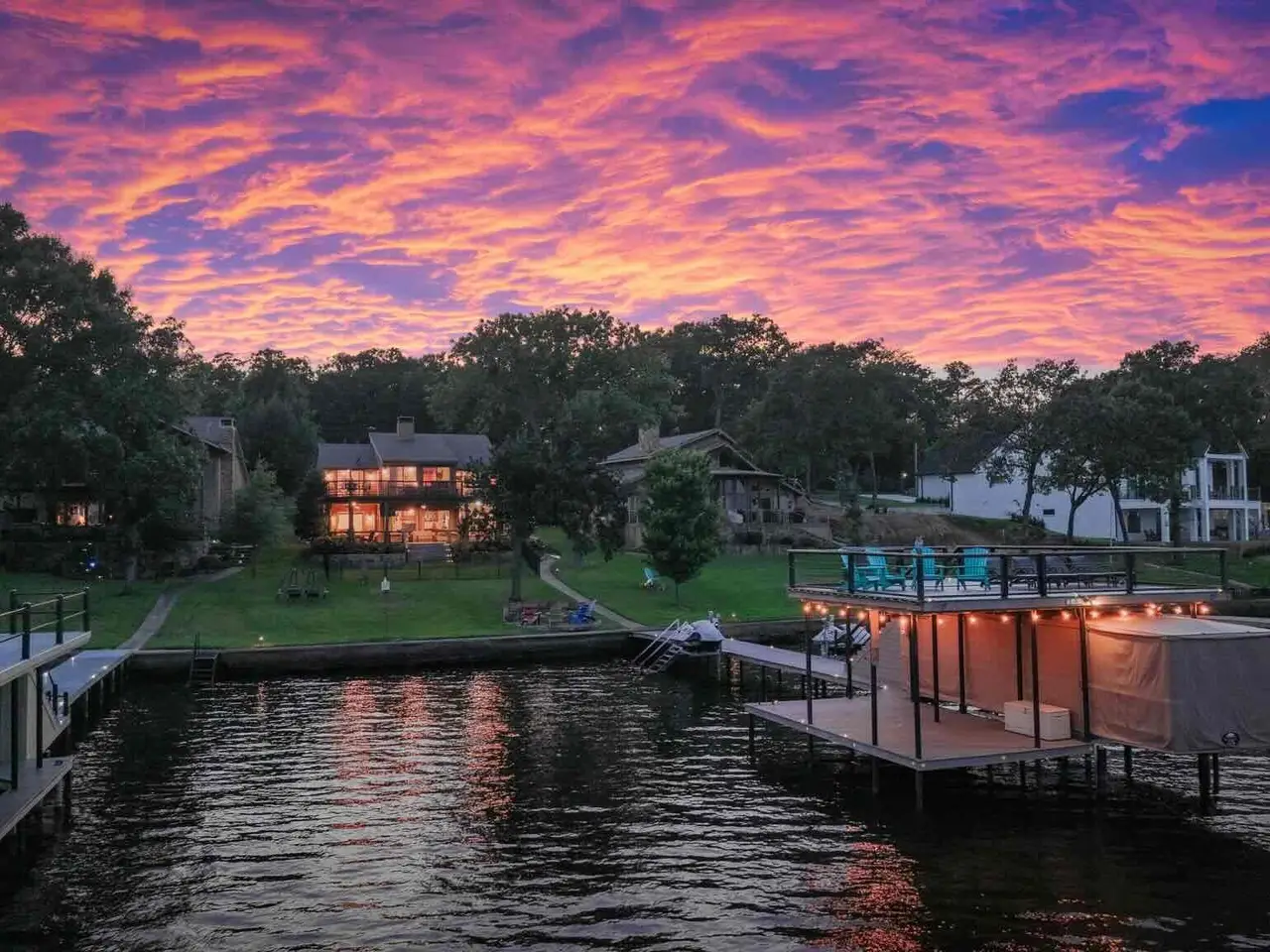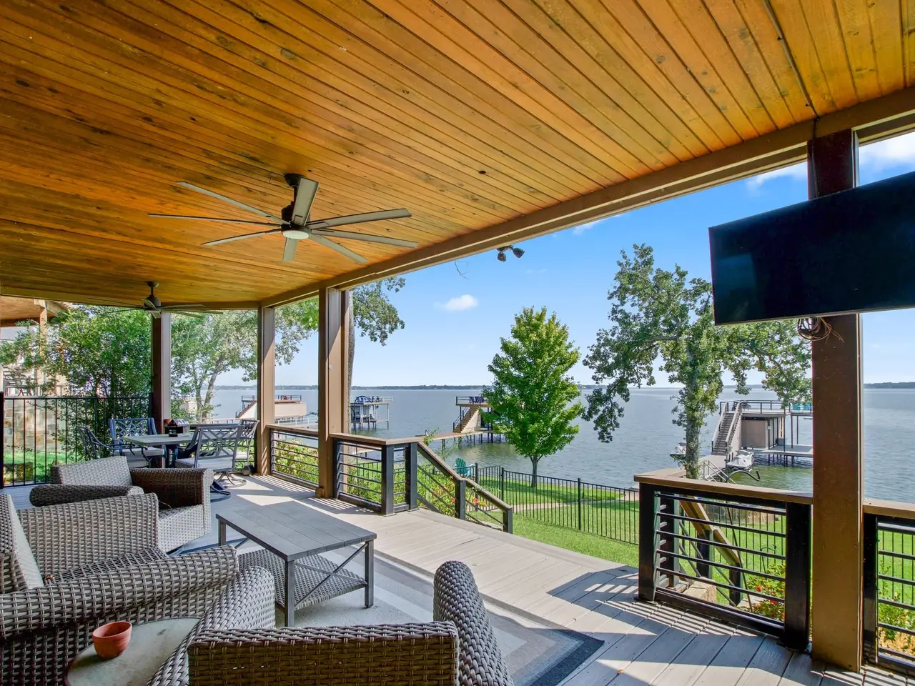 Located in the prestigious gated Heather Woods community, this home offers deep water access on the west side of Cedar Creek Lake, just a short commute from DFW. Enjoy breathtaking miles of east-facing open water views that offer the perfect backdrop for lakefront living. Sold fully furnished, this home is move-in ready, allowing you to immediately embrace the lakeside lifestyle. The top-of-the-line, composite deck boat house (built in 2019) features a party deck, covered sitting area, and two personal watercraft lifts. With the press of a button, the automatic boat cover will spoil you, making it effortless to keep your boat protected. Enjoy outdoor living at its finest with a spacious, low-maintenance covered composite deck, a large balcony, and a fenced yard with a fire pit, providing multiple areas for relaxation and entertainment. Additional features include a mosquito misting system for added comfort. Inside, the family room features large picture windows showcasing the water view and a cozy wood-burning fireplace. Theres also a bonus room that can serve as an additional living space or a game room, perfect for family gatherings.. The home boasts three en suite bedrooms, all with stunning water views and direct access to the balcony or deck. The fourth en suite bedroom is generously sized, offering the perfect space for a bunk room or additional guest accommodations. The kitchen features granite countertops, bar seating, and stainless steel appliances, making it a chefs dream. For those with a passion for water recreation, the boat and jet skis are available for purchase separately. Enjoy peace of mind with a partially wrought iron fenced backyard, ideal for kids and pets. Please note, short-term rentals are prohibited in this community.