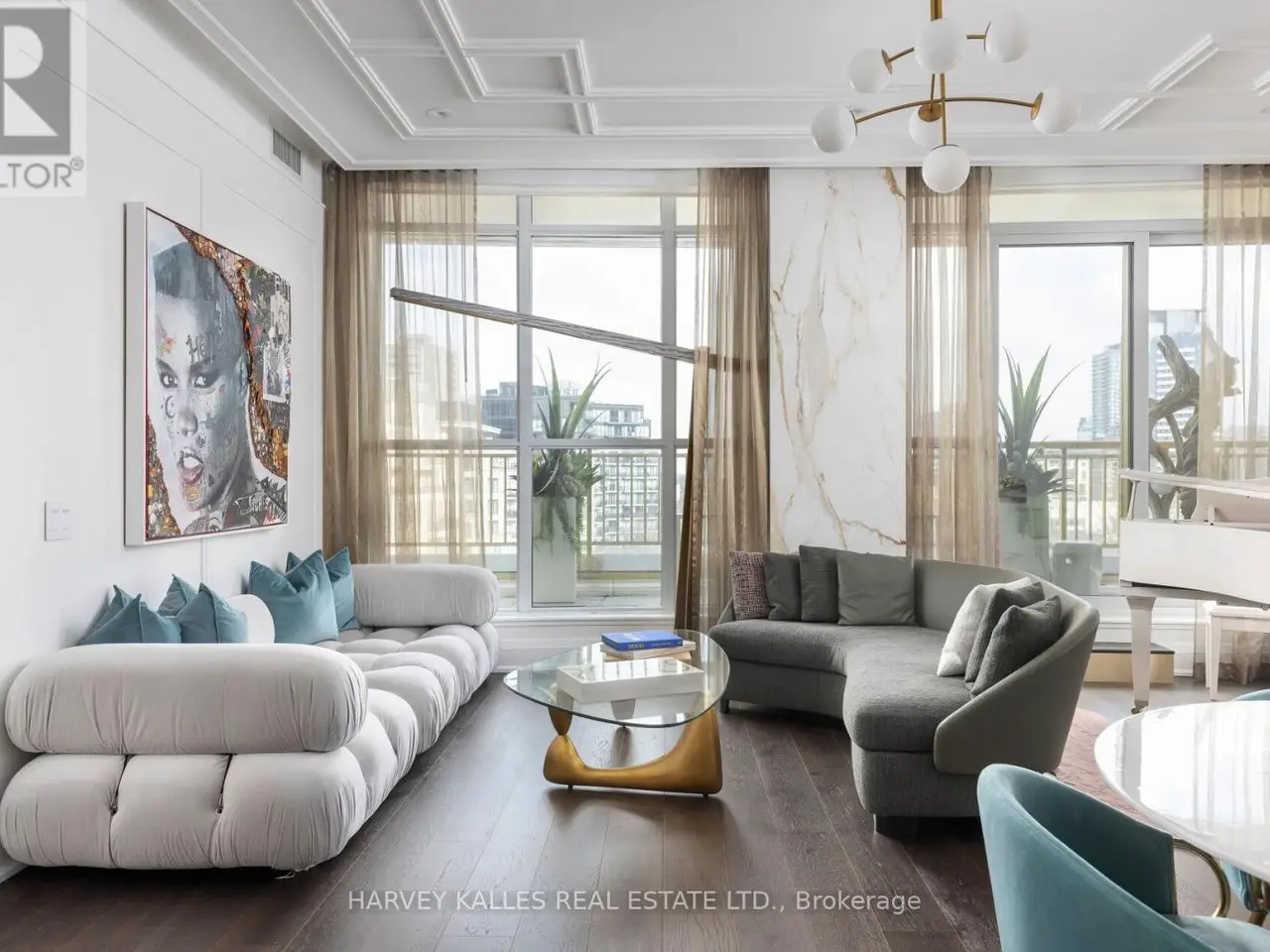 Experience the epitome of luxury living in the heart of Yorkville. This stunning turnkey sub-penthouse offers a new standard of elegance with soaring 10-foot ceilings and an expansive, open-concept living space ready for you to move right in. Available with all luxury furnishings and curated artwork, this home is designed for the discerning buyer who appreciates the finer things. Enjoy breathtaking, unobstructed panoramic views from the balcony, perfect for unwinding or entertaining. The split-bedroom layout features exquisite European-style kitchen and bathroom finishes, including Pietra stone countertops and matching backsplashes for a seamless, sophisticated look. With 24-hour concierge service, you're just steps away from Yorkville's world-class cafes, restaurants, patios, and boutiques. Take advantage of the buildings top-tier amenities, including a state-of-the-art fitness center, BBQ terrace, party lounge, and guest suite everything you need for a lifestyle of unparalleled comfort and convenience. EXTRAS: All furniture and art available for purchase (excluding piano). Multiple upgrades throughout ($150,000). Motorized Window Shades. Fine millwork - built-in bookcase. Smart System. (id:6370)