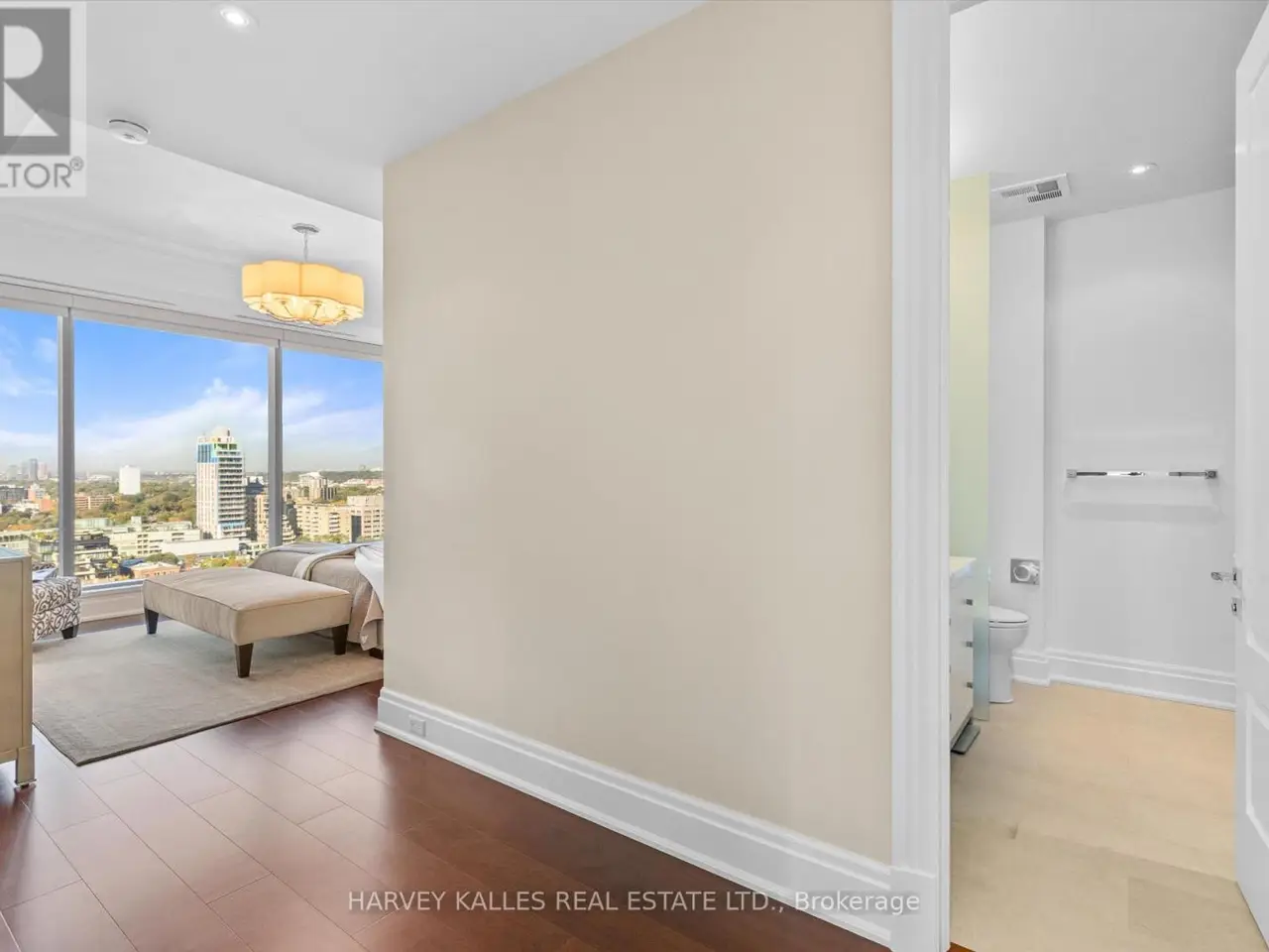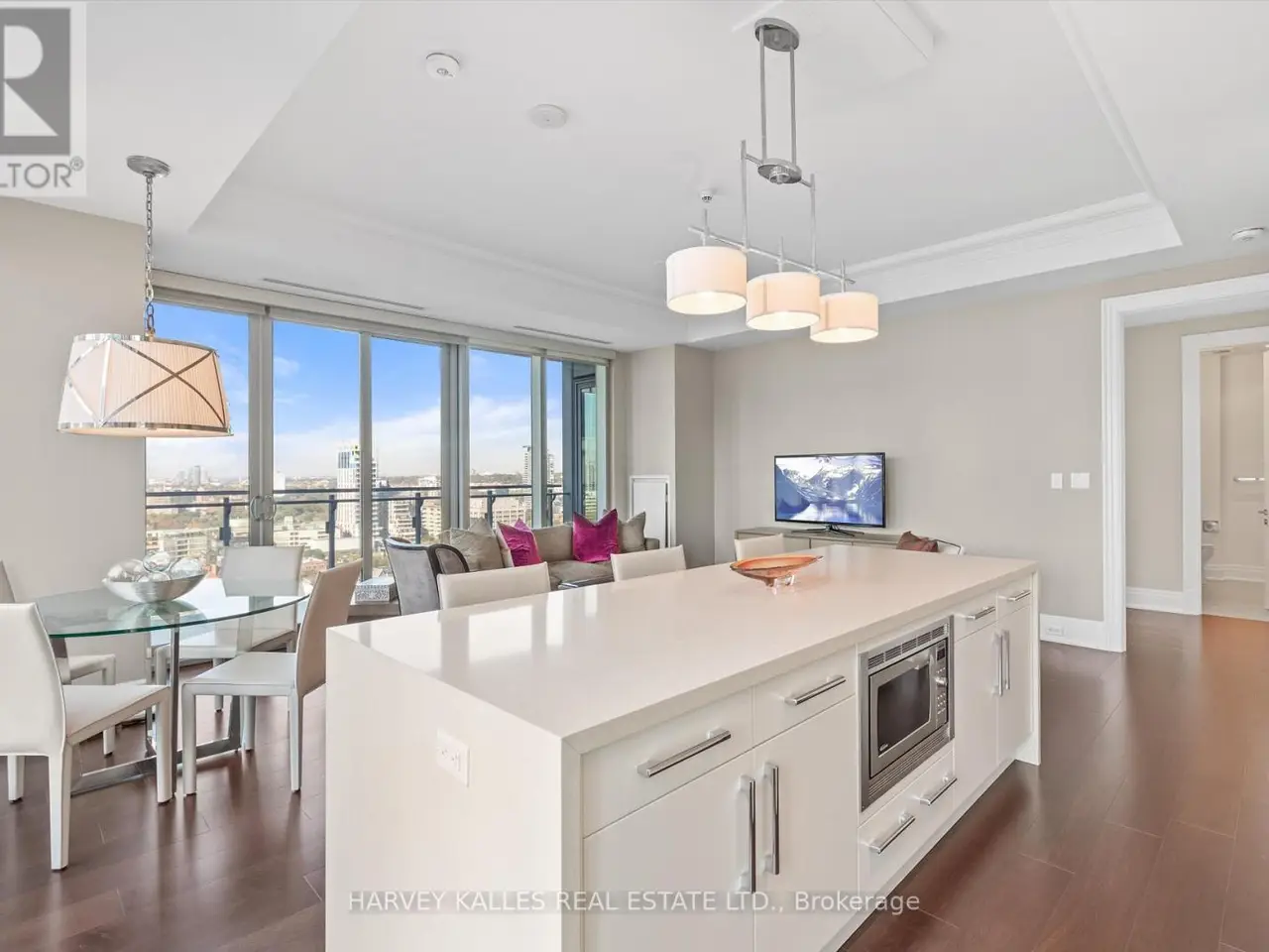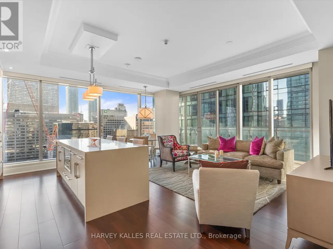 An icon of refined living in one of Toronto's most distinguished addresses. Welcome to Suite 1805 at 55 Scollard, within the legendary Four Seasons Private Residences. Architectural grace, hotel-inspired service, and effortless sophistication define every moment in this exceptional two-bed, two-bath residence spanning approximately 1,265 sq.ft. From the moment you enter, calm refinement prevails. Expansive floor-to-ceiling windows bathe the interiors in natural light, accentuating clean lines, rich finishes, and a timeless modern aesthetic. The open-concept living and dining areas invite both relaxation and entertaining, anchored by sweeping views of the Yorkville skyline. The chef's kitchen combines beauty and performance with integrated Miele, Sub-Zero, and Panasonic appliances, a gas range, polished granite surfaces, and generous cabinetry, perfect for casual mornings or elegant evenings. Enjoy your morning coffee at the granite waterfall kitchen island, equipped with additional storage and spacious bar seating. The primary suite is a private sanctuary featuring a spa-inspired five-piece ensuite with a deep soaking tub, glass shower, double vanity, and refined marble finishes. A custom walk-in closet with sleek built-ins and a pocket door blends form and function. The second bedroom offers flexibility for guests, work, or leisure. Residents enjoy exclusive access to dedicated amenities and full hotel privileges: 24-hour concierge and valet, world-class fitness centre, indoor pool, and direct access to the Four Seasons Spa. Just steps from Yorkville's finest boutiques, Michelin-starred dining, and tranquil parks, this address offers the ultimate balance of sophistication and convenience, an incomparable opportunity to own within Toronto's most iconic residence. Extras: One owned parking space & locker, ensuite laundry in the primary, automatic roller blinds throughout, and more! An incomparable opportunity to own a piece of Toronto's most iconic address! (id:6370)