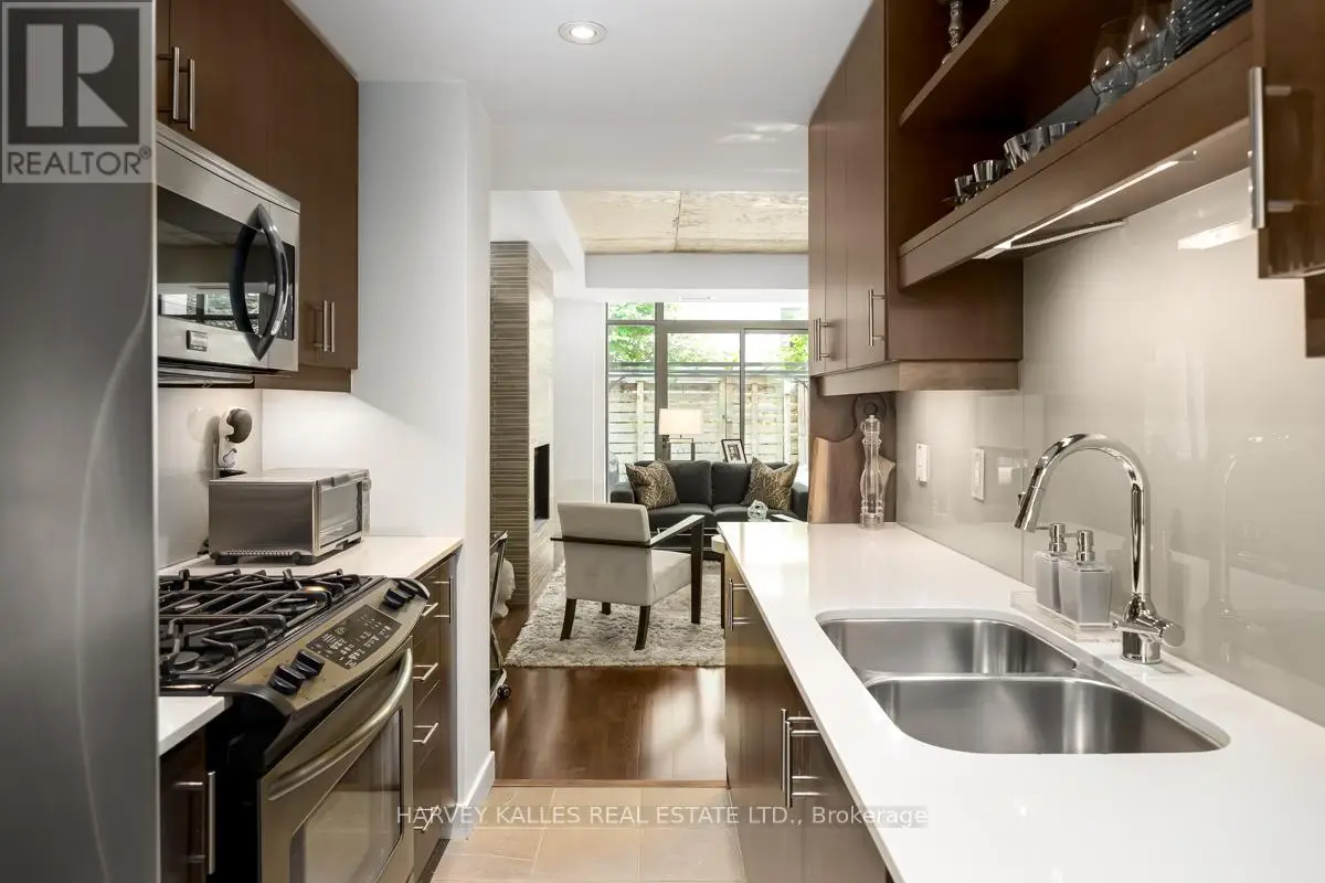 Nestled in the vibrant heart of Toronto's coveted Garden District and part of the esteemed Radio City complex, this sophisticated 3-storey townhouse end unit at 301 Mutual Street offers an unparalleled urban living experience. . Boasting nearly 2,000 sq ft above grade, this meticulously designed home features cleverly defined spaces and contemporary finishes throughout. Step inside to a layout that perfectly balances flow with functionality. The sleek galley kitchen is a chef's dream, complete with premium appliances, a convenient eat-in breakfast area, and a walk-in pantry offering both style and practicality. From the main living area, enjoy a fantastic walkout to your private back terrace, ideal for unwinding or al fresco dining. The third floor is dedicated to the opulent primary bedroom, a true sanctuary featuring a galley-style walk-in closet/dressing area and a luxurious spa-like 5-piece ensuite bathroom. Experience ultimate convenience with direct access from your underground 2-car parking straight into your unit, providing unparalleled ease and security. Residents also benefit from exceptional building amenities, including a gym and party room, all within a well-managed luxury building. With a Walk Score of 99, everything you need is moments away: subway access, the Eaton Centre, TMU, hospitals, and a vibrant array of shops and restaurants. This move-in ready home offers the perfect blend of comfort, style, and unbeatable urban access. This is more than a home; it's a lifestyle of spacious urban luxury and a rare piece of prime downtown Toronto real estate!