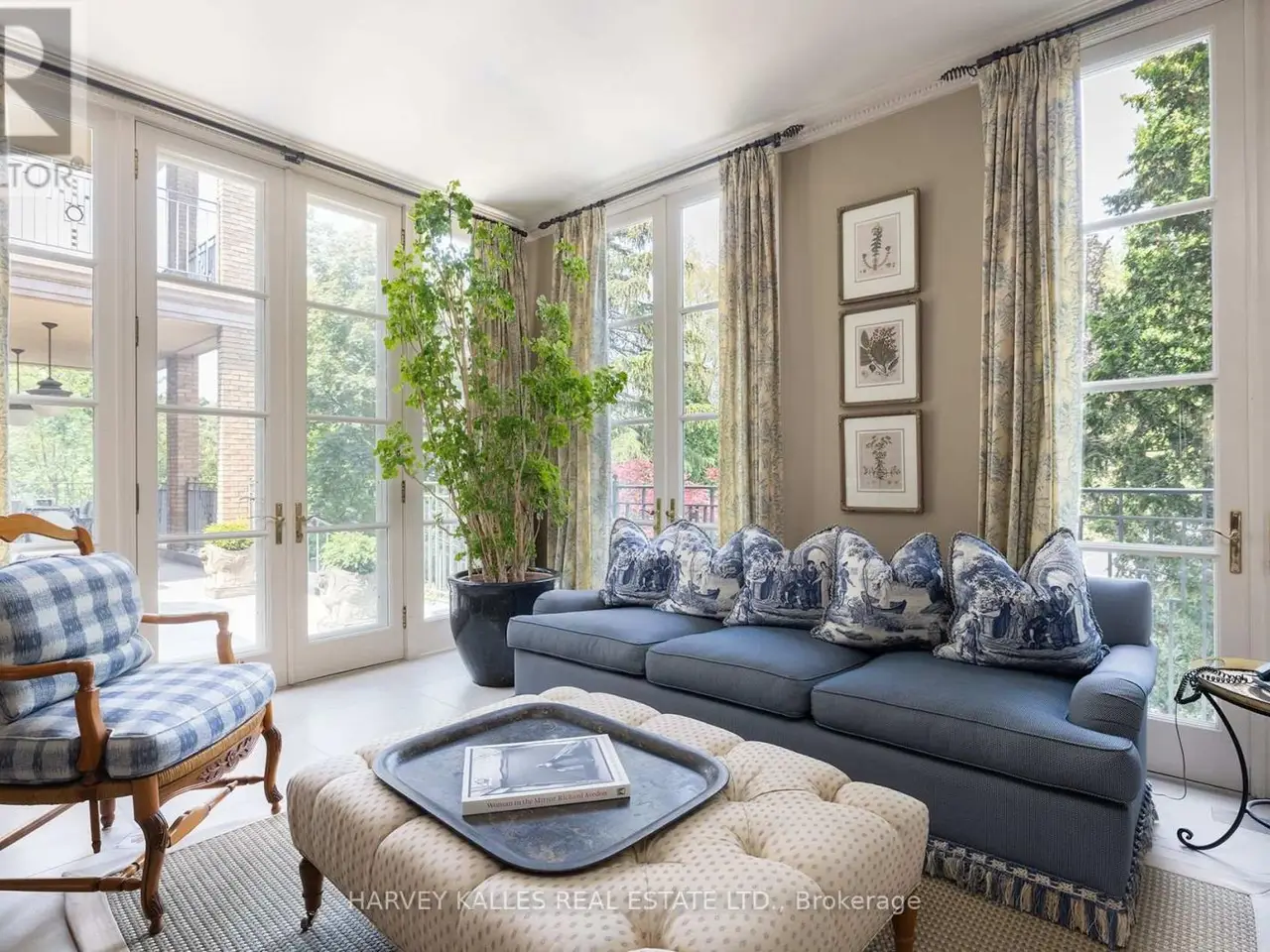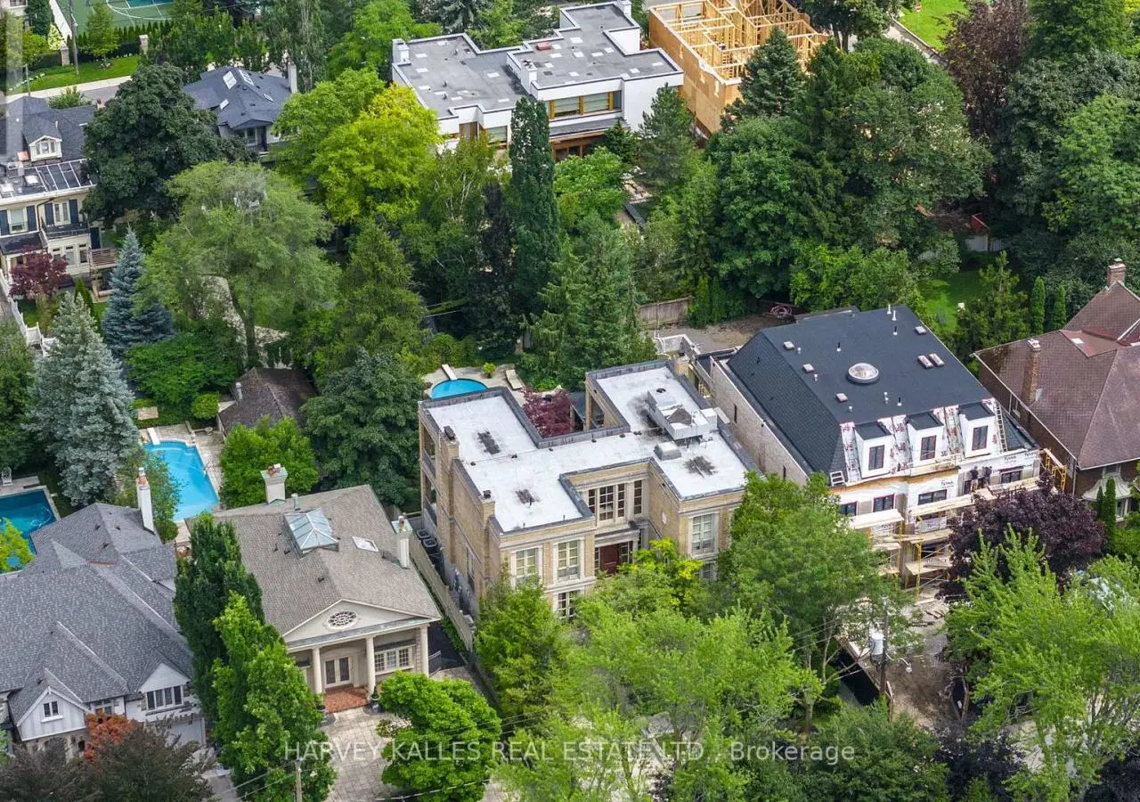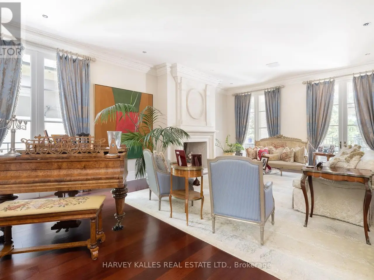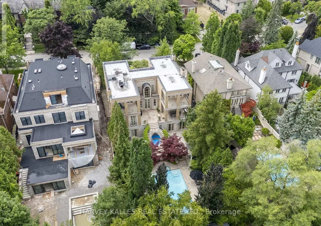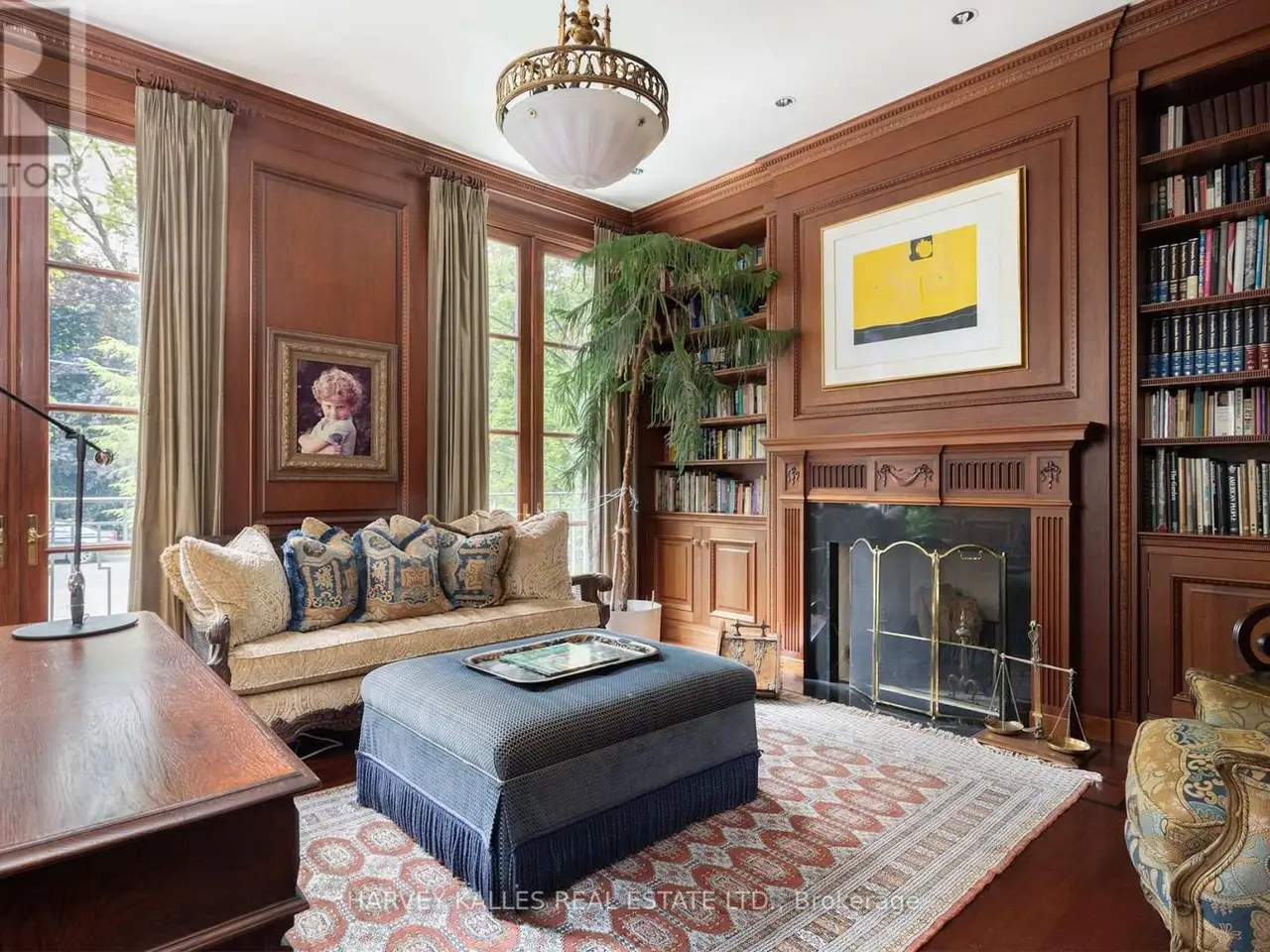 Majestically situated on one of Forest Hills most prestigious streets, this captivating residence masterfully designed by world-renowned architect Gordon Ridgely exemplifies timeless elegance and impeccable craftsmanship. Rooted in classical principles of symmetry, proportion, and balance, the home offers a remarkable blend of grandeur and comfort, ideal for both lavish entertaining and refined everyday living. A wealth of floor-to-ceiling windows, French doors, Juliette balconies, and multiple terraces bathe the interior in natural light, creating an airy, seamless flow throughout the living spaces. Exquisite finishes abound, including wide-plank mahogany hardwood floors and Indiana limestone flooring. The mahogany-paneled library, complete with a wood-burning marble fireplace, offers a warm and sophisticated retreat. A dramatic double staircase leads to the second level, where the serene primary suite features its own fireplace, a spacious walk-in dressing room, and walkout to a private covered terrace. The lower level is a haven for relaxation and recreation, boasting a full spa, entertainment and exercise rooms, and walkouts to beautifully landscaped gardens. Outdoor highlights include a charming gazebo, built-in BBQ, elegant fountain, and a stunning pool all shaded beneath a canopy of mature trees, providing an idyllic and private setting. An incomparable sense of privacy radiates timeless grace and charm, offering a sanctuary in the heart of the city. Perfectly positioned in an enviable location, this distinguished address places you within walking distance of Toronto's finest private and public schools, the boutiques and cafés of Forest Hill Village, premier recreational facilities, and just minutes from downtown and the financial district. (id:6370)