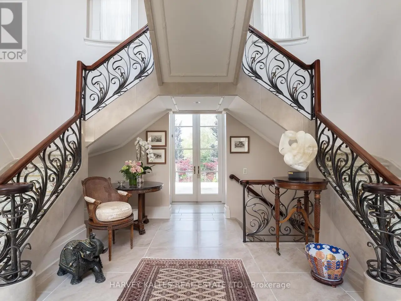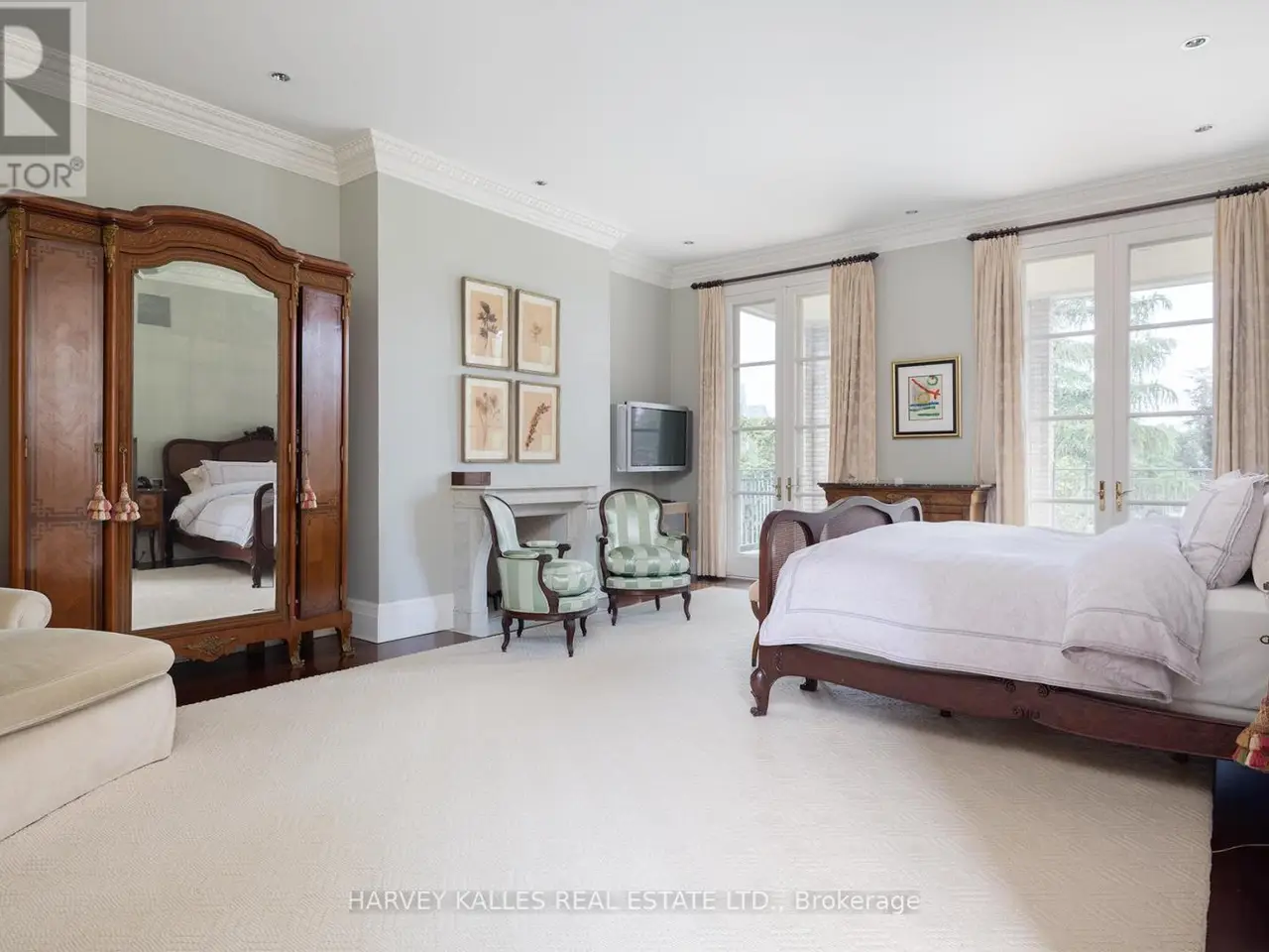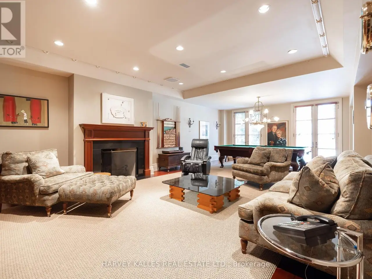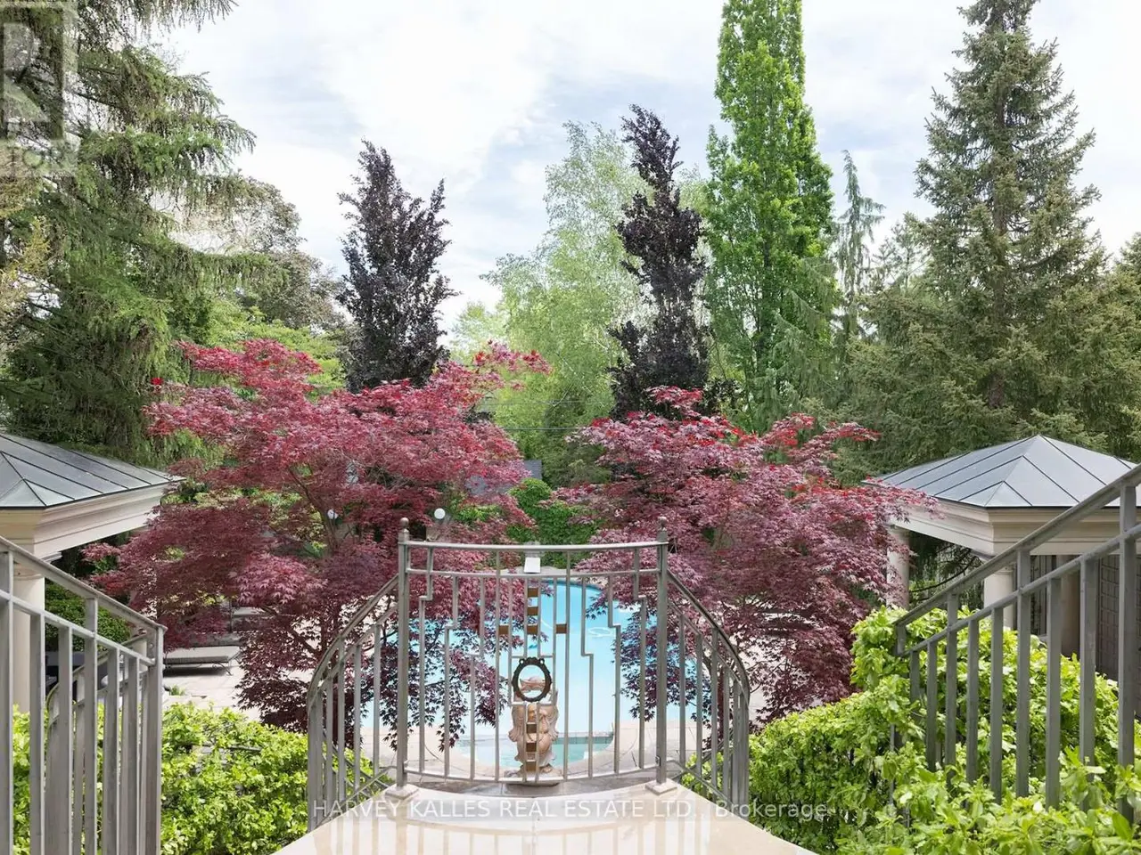 Majestically situated on one of Forest Hills most prestigious streets, this captivating residence masterfully designed by world-renowned architect Gordon Ridgely exemplifies timeless elegance and impeccable craftsmanship. Rooted in classical principles of symmetry, proportion, and balance, the home offers a remarkable blend of grandeur and comfort, ideal for both lavish entertaining and refined everyday living. A wealth of floor-to-ceiling windows, French doors, Juliette balconies, and multiple terraces bathe the interior in natural light, creating an airy, seamless flow throughout the living spaces. Exquisite finishes abound, including wide-plank mahogany hardwood floors and Indiana limestone flooring. The mahogany-paneled library, complete with a wood-burning marble fireplace, offers a warm and sophisticated retreat. A dramatic double staircase leads to the second level, where the serene primary suite features its own fireplace, a spacious walk-in dressing room, and walkout to a private covered terrace. The lower level is a haven for relaxation and recreation, boasting a full spa, entertainment and exercise rooms, and walkouts to beautifully landscaped gardens. Outdoor highlights include a charming gazebo, built-in BBQ, elegant fountain, and a stunning pool all shaded beneath a canopy of mature trees, providing an idyllic and private setting. An incomparable sense of privacy radiates timeless grace and charm, offering a sanctuary in the heart of the city. Perfectly positioned in an enviable location, this distinguished address places you within walking distance of Toronto's finest private and public schools, the boutiques and cafés of Forest Hill Village, premier recreational facilities, and just minutes from downtown and the financial district. (id:6370)