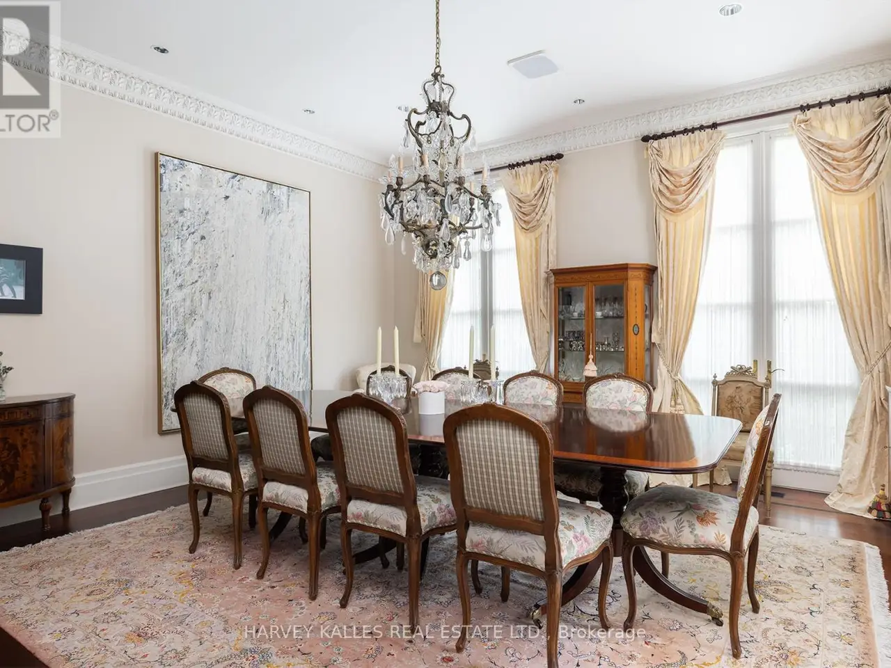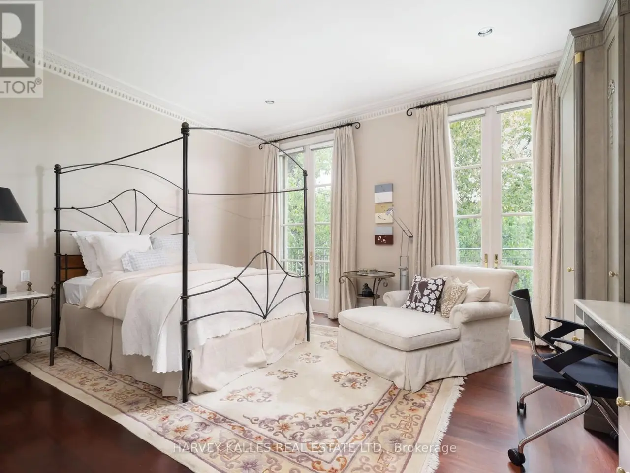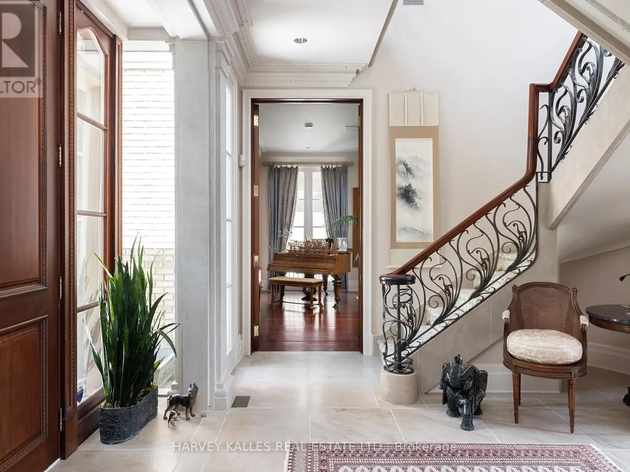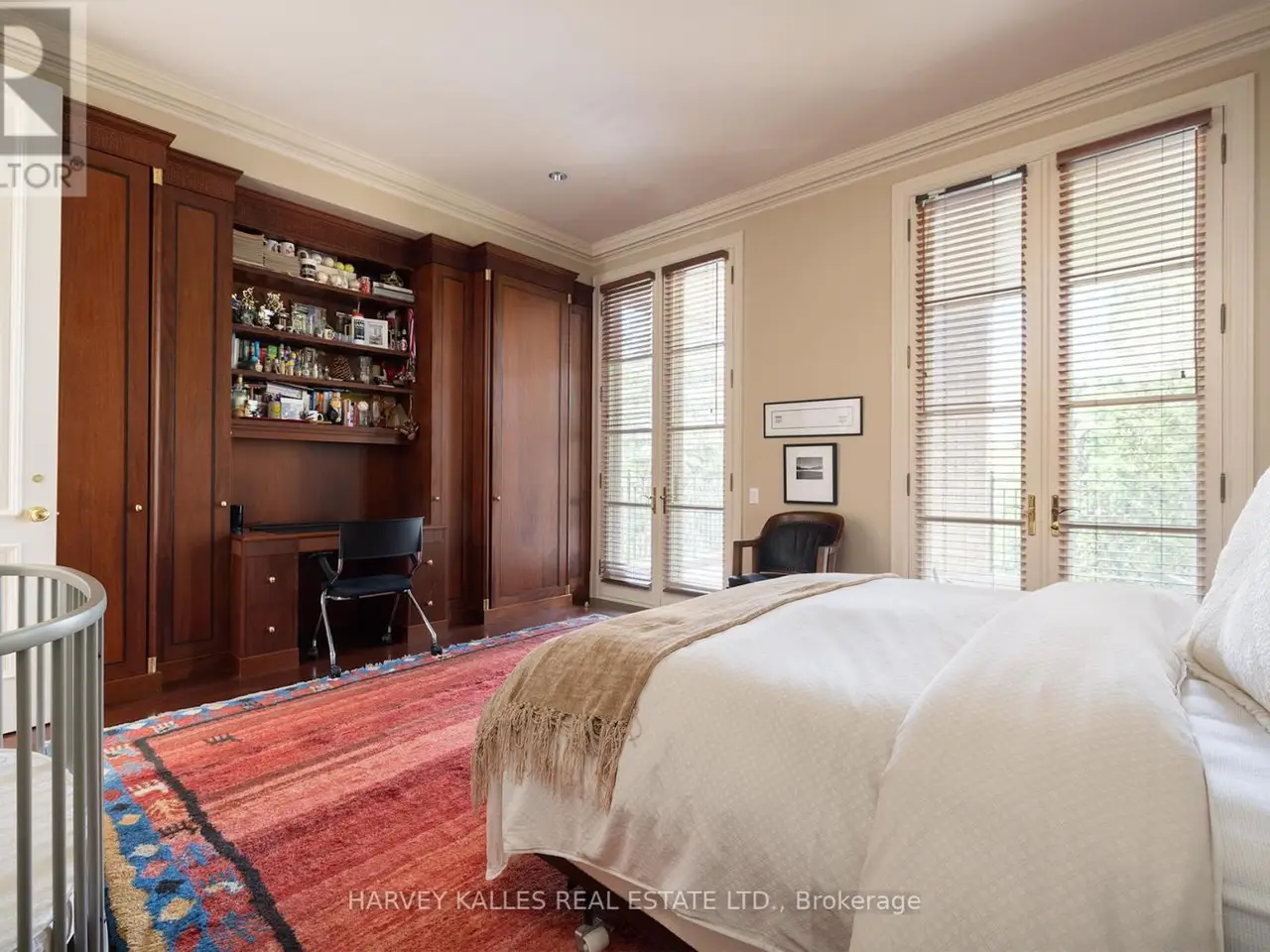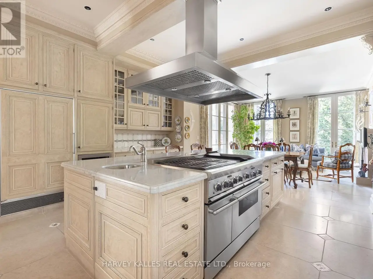 Majestically situated on one of Forest Hills most prestigious streets, this captivating residence masterfully designed by world-renowned architect Gordon Ridgely exemplifies timeless elegance and impeccable craftsmanship. Rooted in classical principles of symmetry, proportion, and balance, the home offers a remarkable blend of grandeur and comfort, ideal for both lavish entertaining and refined everyday living. A wealth of floor-to-ceiling windows, French doors, Juliette balconies, and multiple terraces bathe the interior in natural light, creating an airy, seamless flow throughout the living spaces. Exquisite finishes abound, including wide-plank mahogany hardwood floors and Indiana limestone flooring. The mahogany-paneled library, complete with a wood-burning marble fireplace, offers a warm and sophisticated retreat. A dramatic double staircase leads to the second level, where the serene primary suite features its own fireplace, a spacious walk-in dressing room, and walkout to a private covered terrace. The lower level is a haven for relaxation and recreation, boasting a full spa, entertainment and exercise rooms, and walkouts to beautifully landscaped gardens. Outdoor highlights include a charming gazebo, built-in BBQ, elegant fountain, and a stunning pool all shaded beneath a canopy of mature trees, providing an idyllic and private setting. An incomparable sense of privacy radiates timeless grace and charm, offering a sanctuary in the heart of the city. Perfectly positioned in an enviable location, this distinguished address places you within walking distance of Toronto's finest private and public schools, the boutiques and cafés of Forest Hill Village, premier recreational facilities, and just minutes from downtown and the financial district. (id:6370)