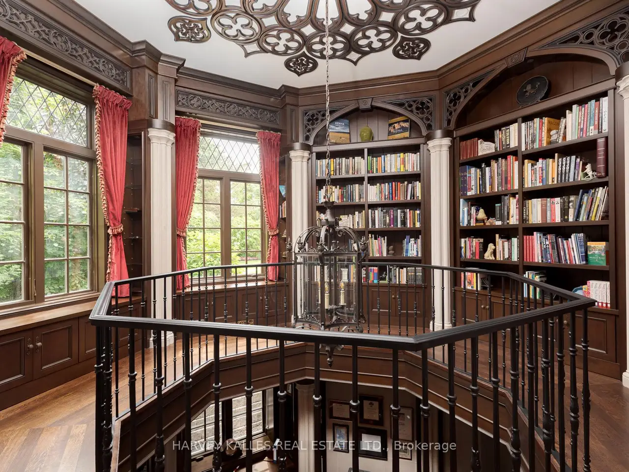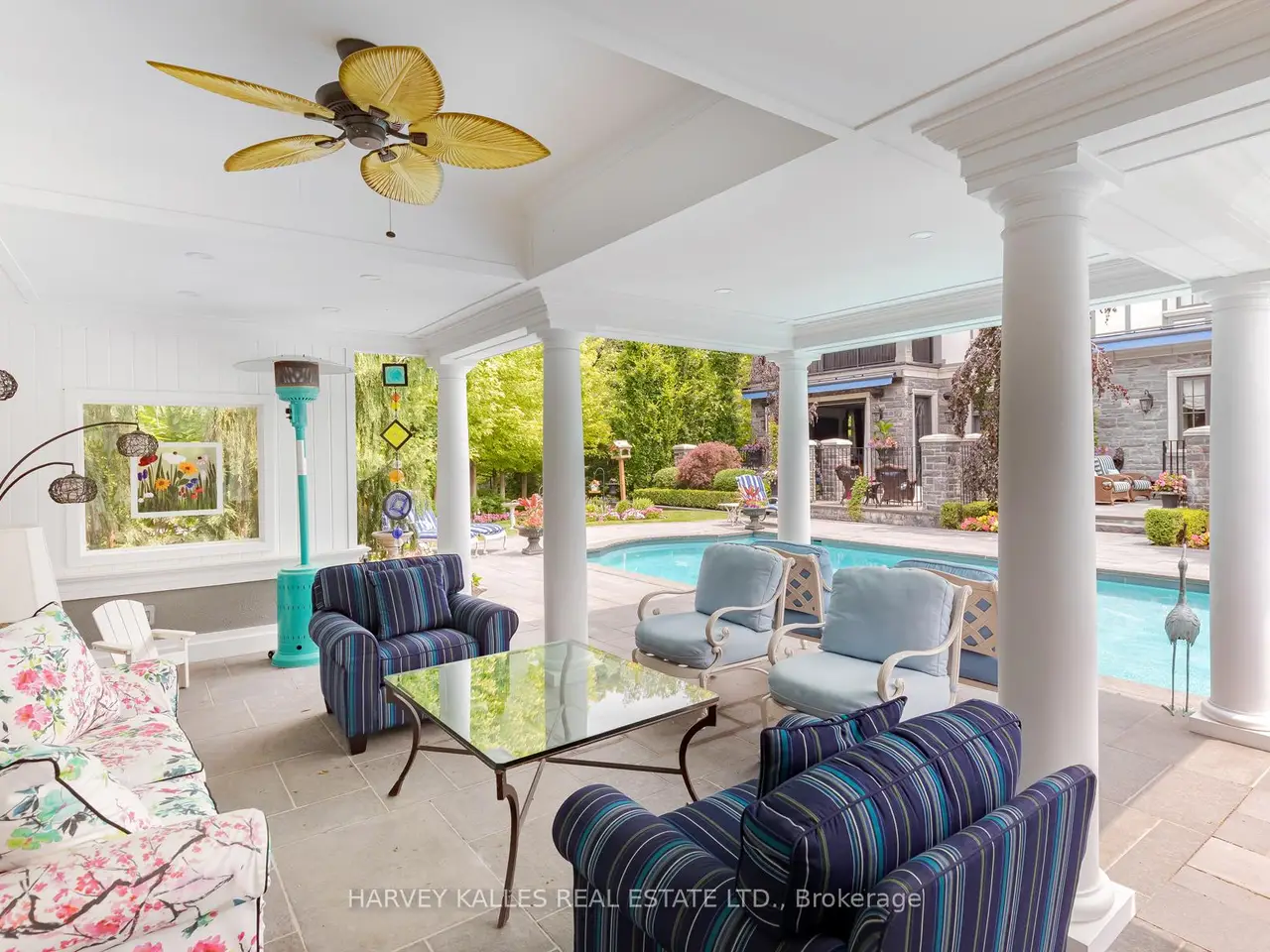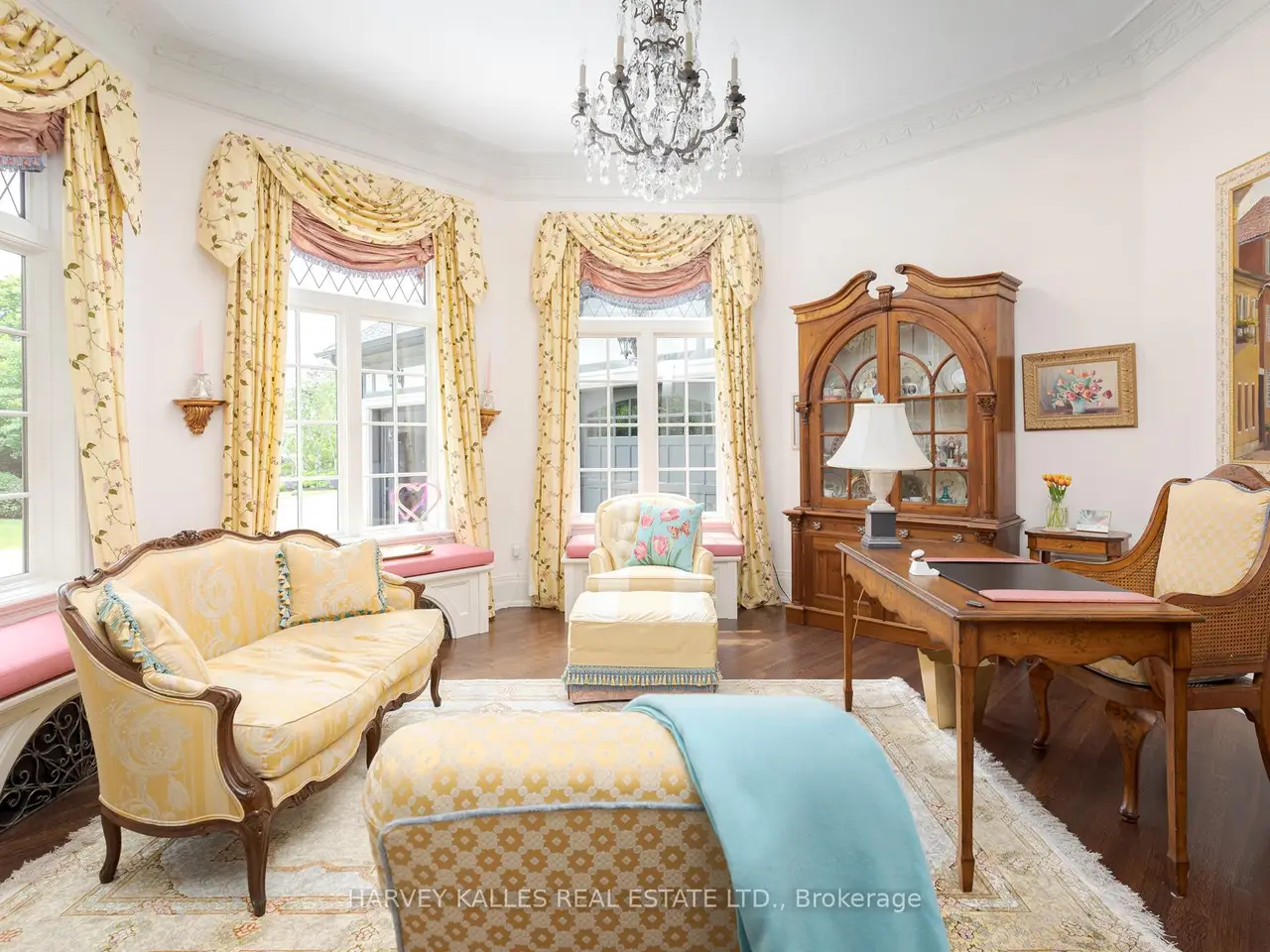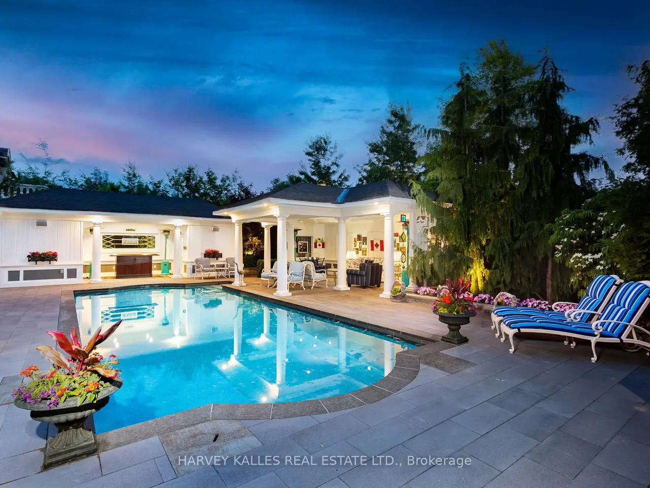 From vision to fruition, 8 Swansdown Drive stands as a truly unique and masterfully built residence. Every element was carefully chosen with intention, resulting in a home that exudes sophistication, comfort, and timeless beauty. Set on a secluded, lush lot in one of Toronto's most prestigious neighbourhoods, the property offers unmatched privacy. A grand circular heated driveway welcomes you and your guests with ease, while a three-car garage securely houses your most prized possessions. The striking freestanding waterfall and manicured gardens create an instant sense of calm and retreat from the city. Inside, the double solid-oak doors open to a breathtaking two-storey foyer with soaring ceilings and open sightlines to the stunning rear gardens. The elegant living room features a wood-burning fireplace and retractable Floridian-style glass doors that open to a stone patio for al fresco dining. The sun-drenched kitchen and breakfast room overlook the lush grounds, while the formal dining room connects via a butlers pantry. The garden solarium is perfect for nurturing plants year-round. Additional main floor highlights include a cheerful office, art studio with water access, and a one-of-a-kind octagonal library with handcrafted detailing, a ceiling medallion, and hidden staircase. The second floor is accessed by a sweeping staircase or a wrought-iron Parisian-style elevator. A skylit hallway leads to four generous bedrooms, each with its own ensuite. A separate two-piece bath, laundry room, and pet spa complete this level. The lower level offers an impressive array of spaces: gym, yoga room, sauna, rec room, large storage, study, soundproof music room, guest suite, and more. Outdoors, enjoy over a million dollars in landscaping, a chlorine pool, fire pit, two covered pavilions (one with bar and bath), and stone pathways weaving through a magical setting. A rare offering. Welcome home.