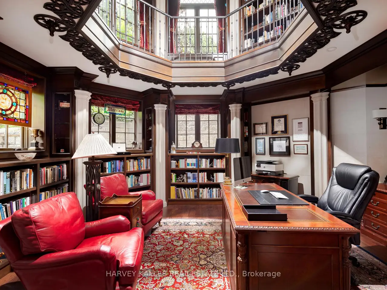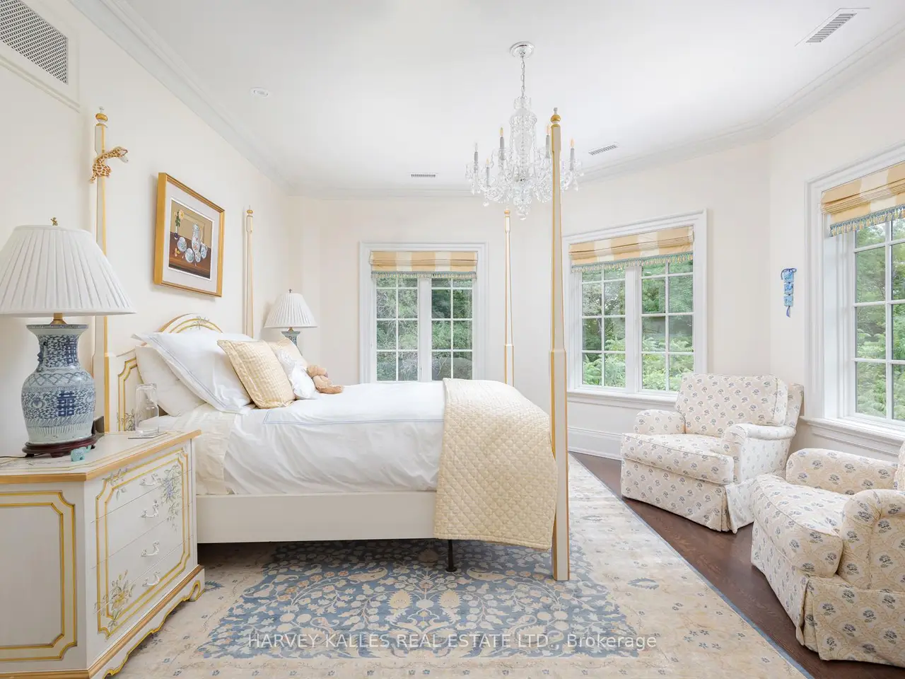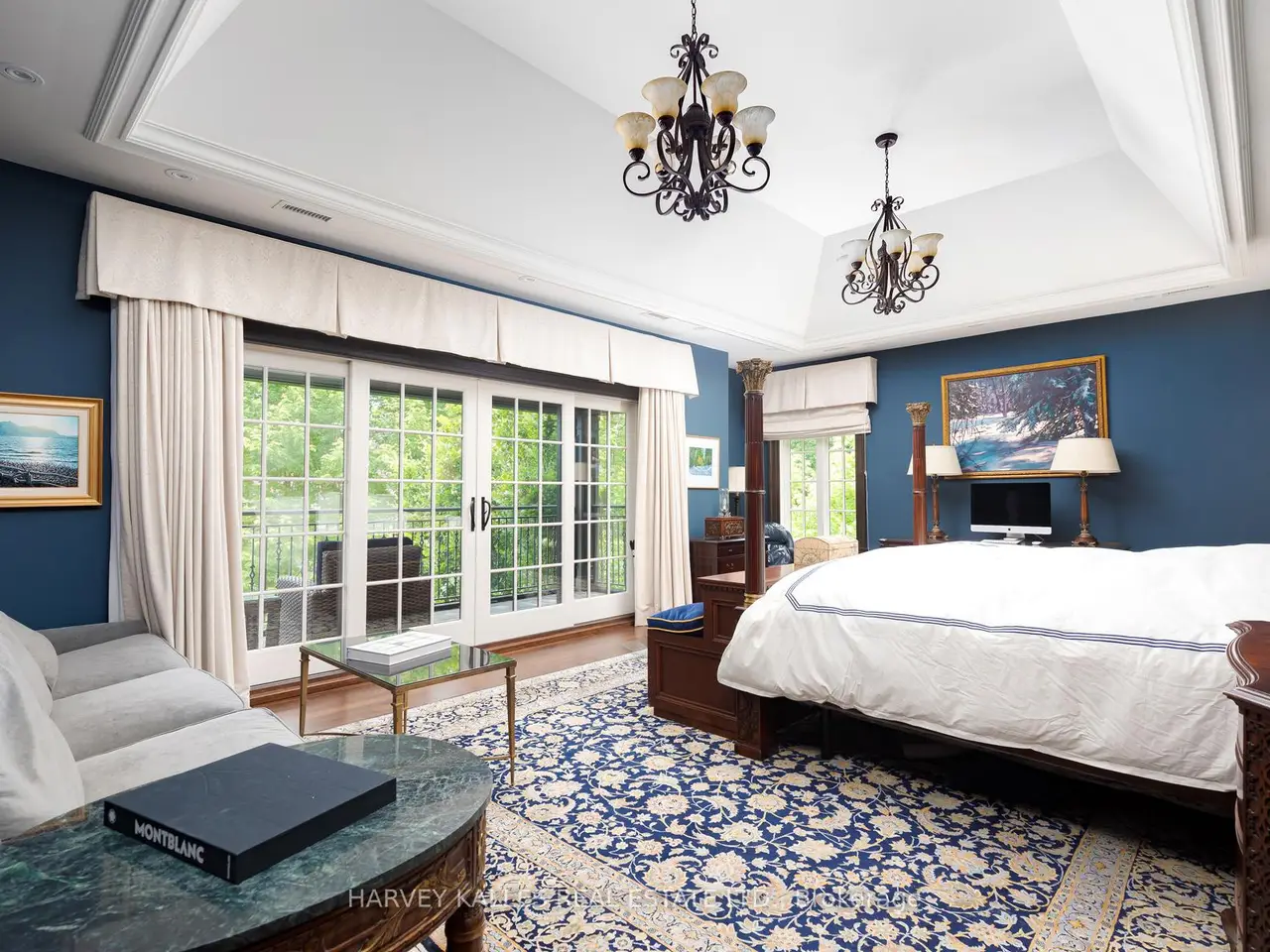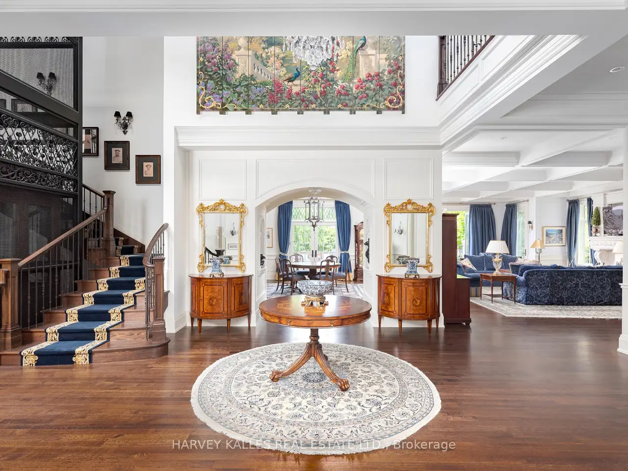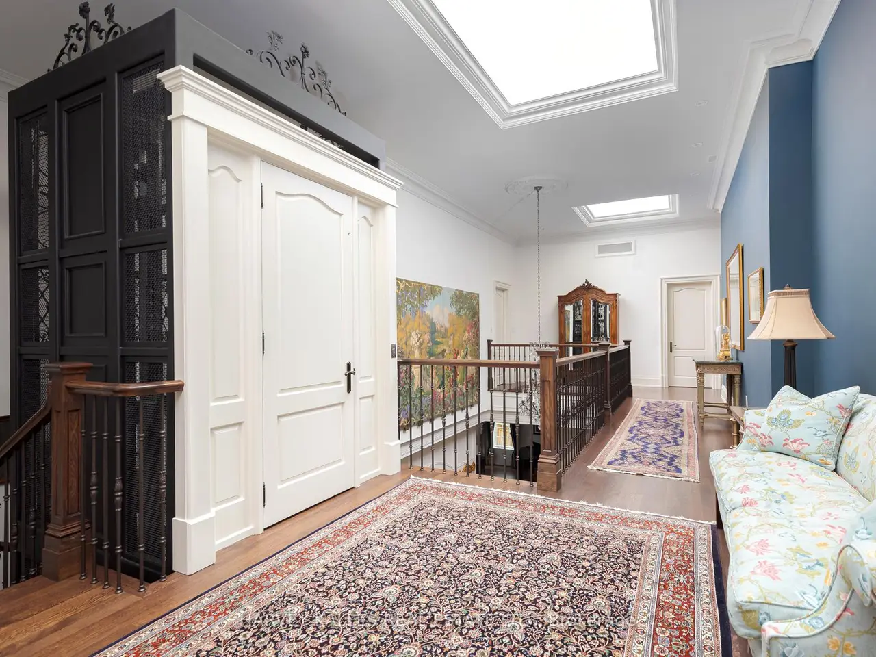 From vision to fruition, 8 Swansdown Drive stands as a truly unique and masterfully built residence. Every element was carefully chosen with intention, resulting in a home that exudes sophistication, comfort, and timeless beauty. Set on a secluded, lush lot in one of Toronto's most prestigious neighbourhoods, the property offers unmatched privacy. A grand circular heated driveway welcomes you and your guests with ease, while a three-car garage securely houses your most prized possessions. The striking freestanding waterfall and manicured gardens create an instant sense of calm and retreat from the city. Inside, the double solid-oak doors open to a breathtaking two-storey foyer with soaring ceilings and open sightlines to the stunning rear gardens. The elegant living room features a wood-burning fireplace and retractable Floridian-style glass doors that open to a stone patio for al fresco dining. The sun-drenched kitchen and breakfast room overlook the lush grounds, while the formal dining room connects via a butlers pantry. The garden solarium is perfect for nurturing plants year-round. Additional main floor highlights include a cheerful office, art studio with water access, and a one-of-a-kind octagonal library with handcrafted detailing, a ceiling medallion, and hidden staircase. The second floor is accessed by a sweeping staircase or a wrought-iron Parisian-style elevator. A skylit hallway leads to four generous bedrooms, each with its own ensuite. A separate two-piece bath, laundry room, and pet spa complete this level. The lower level offers an impressive array of spaces: gym, yoga room, sauna, rec room, large storage, study, soundproof music room, guest suite, and more. Outdoors, enjoy over a million dollars in landscaping, a chlorine pool, fire pit, two covered pavilions (one with bar and bath), and stone pathways weaving through a magical setting. A rare offering. Welcome home.
