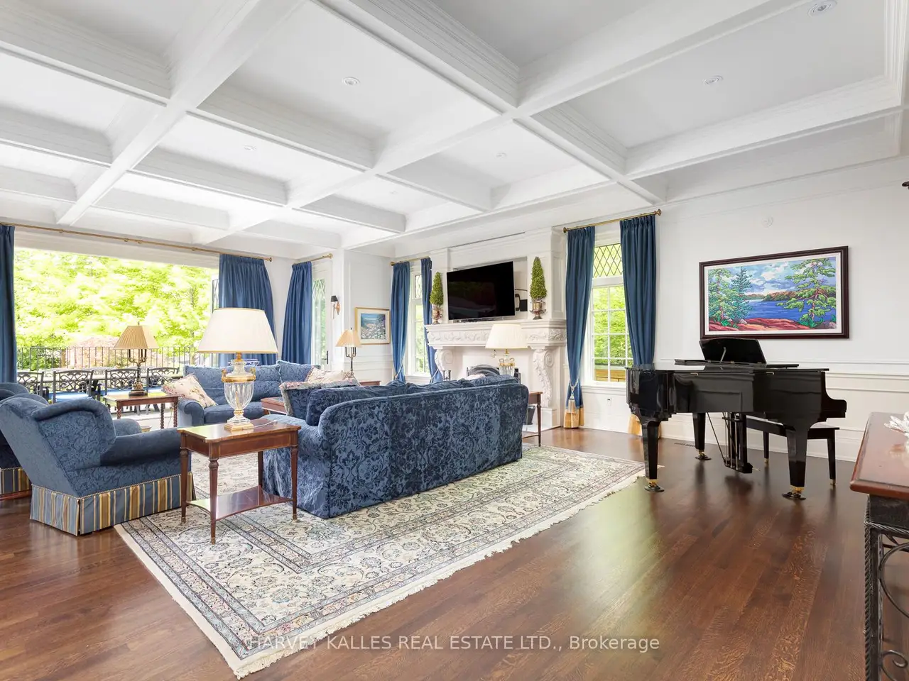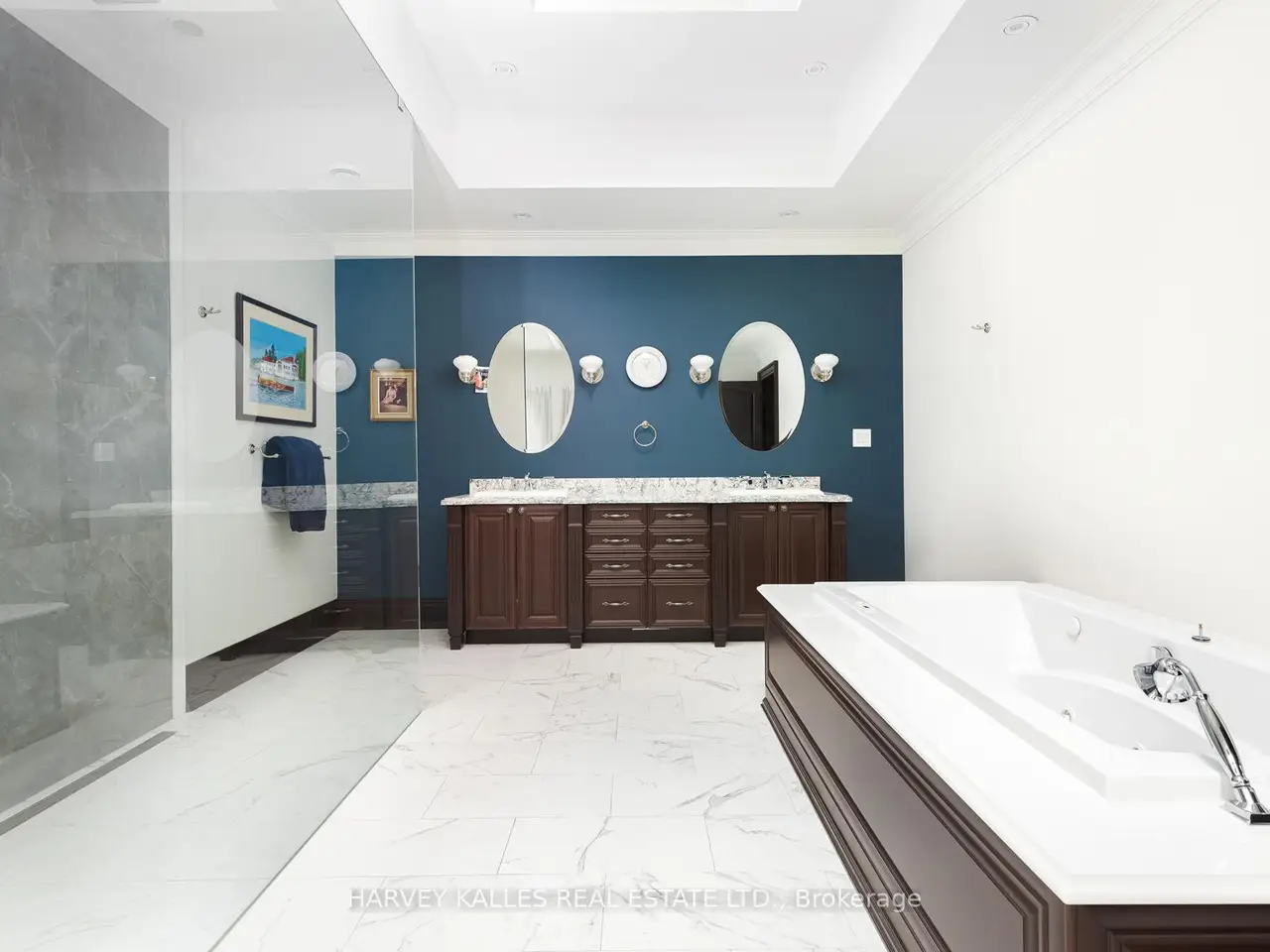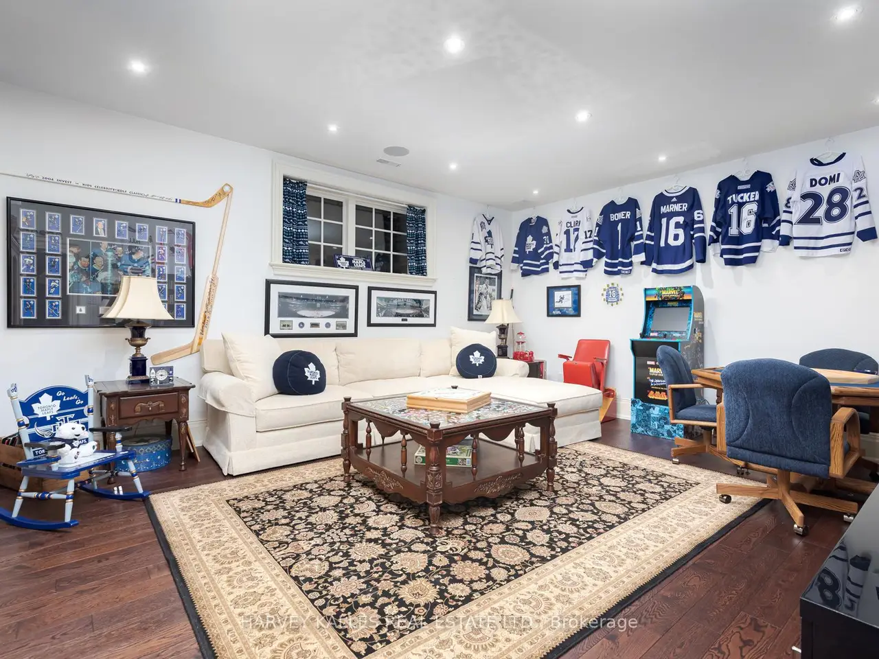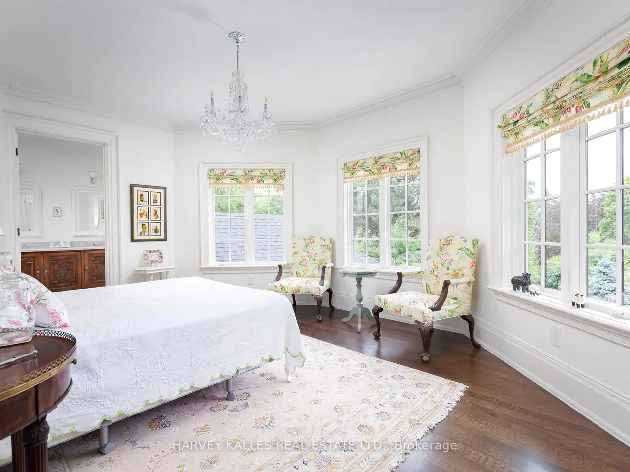 From vision to fruition, 8 Swansdown Drive stands as a truly unique and masterfully built residence. Every element was carefully chosen with intention, resulting in a home that exudes sophistication, comfort, and timeless beauty. Set on a secluded, lush lot in one of Toronto's most prestigious neighbourhoods, the property offers unmatched privacy. A grand circular heated driveway welcomes you and your guests with ease, while a three-car garage securely houses your most prized possessions. The striking freestanding waterfall and manicured gardens create an instant sense of calm and retreat from the city. Inside, the double solid-oak doors open to a breathtaking two-storey foyer with soaring ceilings and open sightlines to the stunning rear gardens. The elegant living room features a wood-burning fireplace and retractable Floridian-style glass doors that open to a stone patio for al fresco dining. The sun-drenched kitchen and breakfast room overlook the lush grounds, while the formal dining room connects via a butlers pantry. The garden solarium is perfect for nurturing plants year-round. Additional main floor highlights include a cheerful office, art studio with water access, and a one-of-a-kind octagonal library with handcrafted detailing, a ceiling medallion, and hidden staircase. The second floor is accessed by a sweeping staircase or a wrought-iron Parisian-style elevator. A skylit hallway leads to four generous bedrooms, each with its own ensuite. A separate two-piece bath, laundry room, and pet spa complete this level. The lower level offers an impressive array of spaces: gym, yoga room, sauna, rec room, large storage, study, soundproof music room, guest suite, and more. Outdoors, enjoy over a million dollars in landscaping, a chlorine pool, fire pit, two covered pavilions (one with bar and bath), and stone pathways weaving through a magical setting. A rare offering. Welcome home.