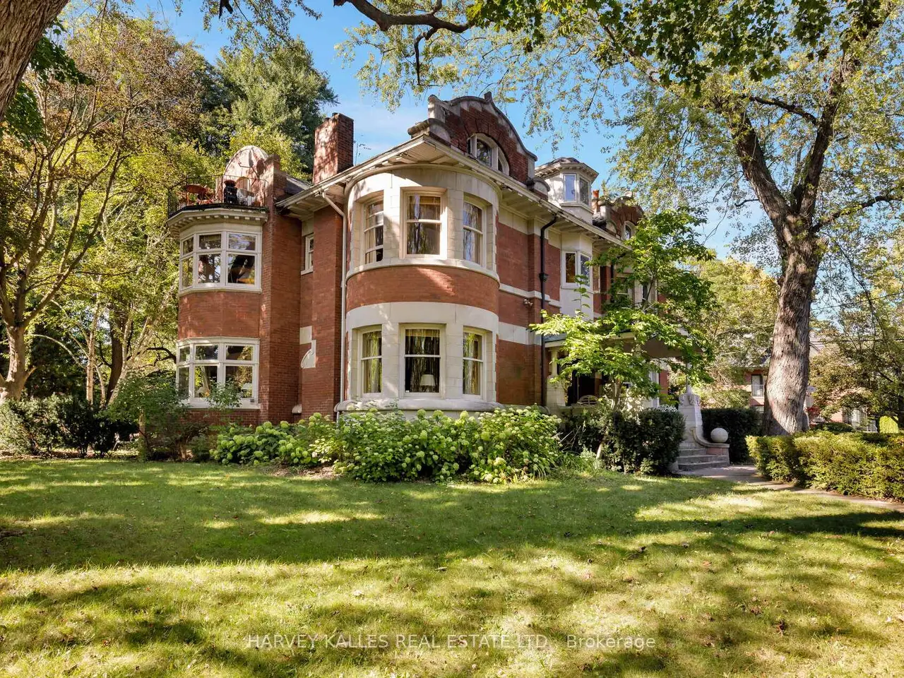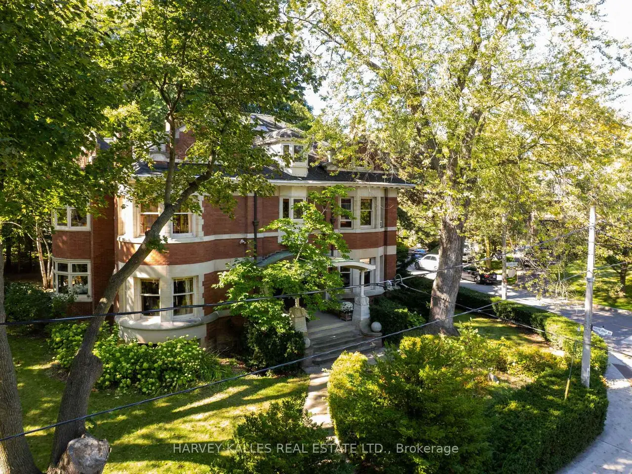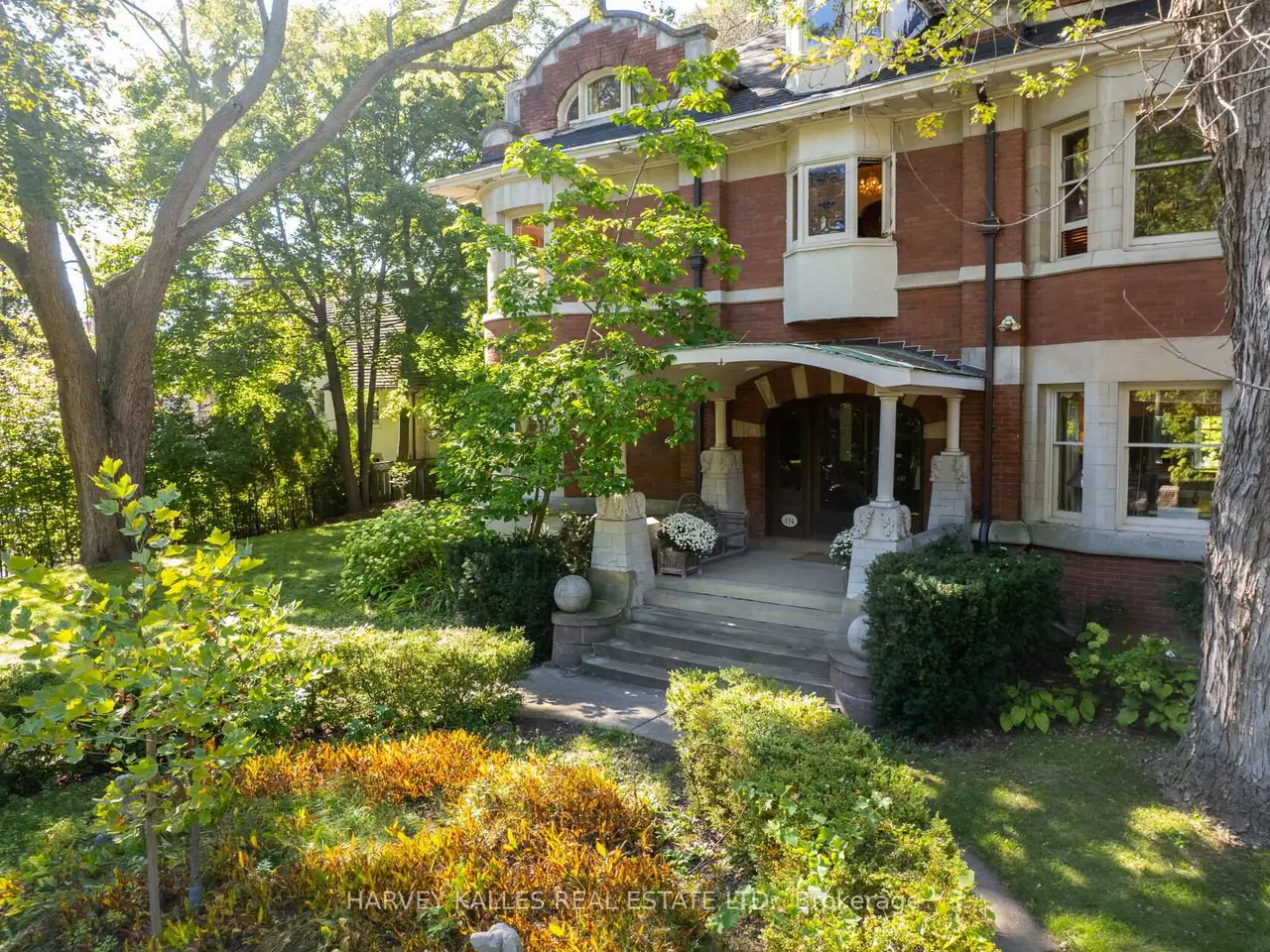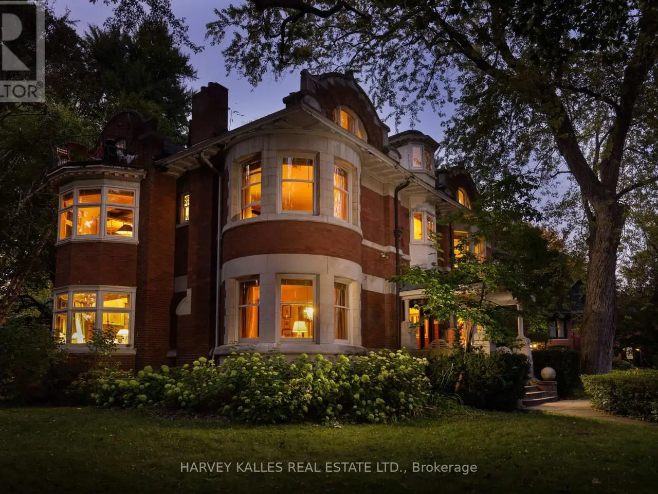 Nestled in Toronto's prestigious Rosedale neighbourhood, this landmark mansion occupies an expansive 100' x 122' estate-sized lot and offers over 7,500 square feet of impeccably designed living spaces. With 7 + 1 generously proportioned bedrooms, 8 bathrooms, and an exceptional third-floor loft, this grand residence seamlessly blends historic architecture with the scale, elegance, and functionality. Originally built circa 1900 for the distinguished Applegate family, the home has been meticulously restored and thoughtfully maintained to preserve it's architectural heritage including a selft portrait stain glass window of Mrs. Applegate herself. Drawing inspiration from the classical traditions of Italian Renaissance architect Andrea Palladiio - most notably his iconic Villa Rotunda in Vicenza, Italy - the home reflects timeless design and exceptional craftmanship. A majestic octagonal central hall, framed by twelve lonic columns, creates an unforgettable first impression and sets the tone for the rest of the residence. Throughout the home, rich period details abound: original oak hardwood floors, finely hand-craved oak mouldings and wainscoting, intricate millwork, and 6 fireplaces with decorative tile and brick hearths. The soaring 10-foot ceilings are adorned with ornate plaster crown mouldings, ceiling medallions, and oak-beamed details that speak to the home's historical significance. Expansive bow windows and beautifully preserved stained glass flood the interior with natural light and highlight the warm, elegant atmosphere. Outside, the property is a private oasis, surrounded by mature trees, lush landscaping, and tranquil gardens that offer rare serenity in the heart of the city. A detached two-car garage and additional parking for three vehicles provide added convenience. This is a once-in-a-generation opportunity to own a truly iconic Rosedale residence - an architectural treasure steeped in history and timeless charm.