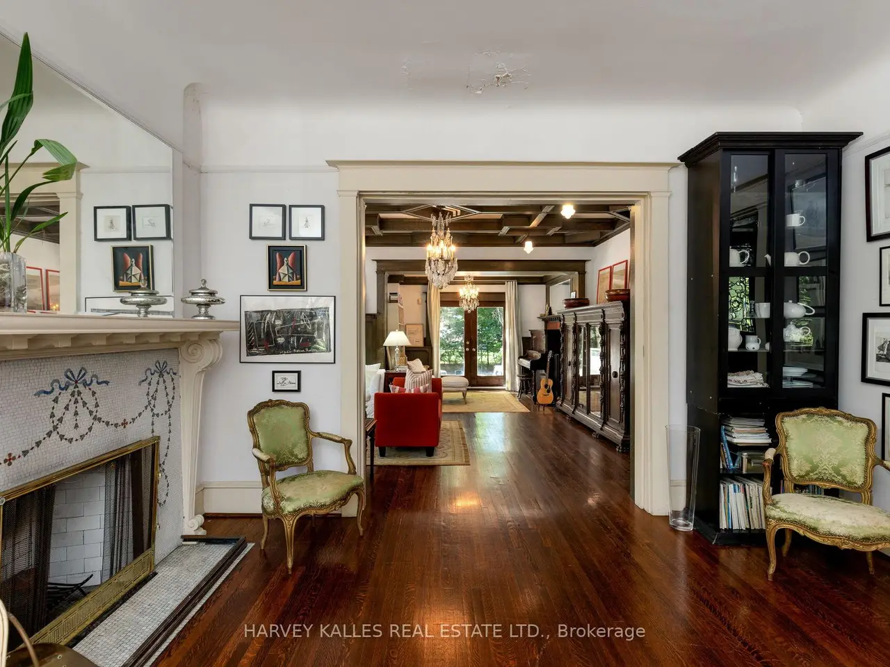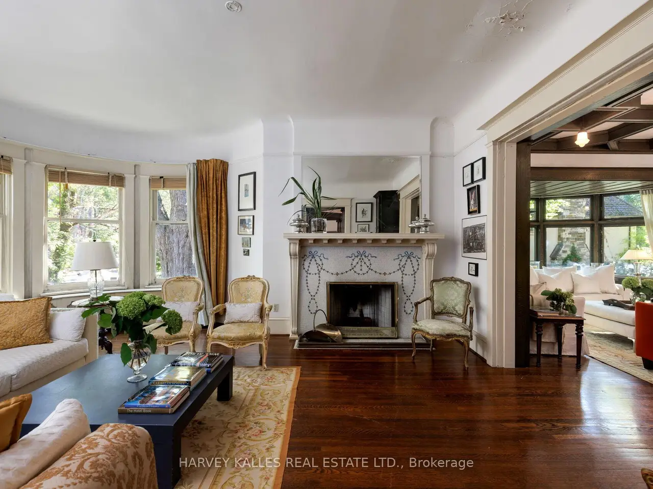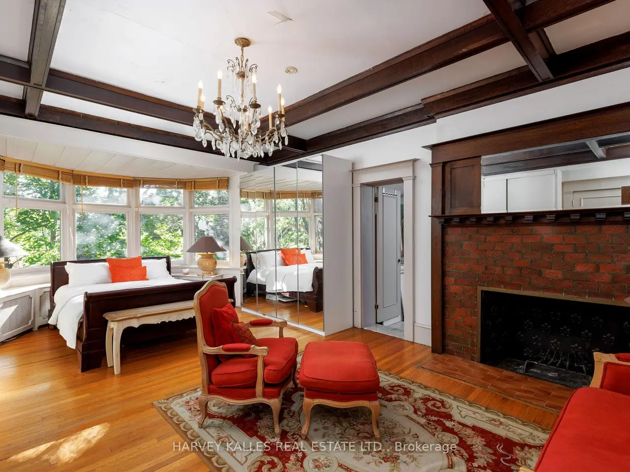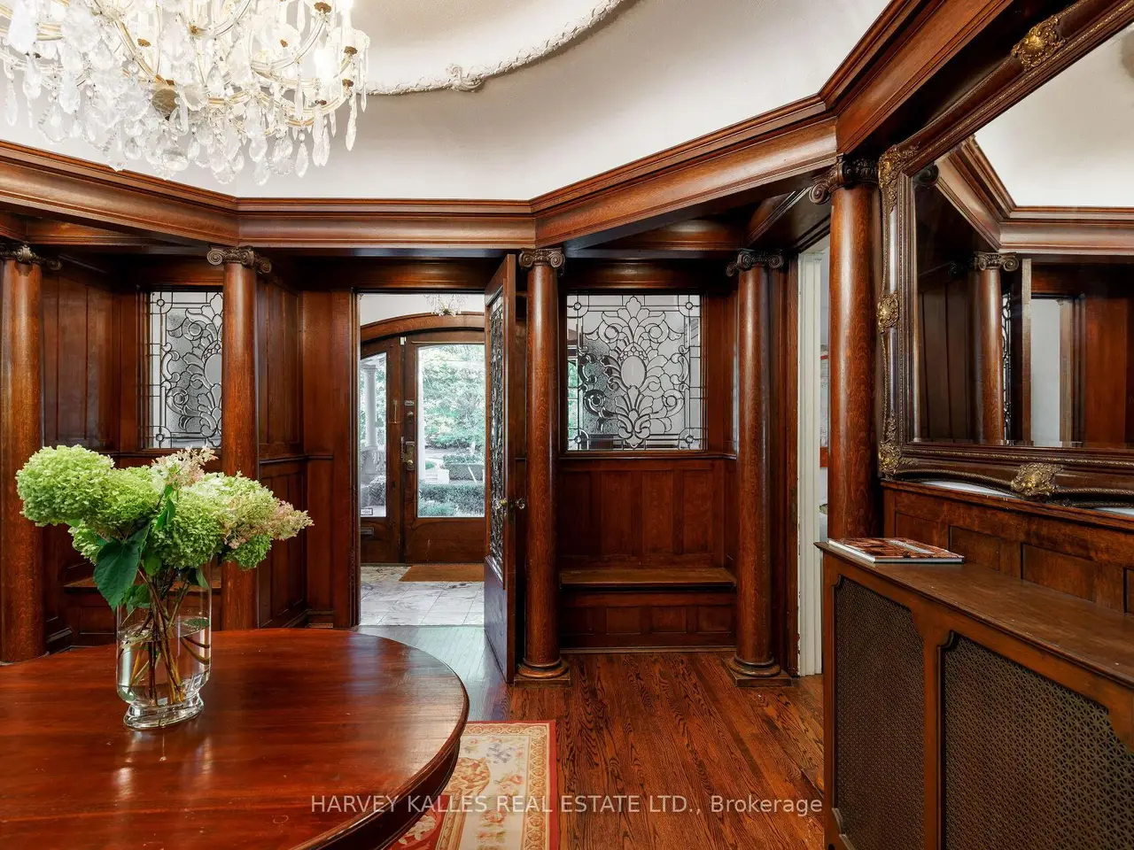 Nestled in Toronto's prestigious Rosedale neighbourhood, this landmark mansion occupies an expansive 100' x 122' estate-sized lot and offers over 7,500 square feet of impeccably designed living spaces. With 7 + 1 generously proportioned bedrooms, 8 bathrooms, and an exceptional third-floor loft, this grand residence seamlessly blends historic architecture with the scale, elegance, and functionality. Originally built circa 1900 for the distinguished Applegate family, the home has been meticulously restored and thoughtfully maintained to preserve it's architectural heritage including a selft portrait stain glass window of Mrs. Applegate herself. Drawing inspiration from the classical traditions of Italian Renaissance architect Andrea Palladiio - most notably his iconic Villa Rotunda in Vicenza, Italy - the home reflects timeless design and exceptional craftmanship. A majestic octagonal central hall, framed by twelve lonic columns, creates an unforgettable first impression and sets the tone for the rest of the residence. Throughout the home, rich period details abound: original oak hardwood floors, finely hand-craved oak mouldings and wainscoting, intricate millwork, and 6 fireplaces with decorative tile and brick hearths. The soaring 10-foot ceilings are adorned with ornate plaster crown mouldings, ceiling medallions, and oak-beamed details that speak to the home's historical significance. Expansive bow windows and beautifully preserved stained glass flood the interior with natural light and highlight the warm, elegant atmosphere. Outside, the property is a private oasis, surrounded by mature trees, lush landscaping, and tranquil gardens that offer rare serenity in the heart of the city. A detached two-car garage and additional parking for three vehicles provide added convenience. This is a once-in-a-generation opportunity to own a truly iconic Rosedale residence - an architectural treasure steeped in history and timeless charm.