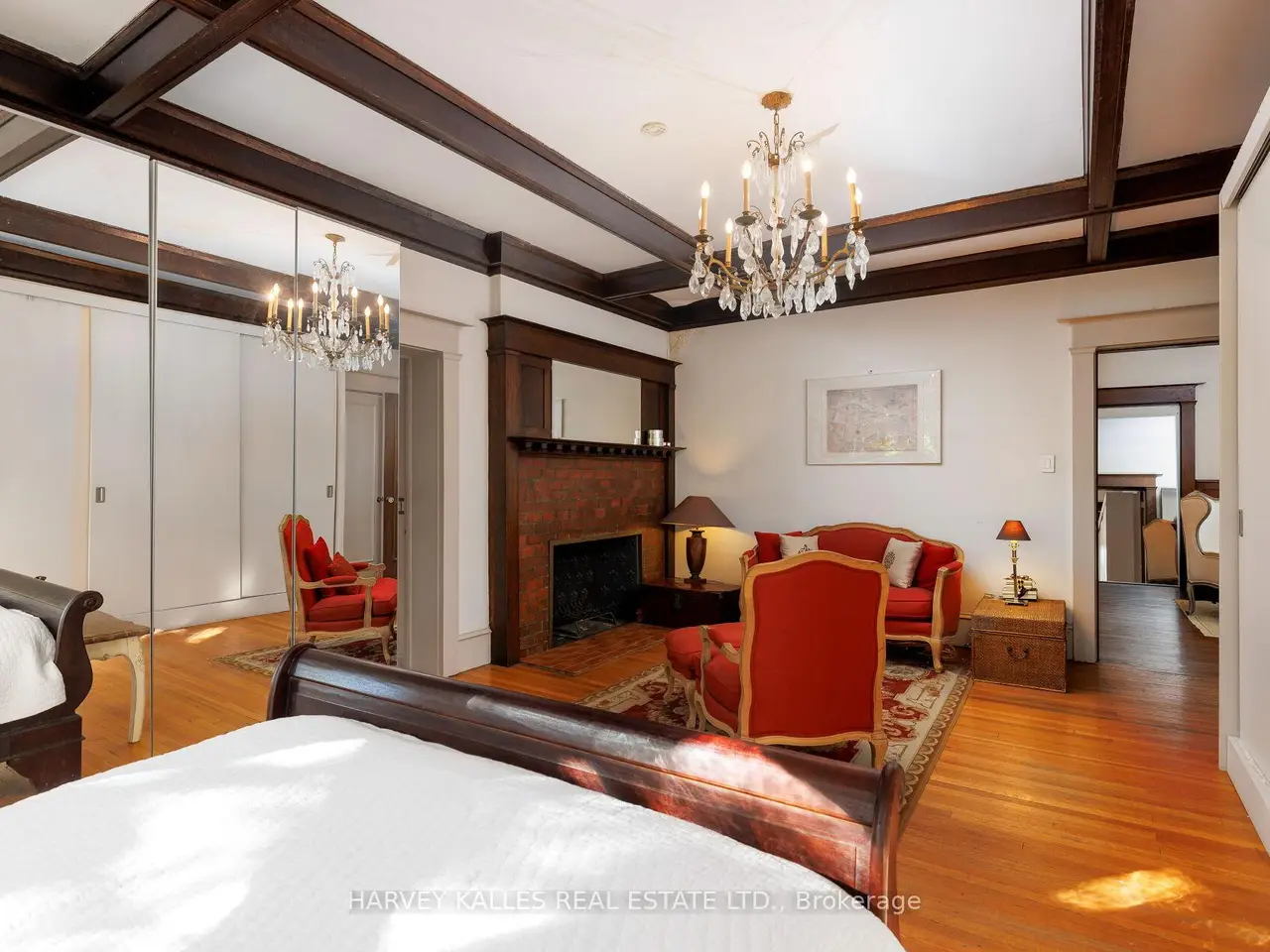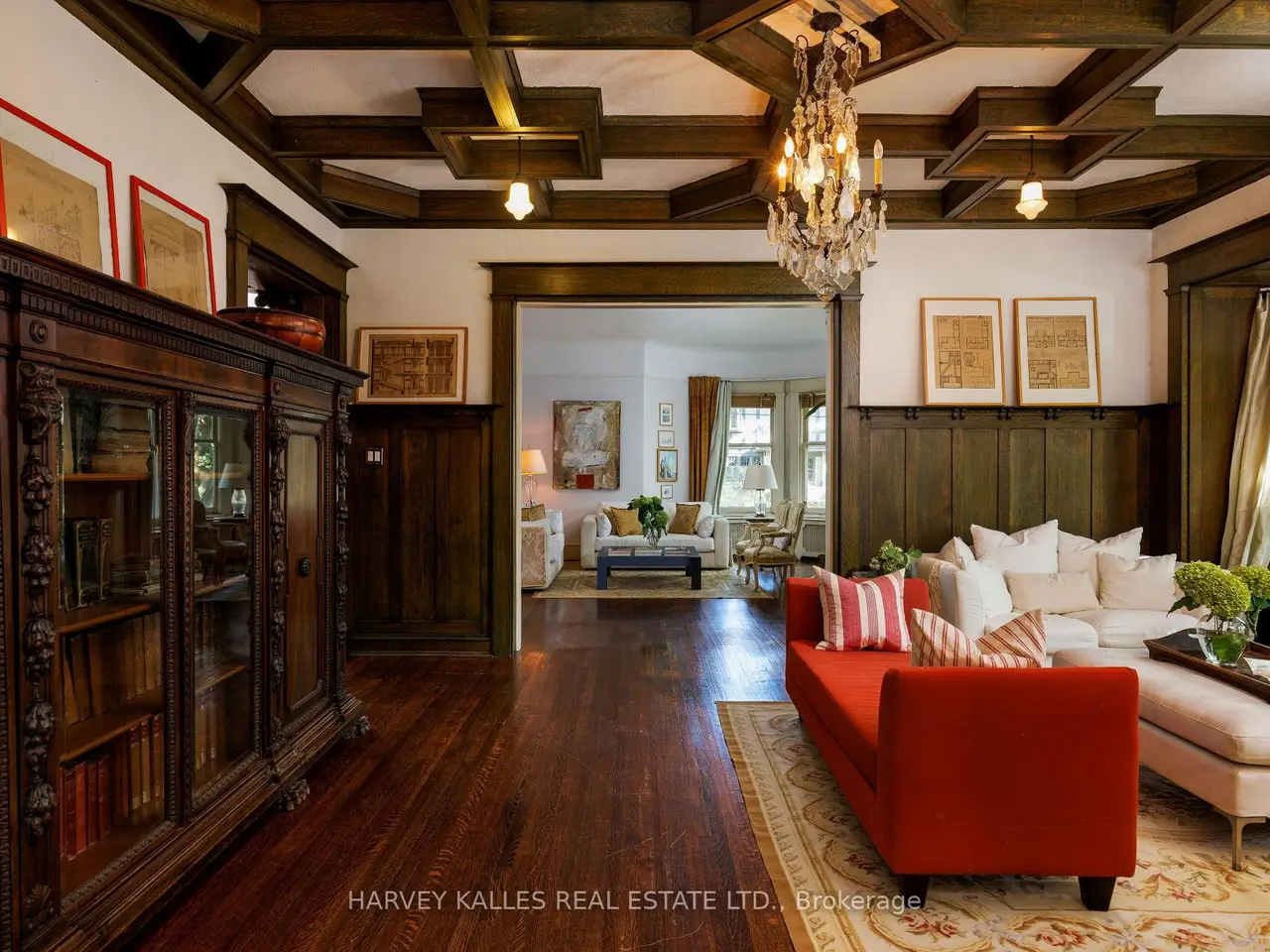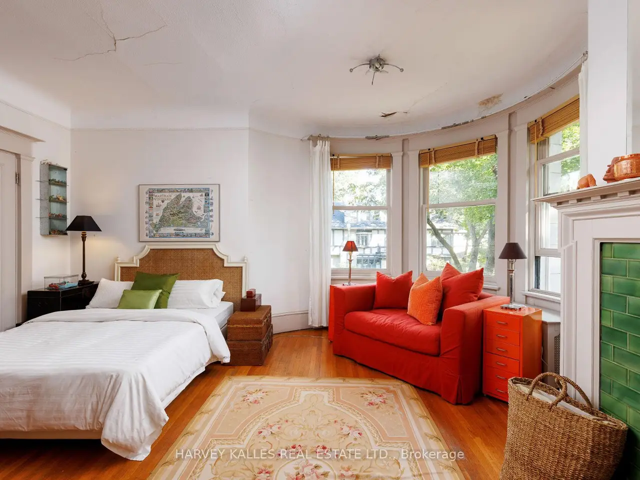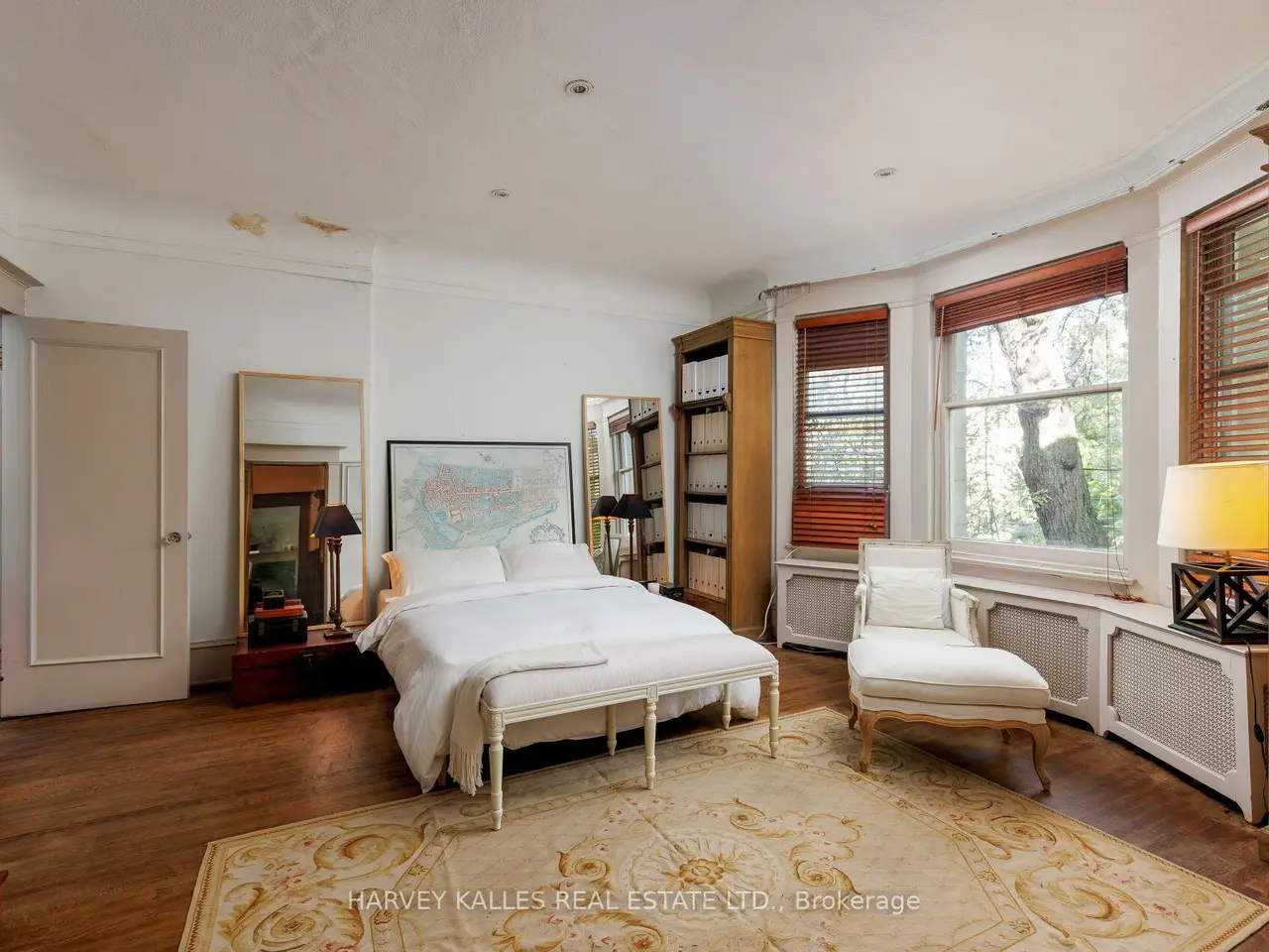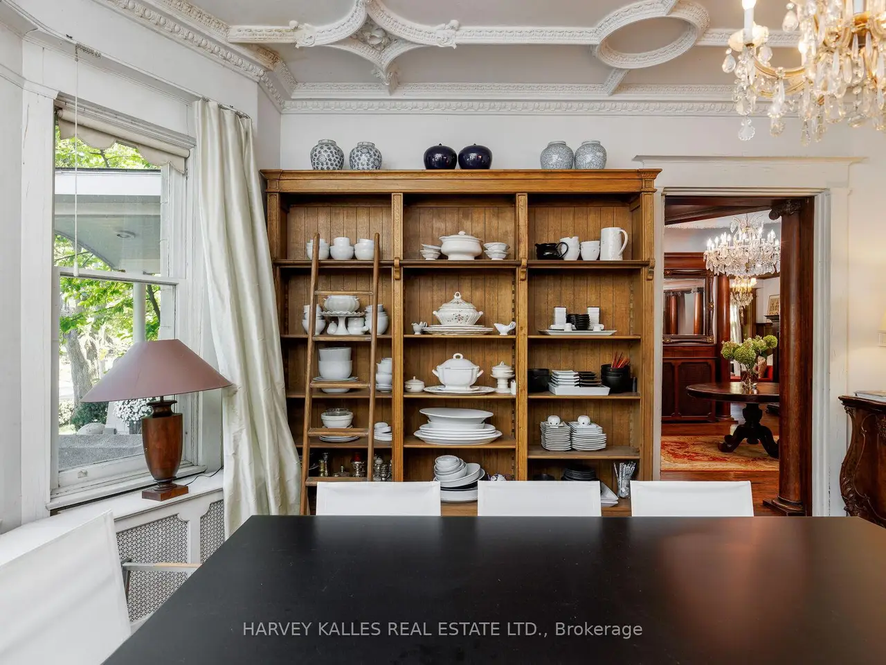Nestled in Toronto's prestigious Rosedale neighbourhood, this landmark mansion occupies an expansive 100' x 122' estate-sized lot and offers over 7,500 square feet of impeccably designed living spaces. With 7 + 1 generously proportioned bedrooms, 8 bathrooms, and an exceptional third-floor loft, this grand residence seamlessly blends historic architecture with the scale, elegance, and functionality. Originally built circa 1900 for the distinguished Applegate family, the home has been meticulously restored and thoughtfully maintained to preserve it's architectural heritage including a selft portrait stain glass window of Mrs. Applegate herself. Drawing inspiration from the classical traditions of Italian Renaissance architect Andrea Palladiio - most notably his iconic Villa Rotunda in Vicenza, Italy - the home reflects timeless design and exceptional craftmanship. A majestic octagonal central hall, framed by twelve lonic columns, creates an unforgettable first impression and sets the tone for the rest of the residence. Throughout the home, rich period details abound: original oak hardwood floors, finely hand-craved oak mouldings and wainscoting, intricate millwork, and 6 fireplaces with decorative tile and brick hearths. The soaring 10-foot ceilings are adorned with ornate plaster crown mouldings, ceiling medallions, and oak-beamed details that speak to the home's historical significance. Expansive bow windows and beautifully preserved stained glass flood the interior with natural light and highlight the warm, elegant atmosphere. Outside, the property is a private oasis, surrounded by mature trees, lush landscaping, and tranquil gardens that offer rare serenity in the heart of the city. A detached two-car garage and additional parking for three vehicles provide added convenience. This is a once-in-a-generation opportunity to own a truly iconic Rosedale residence - an architectural treasure steeped in history and timeless charm.