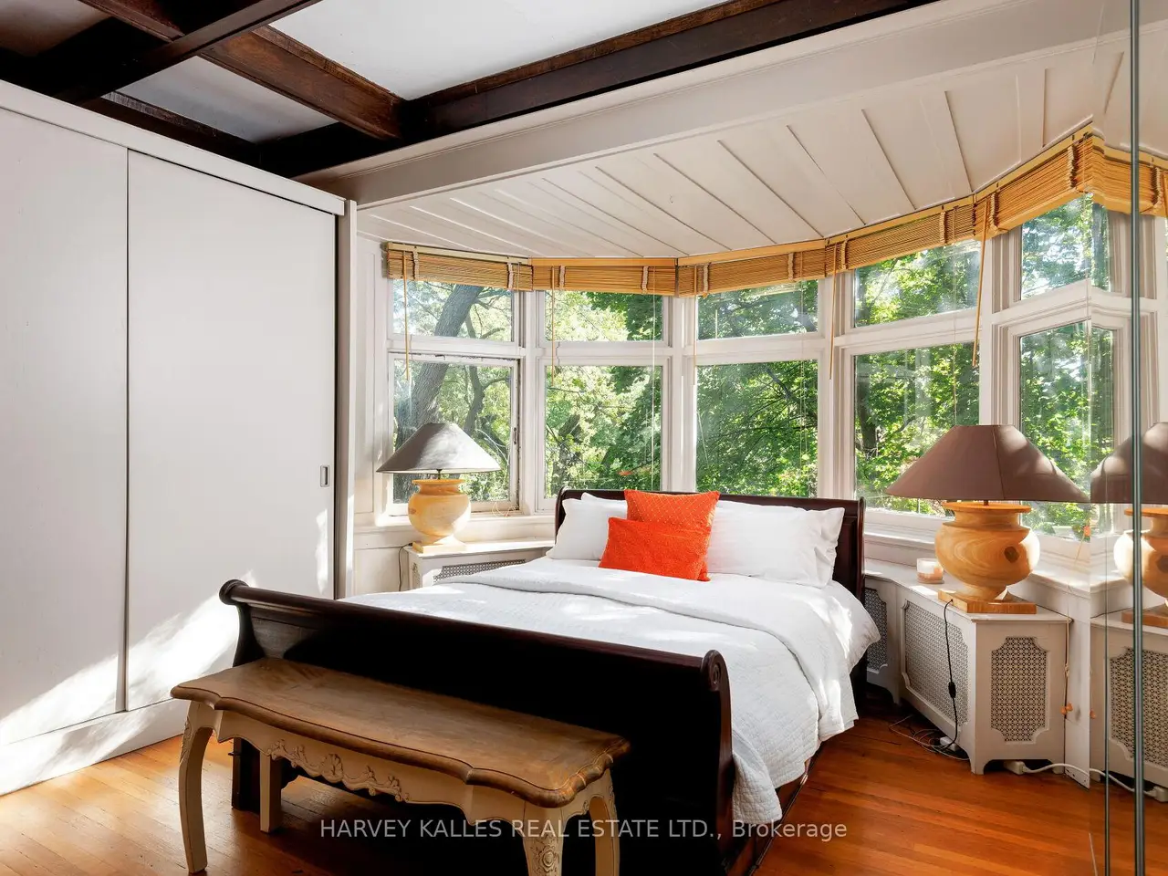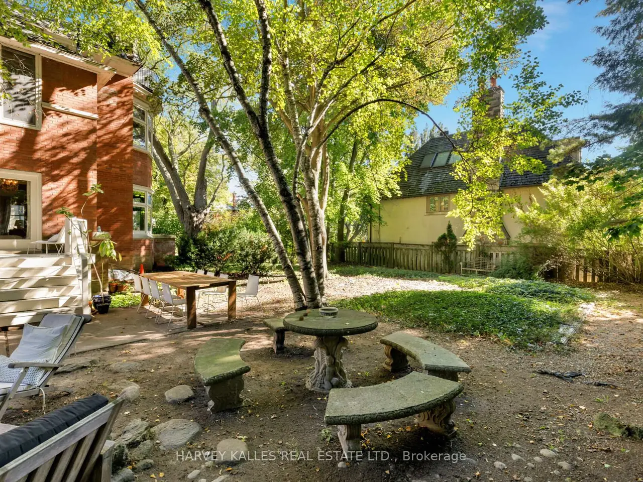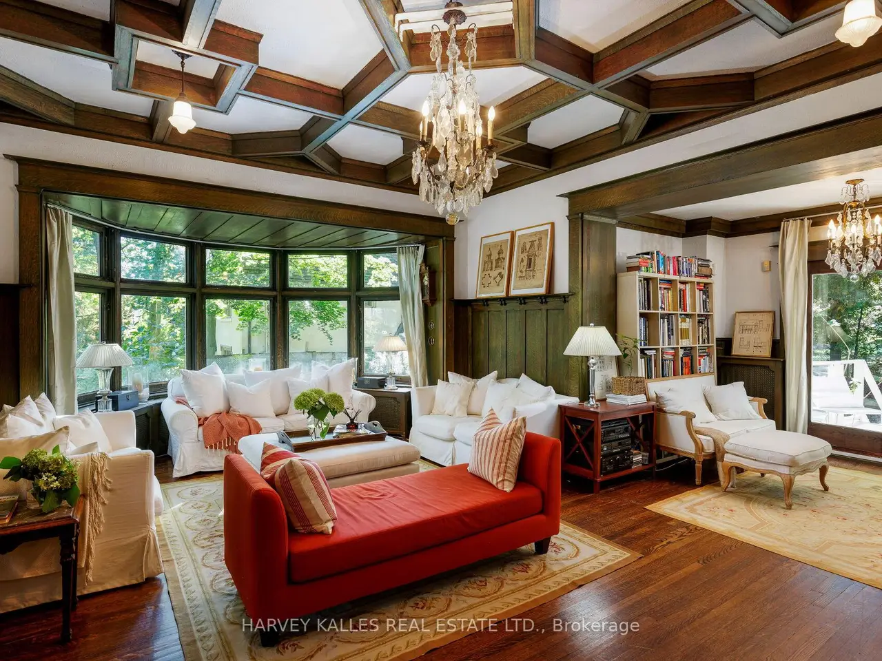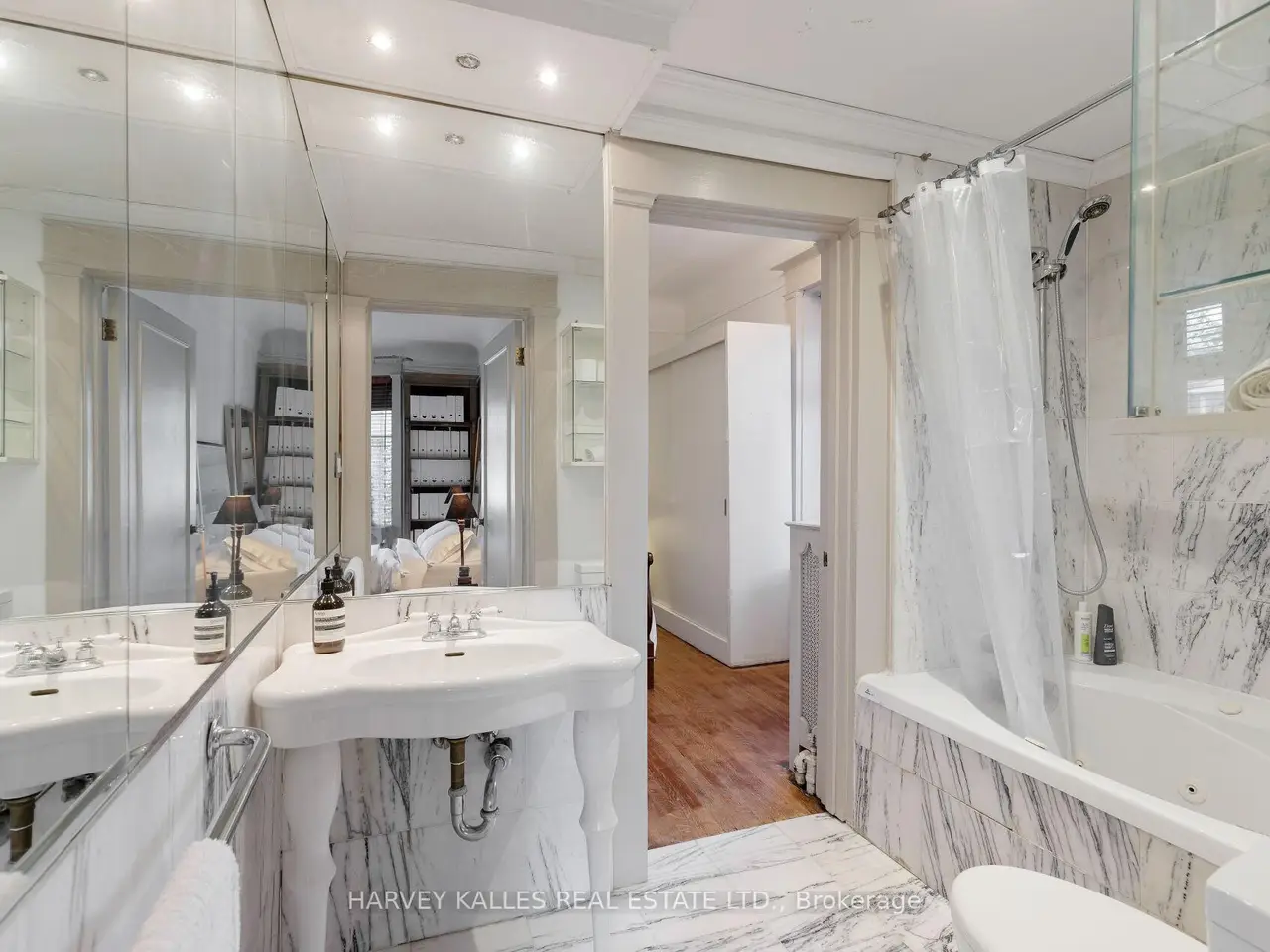 Nestled in Toronto's prestigious Rosedale neighbourhood, this landmark mansion occupies an expansive 100' x 122' estate-sized lot and offers over 7,500 square feet of impeccably designed living spaces. With 7 + 1 generously proportioned bedrooms, 8 bathrooms, and an exceptional third-floor loft, this grand residence seamlessly blends historic architecture with the scale, elegance, and functionality. Originally built circa 1900 for the distinguished Applegate family, the home has been meticulously restored and thoughtfully maintained to preserve it's architectural heritage including a selft portrait stain glass window of Mrs. Applegate herself. Drawing inspiration from the classical traditions of Italian Renaissance architect Andrea Palladiio - most notably his iconic Villa Rotunda in Vicenza, Italy - the home reflects timeless design and exceptional craftmanship. A majestic octagonal central hall, framed by twelve lonic columns, creates an unforgettable first impression and sets the tone for the rest of the residence. Throughout the home, rich period details abound: original oak hardwood floors, finely hand-craved oak mouldings and wainscoting, intricate millwork, and 6 fireplaces with decorative tile and brick hearths. The soaring 10-foot ceilings are adorned with ornate plaster crown mouldings, ceiling medallions, and oak-beamed details that speak to the home's historical significance. Expansive bow windows and beautifully preserved stained glass flood the interior with natural light and highlight the warm, elegant atmosphere. Outside, the property is a private oasis, surrounded by mature trees, lush landscaping, and tranquil gardens that offer rare serenity in the heart of the city. A detached two-car garage and additional parking for three vehicles provide added convenience. This is a once-in-a-generation opportunity to own a truly iconic Rosedale residence - an architectural treasure steeped in history and timeless charm.