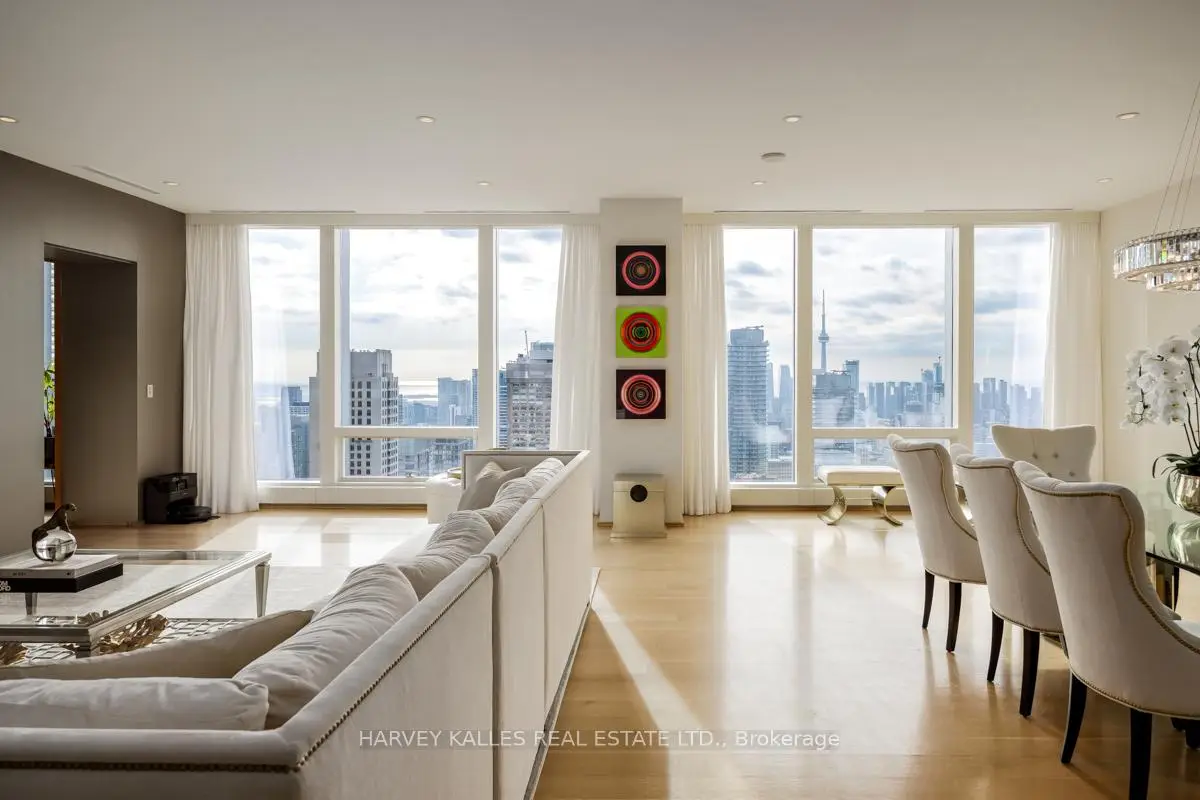Celebrated as one of Toronto's most prestigious and affluent neighborhoods, the Four Seasons Private Residences in Yorkville offer the ultimate in luxury living. Enter through two private elevators to a grand entrance gallery featuring underlit onyx and limestone flooring and soaring ten-foot coffered ceilings. Perfect for refined entertaining, the expansive living and dining area is adorned with six-inch white oak hardwood floors and flooded with natural light from floor-to-ceiling windows, showcasing panoramic views of the city and Lake Ontario. The custom-designed Italian Boffi kitchen is equipped with top-of-the-line Miele appliances, a breakfast nook, and access to a west-facing terrace. The spacious primary suite includes a walk-in dressing room and an opulent six-piece marble ensuite. Additional features include a den with custom beechwood and leather cabinetry opening to an east terrace, and a guest bedroom with its own ensuite and access to the west terrace. Residents enjoy full access to all of the Hotel amenities including the world-class spa, fitness centre, indoor pool, Cafe Boulud and D-Bar, 24/7 concierge & valet, housekeeping & room services, guest suites & parking. Enjoy the availability of the upscale boutiques of Bloor St., Hazelton Lanes & the vibrant cultural scene of Yorkville. **EXTRAS** A prime location close to many parks with public transit readily accessible. This cosmopolitan jewel represents the perfect home for the discerning buyer who desires a truly luxurious living experience in a prime location.