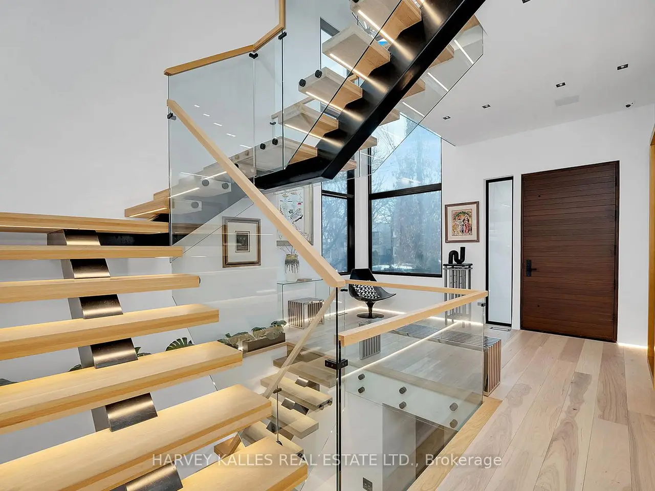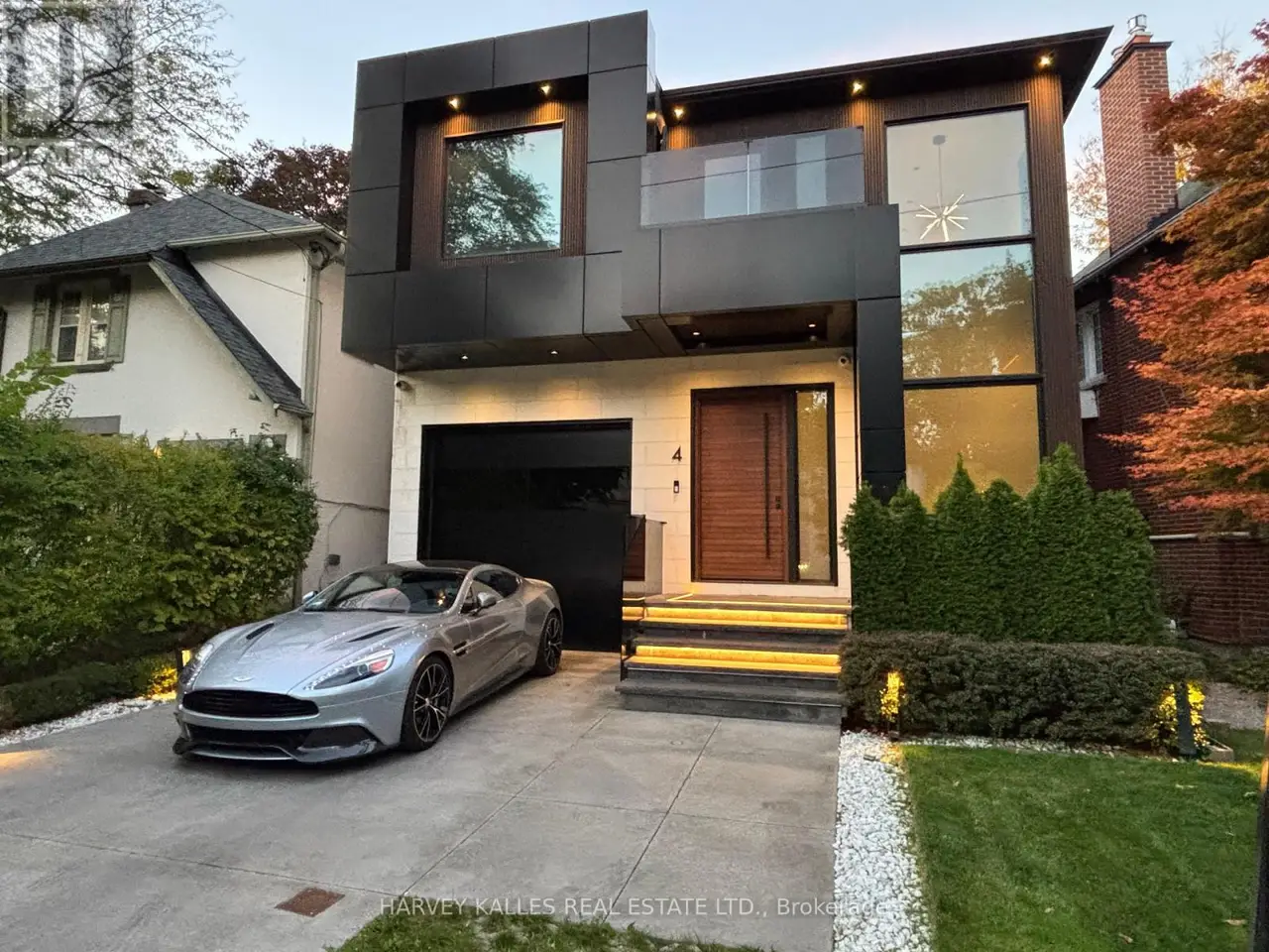Welcome to 4 Douglas Crescent - a modern masterpiece designed with cutting-edge technology, exceptional details and unparalleled craftsmanship. This architecturally unique home is situated on a prime location on the edge of North Rosedale with easy access to Bayview, the DVP, Yorkville, and Summerhill Market. Perfect for a growing family, this home offers an adaptable layout with 4+1 bedrooms and 5 bathrooms, including a second walk-in closet that can be converted back into a 4th bedroom. Combining contemporary style with high-end touches like floating baseboards with accent lighting, hickory wide-plank hardwood flooring throughout, heated marble floor bathrooms and lower level, 9 skylights in the primary bedroom and a striking semi-floating staircase with maple wood handrail and skylight. A home built with purpose and no expenses spared equipped with Control4 home automation managing lighting, climate, 15 security cameras, over 50 surround sound speakers, and fire-safety rated smart glass windows offering seamless transitions from clear to private at the touch of a button. The backyard is primed for landscaping to make it your own and pre-plumbed for a hot tub, gas fireplace and barbecue. An exceptional Garage features a 6,000 LB car lift, heated floors, EV charger, car wash setup, and reinforced concrete and steel floor, as well as a heated driveway totalling 4 car parking. This turn-key treasure built for those who value design, functionality, and innovation, is ready for you to call it home. Backyard is pre-wired for in for BBQ, water and fire feature.