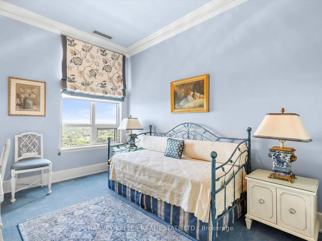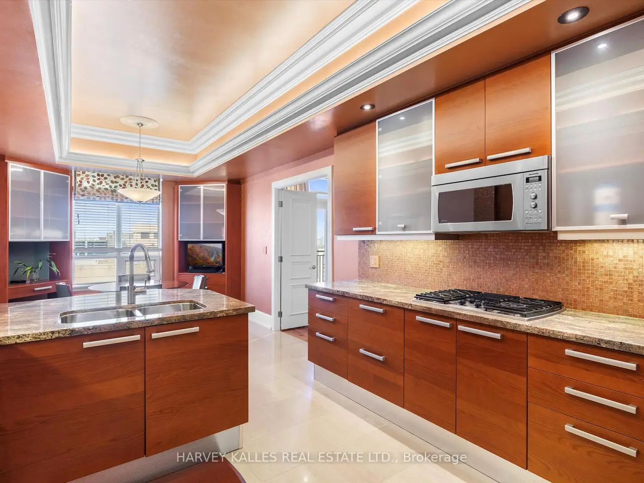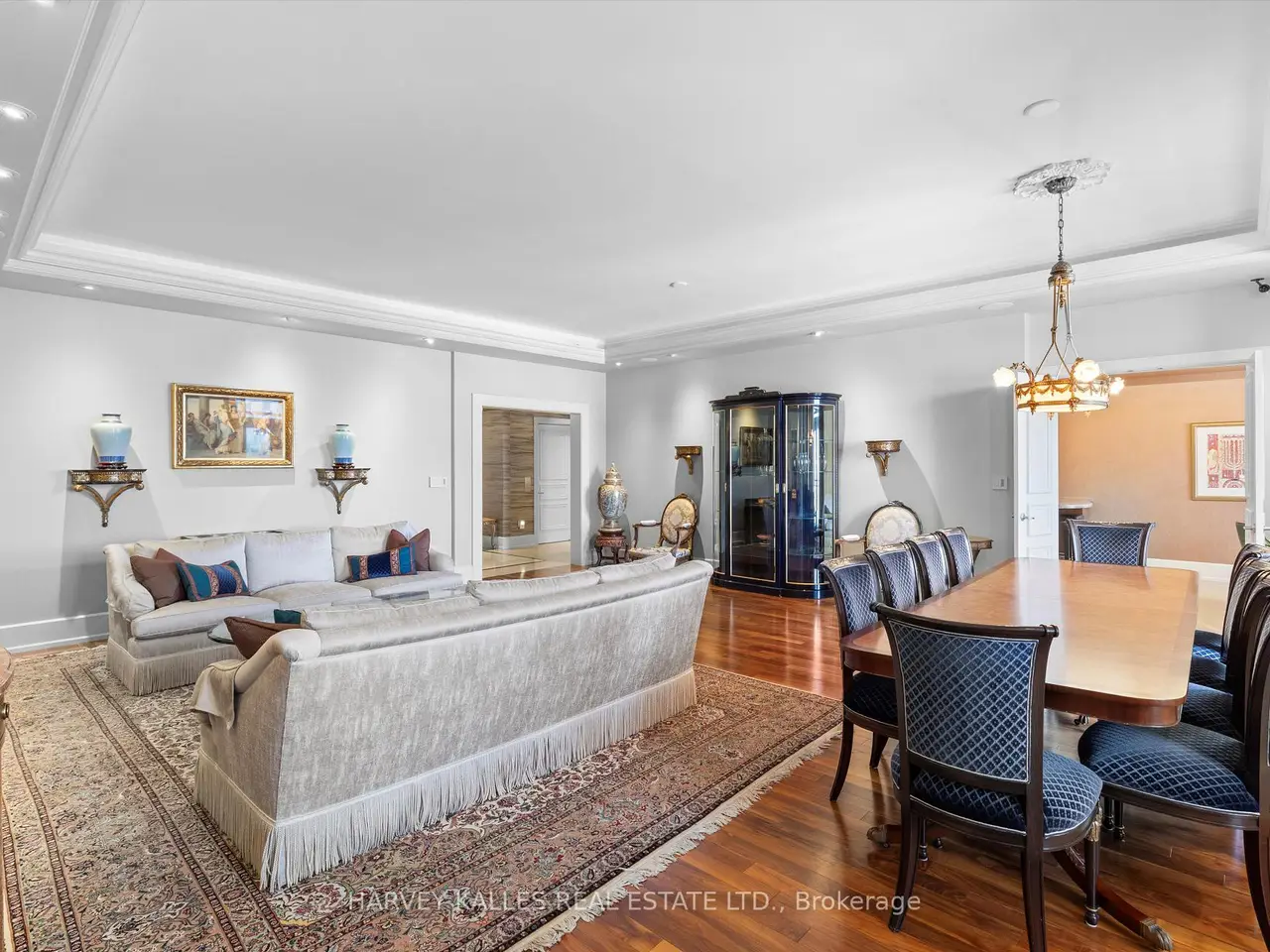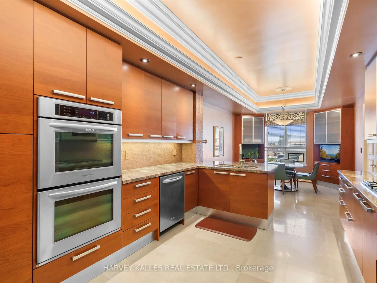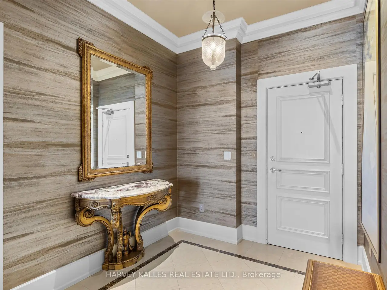 A rare and remarkable suite in the heart of Bayview Village. Originally designed as two separate units, the space has been expertly reimagined into a single, expansive 3-bed, 3-bath residence, offering exceptional scale, flow, and functionality. From the moment you arrive, the attention to detail is evident. Aside from the main suite entrance, this unit offers 2 private entrances from 2 separate elevators. The main elevator opens privately into the suite and the separate Butler's elevator opens into the mudroom - a level of privacy and convenience rarely found in condo living. Inside, you'll find a thoughtfully curated interior finished with granite floors in the hallways and kitchen, rich walnut hardwood throughout, and elegant wallpaper accents that add refined character to each room. The custom kitchen is a chef's dream, featuring cognac walnut cabinetry, granite countertops, and a full suite of premium stainless steel appliances: KitchenAid duo oven, countertop range, dishwasher, and a Panasonic microwave. A Sub-Zero Fridge completed the kitchen with matching cabinet panelling. A secondary stainless steel LG Fridge is available in the secondary mudroom. All of this to say, you're well-equipped for daily living and entertaining. Enjoy two generous balconies for morning coffee or sunsets, along with a dedicated private lounge/library/TV room - perfect for quiet relaxation or hosting guests. The primary suite is a luxurious retreat with a walk-in closet, custom-built-ins, and a spa-style ensuite boasting a glass walk-in shower, heated floors, and a TOTO Washlet toilet. Throughout the suite, thoughtful details such as crown moulding, light valances, and automated curtains and drapes elevate the space. This upscale building offers a full suite of resort-style amenities: fitness and wellness facilities (pool, gym, steam room, hot tub), entertainment spaces (party and game rooms), as well as practical conveniences like concierge, valet, guest suites, and ample parking.