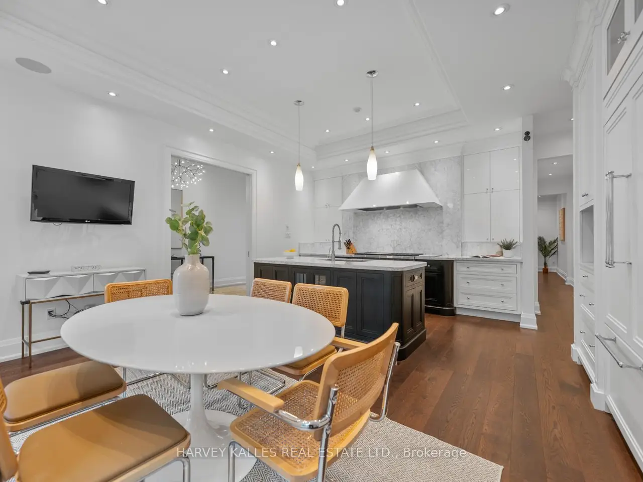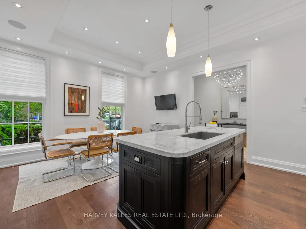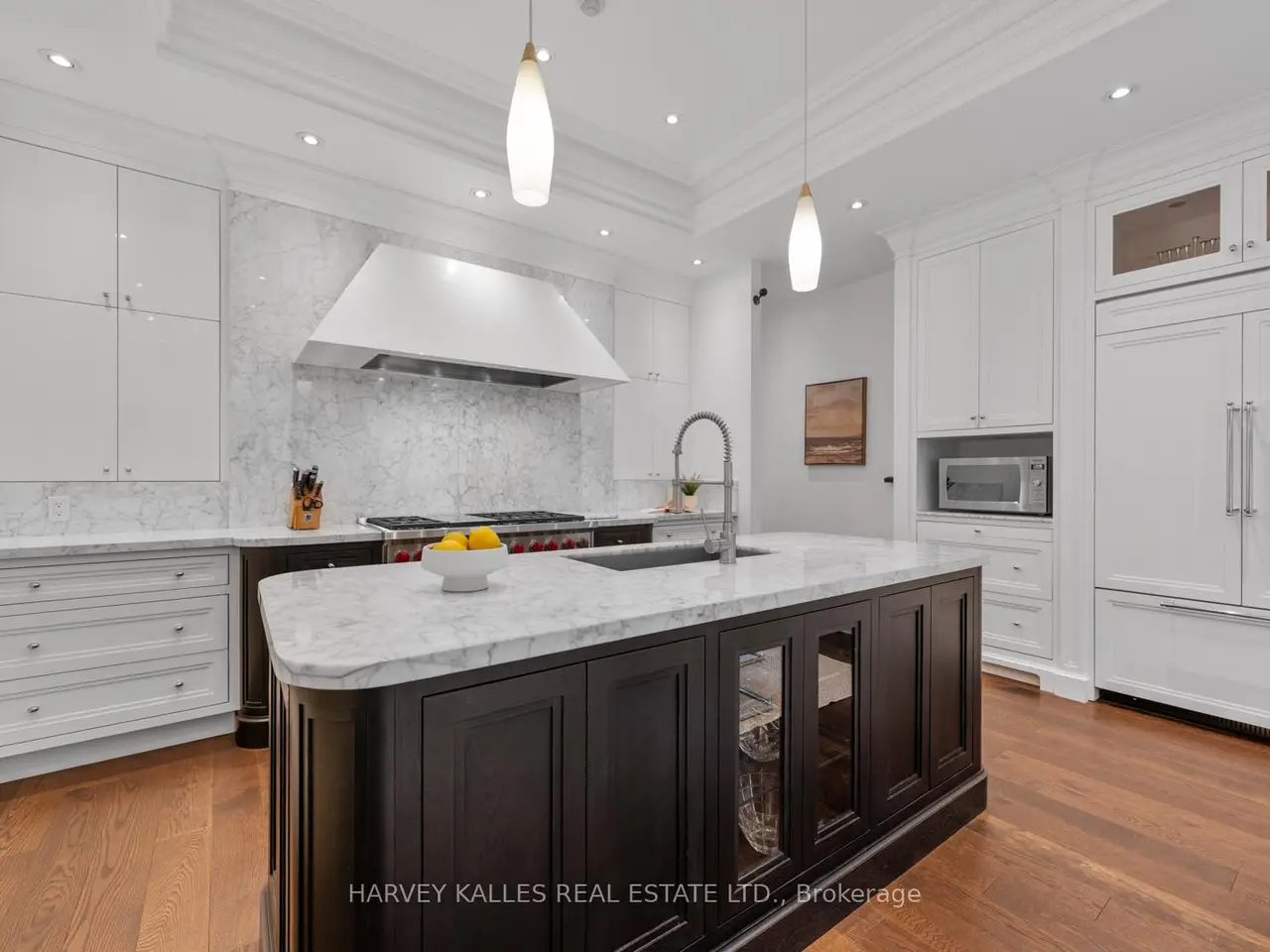 Experience the timeless sophistication of a New York brownstone, reimagined in the heart of midtown Toronto. This bespoke builder's own residence showcases hand-finished limestone architecture and over 4,200 sq. ft. of interiors defined by 11 main floor ceilings, elegant proportions, and meticulous craftsmanship. An inviting marble mosaic entry hall introduces the home, where elegant French pocket doors reveal the chef's kitchen. At its centre, bespoke cabinetry is paired with book-matched marble, a large island, and a sun-filled breakfast area. A discreet walk-through pantry offers abundant storage along with a wine fridge, bar, and display. Expansive glass doors extend the living space to a private deck and landscaped yard - ideal for both refined entertaining and everyday living. Elegant curves throughout, including a sweeping staircase, lend architectural drama, while solid core wood doors and a built-in Bose surround system underscore the home's quiet luxury. A dedicated space alongside the staircase also allows for the addition of a private elevator. Upstairs, with soaring 10 ceilings, the oversized primary suite is a sanctuary complete with an expansive dressing room and dual spa-inspired ensuites joined by a dramatic walk-through shower. Two additional bedroomseach with its own ensuitecomplete this level, including one with a private study ideal for a home office, reading nook, or serene retreat. The versatile lower level features a bright recreation room/gym, guest bedroom, full bath, laundry, and direct access to the double garage. This home delivers a rare blend of convenience and sophistication. Perfectly positioned close to synagogues as well as Toronto's elite public and private schools, this residence offers both lifestyle and locationjust moments from downtown. A residence of rare distinction for those who value timeless design, craftsmanship, and modern comfort.