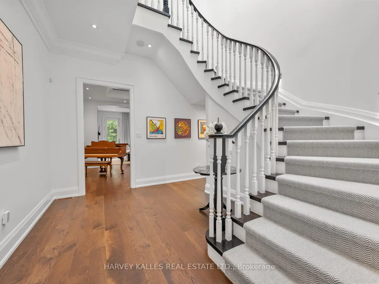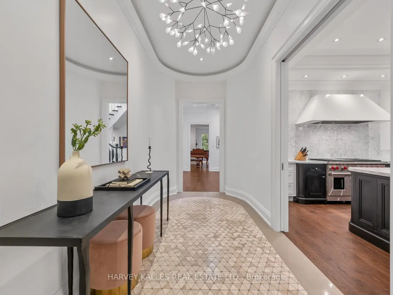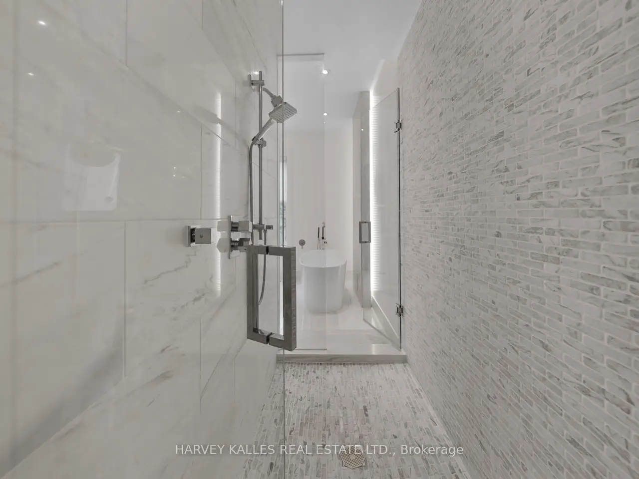 Experience the timeless sophistication of a New York brownstone, reimagined in the heart of midtown Toronto. This bespoke builder's own residence showcases hand-finished limestone architecture and over 4,200 sq. ft. of interiors defined by 11 main floor ceilings, elegant proportions, and meticulous craftsmanship. An inviting marble mosaic entry hall introduces the home, where elegant French pocket doors reveal the chef's kitchen. At its centre, bespoke cabinetry is paired with book-matched marble, a large island, and a sun-filled breakfast area. A discreet walk-through pantry offers abundant storage along with a wine fridge, bar, and display. Expansive glass doors extend the living space to a private deck and landscaped yard - ideal for both refined entertaining and everyday living. Elegant curves throughout, including a sweeping staircase, lend architectural drama, while solid core wood doors and a built-in Bose surround system underscore the home's quiet luxury. A dedicated space alongside the staircase also allows for the addition of a private elevator. Upstairs, with soaring 10 ceilings, the oversized primary suite is a sanctuary complete with an expansive dressing room and dual spa-inspired ensuites joined by a dramatic walk-through shower. Two additional bedroomseach with its own ensuitecomplete this level, including one with a private study ideal for a home office, reading nook, or serene retreat. The versatile lower level features a bright recreation room/gym, guest bedroom, full bath, laundry, and direct access to the double garage. This home delivers a rare blend of convenience and sophistication. Perfectly positioned close to synagogues as well as Toronto's elite public and private schools, this residence offers both lifestyle and locationjust moments from downtown. A residence of rare distinction for those who value timeless design, craftsmanship, and modern comfort.