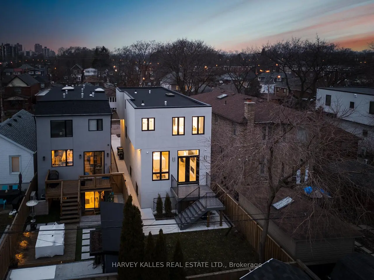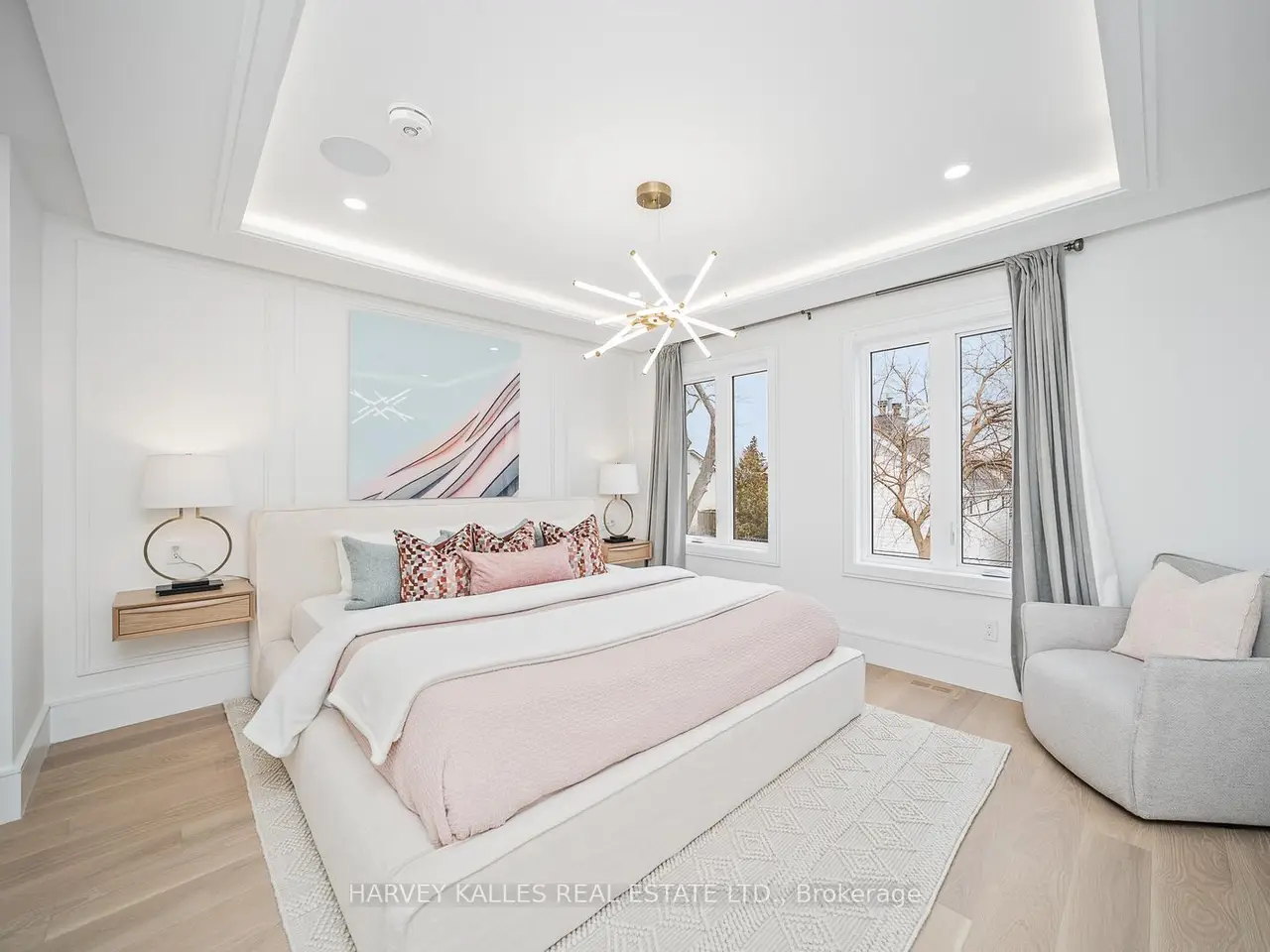 Step into the elegance of 67 Lesmount Avenue, where sophisticated interiors effortlessly blend with a touch of timeless luxury. From the moment you enter, you'll be captivated by the soaring 11-foot ceilings and the abundant natural light that pours through large windows, creating an inviting sense of openness. The main floor seamless flow is highlighted by a meticulously designed cozy and inviting family room boasting a walkout to a fabulous pressure-treated deck (read no maintenance) that overlooks a vibrant garden lined with Cedar trees. The chef-inspired kitchen features top-of-the-line Decor appliances, a spacious island with a breakfast bar, and plenty of counter space ideal for entertaining with ease. Upstairs, you'll find four generously sized bedrooms and a skylight that infuses the space with natural light. The primary suite is a sanctuary of relaxation, featuring a walk-in closet, a spa-like five-piece ensuite and a soaking tub. Venture down to the lower level to discover additional living space, complete with a well-designed mudroom and a flexible recreation area with 10-foot ceilings, perfect for transforming into a home theater, kids playroom, or your own cozy lounge. A convenient walkout leads to a backyard oasis that's perfect for outdoor gatherings or quiet moments. Nestled just steps from the serene green spaces of Dieppe and Four Oaks Gate Park, and with easy access to TTC, downtown, shops, and the vibrant Danforth area including the renowned Serrano Bakery this home offers an exceptional lifestyle in one of Toronto's most sought-after neighborhoods. **EXTRAS** Modern Limestone facade. Brand New Construction/New Foundation. COA approved for xtra sq footage. B/I Garage with epoxy flrs & direct interior access. Convenient 2nd Storey Laundry.**All Bathrooms & Foyer have Heated Floors**