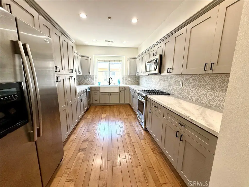 Built in 2010, this beautifully updated 3-bedroom, 3-bath townhome is located in the desirable Village on Oak community, just steps from Wilson Park. The entry level offers a guest bedroom with en-suite bath, laundry area, and direct access to the attached two-car garage, now upgraded with a new WiFi-enabled opener. The main floor features a second guest bedroom and full bath, a newly remodeled kitchen with brand-new cabinets, quartz countertops, and farmhouse sink, plus open dining and living areas with fireplace and access to a refreshing balcony. The private top-level primary suite includes a ceiling fan, spa-inspired bath with dual vanities, soaking tub, separate shower, and an oversized walk-in closet with plenty of storage. Additional updates include fresh interior paint, new carpet, wood flooring, LED recessed lighting, central A/C, tankless water heater, and double-pane windows. An extra assigned parking space is also included. The HOA, just $300/month, provides resort-style amenities such as a pool, spa, BBQ area, and playground. Enjoy a vibrant lifestyle next to Wilson Park’s Farmers Market (Tuesdays & Saturdays), and just minutes from shopping, the post office, and Del Amo Mall. Original owner—this move-in ready home combines comfort, convenience, and style!