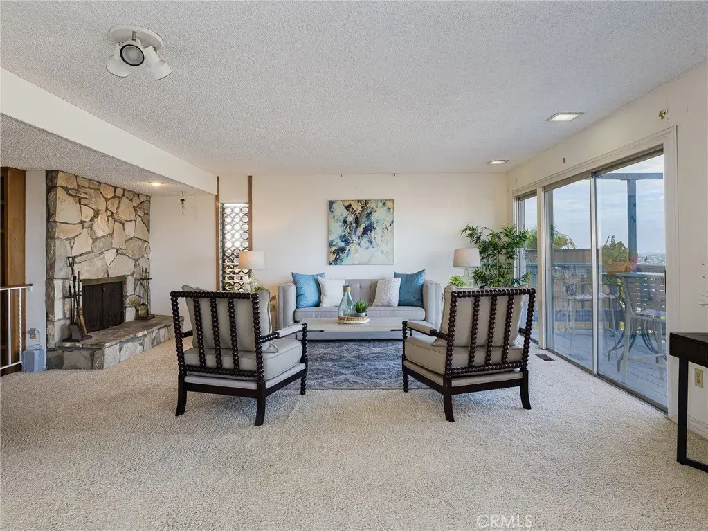 Love lots of potential, a great floor plan and panoramic views? This is the house for you! Lovingly lived in by the same family for 53 years, this 4 bedroom, 2 1/2 bathroom home has a nice open floor plan on the first/top floor - kitchen, dining and living room - all with panoramic views and sliding patio doors to the patio. The lower level has the 4 bedrooms, one of which is an en-suite with a fireplace, laundry room and its own patio with fountain. Then below the house is tons of storage space with potential to become whatever you can make it....office, work out, ADU potential? Then there is a backyard perfect for playing 1970's style Starsky & Hutch cops & robbers games. Come check out the views and potential to make this your new home!