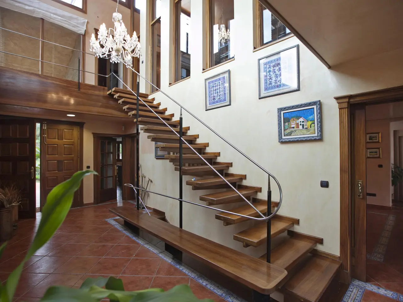This unique property is located in Santa Apolonia, one of Valencia's most prestigious residential areas. The complex has 24hr. security and an exceptional social club with a pool and restaurant. The villa was built by one of Spain's most prominent construction companies using solid cement and unbeatable handwork. Even the finishes of the property are of premium quality. It's important to highlight the excellent indoor and outdoor carpentry as well as the underfloor heating system. Set on a 2.000 square-meter plot, this house comes with a beautiful garden, a huge pool and an outdoor dining area. Inside, there is a large kitchen, a huge living room, a spacious dining area, six bedrooms and seven bathrooms between the main house and guest/personnel apartment. The master bedroom is a stand-out feature of the property and occupies an entire floor with a terrace that provides spectacular views. It's also key to highlight the size and practicality of the kitchen, sufficient to cater for an entire family. The lift also allows the house to feel cosy and comfortable to live in despite it's imposing size. The basement consists of parking spaces, storage areas and a guest/personnel apartment. There is also an impressive 200m2 rustic and traditional style wine cellar, the perfect area to spend time with family and friends. The complex has a social club, 24 hour security and access to public transport links. It can be found just 20 kilometres away from the city of Valencia, a kilometre away from the city of Torrent and close to a variety of amenities such as schools and leisure facilities.
