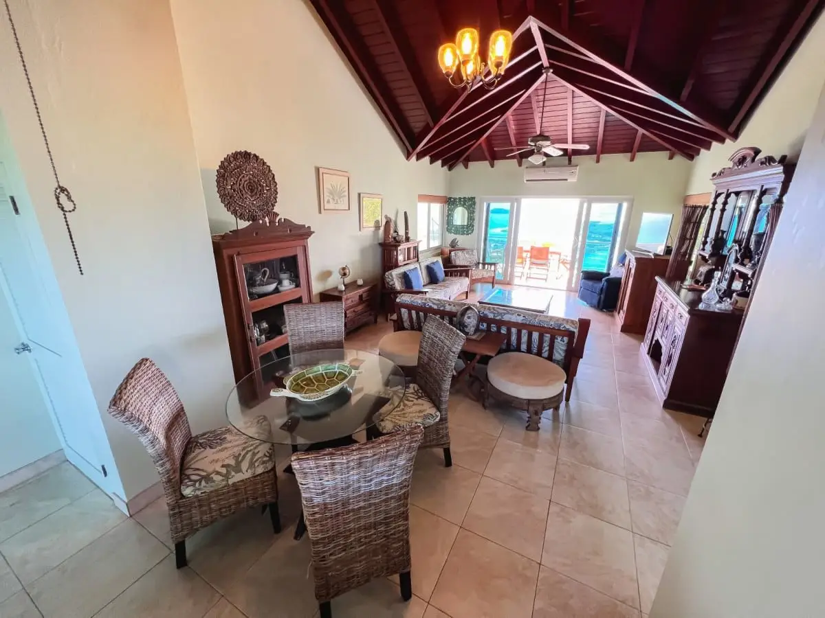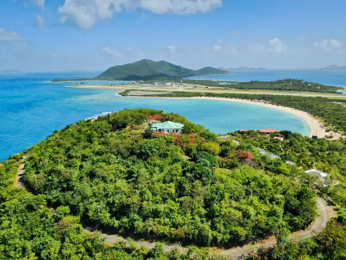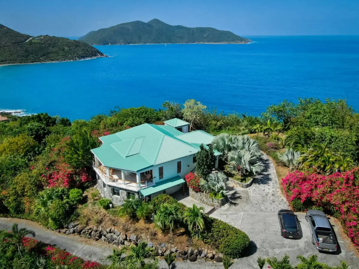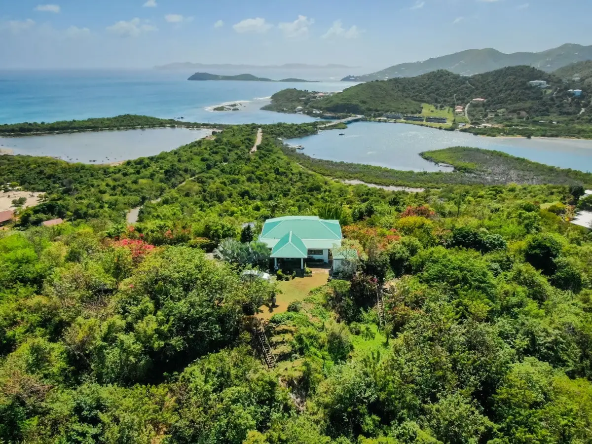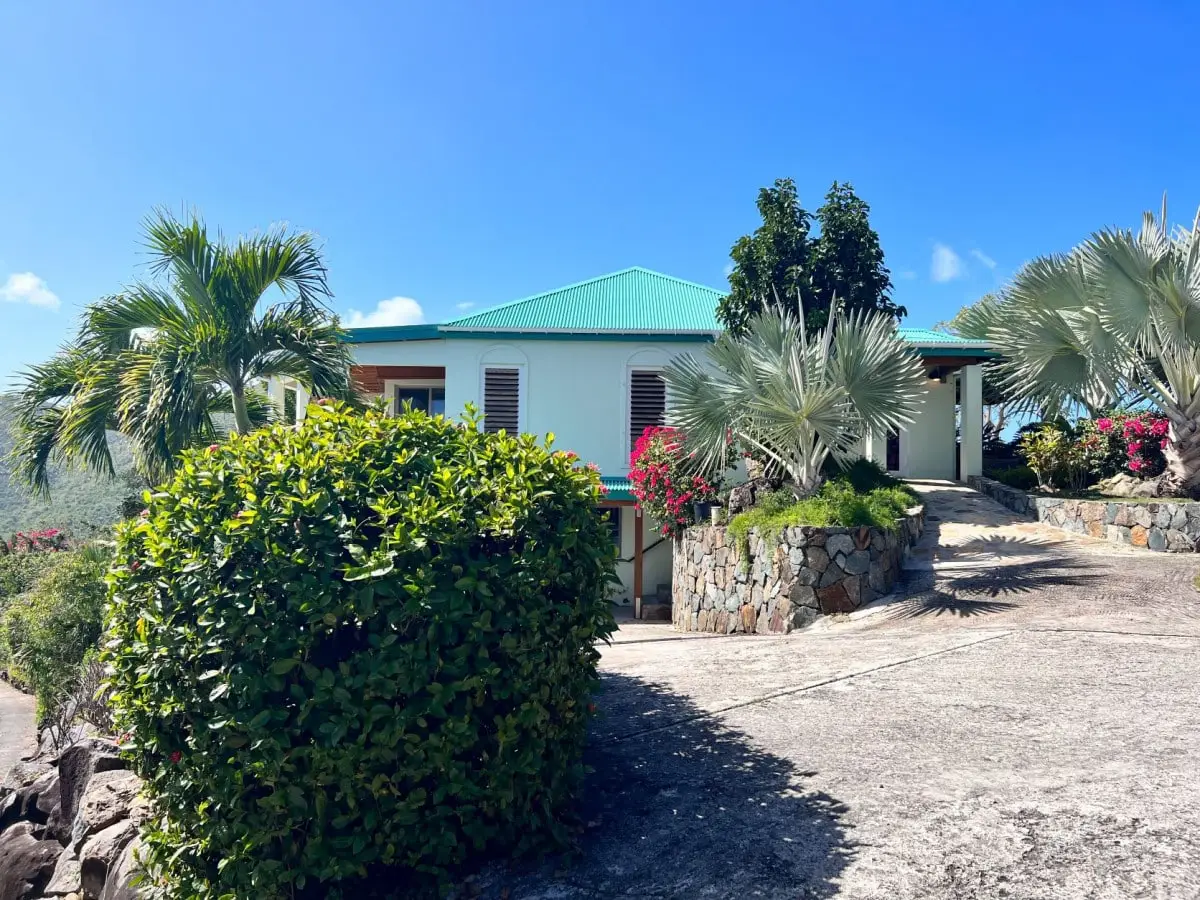 3.11 acres located on the peak of Little Mountain, Beef Island. Little Mountain Estate is a prestigious private estate on Beef Island offering magnificent views of Tortola and the surrounding islands of Guana, Little Camanoe, Great Camanoe and Buck. The Estate is walking distance to Long Bay Beach and only a short drive to Little Bay, Lambert and Trellis Bay. In spite of this idyllic location, the estate is only 20 mins drive from all the amenities of Road Town. There are also supermarkets, restaurants and medical services available in East End. The Estate is well maintained by the Home Owner's Association and Restrictive Covenants are in place to control building developments and commercial enterprises. A second house, as well as guest suites would be permitted on this truly sensational site in addition to the existing property. A sub division would be possible with consent. The existing house on the site comprises 2 ensuite bedrooms with open plan living room and kitchen. All rooms open up onto a very solid deck with 180 degree views from Long Bay Beach around to Guana Island. There is a self contained 1 bedroom apartment with private entrance located beneath the main house. Post Irma, the roof and deck were replaced and the property was redecorated. Walkways lead down to an established orchard below the house with custard apples, mangos, limes, carambola all beginning to thrive once more. Just above the driveway, there is a substantial area of virtually flat land which would be the perfect site for a main house to be constructed, with 360 degree views. Both the grounds and the house are extremely well maintained. Some modernisation is required, but essentially this is a turn key property.