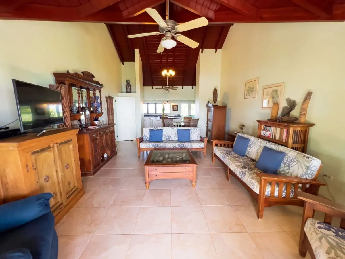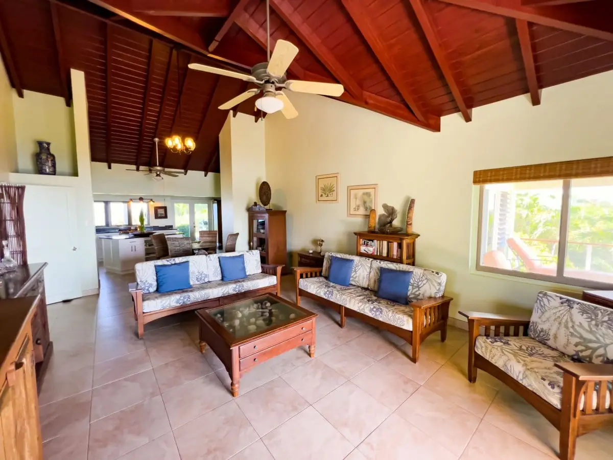 Open-plan living room with solid deck