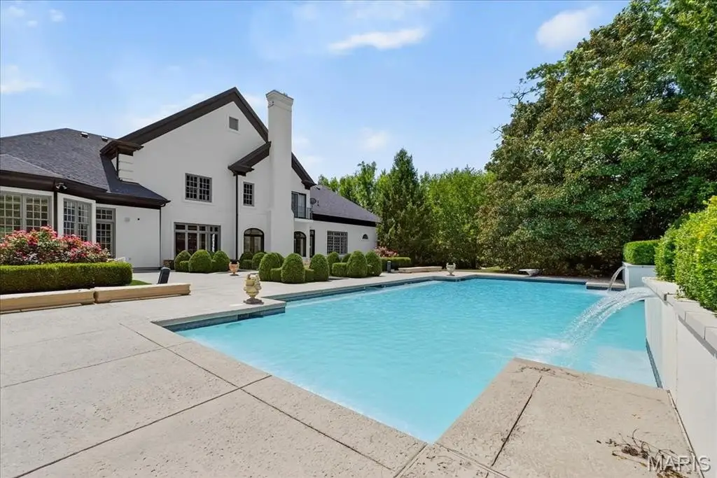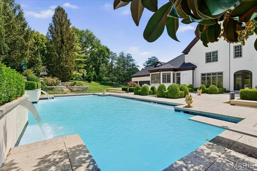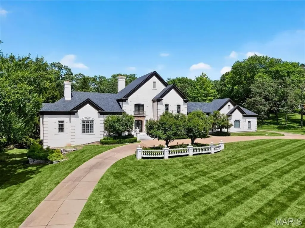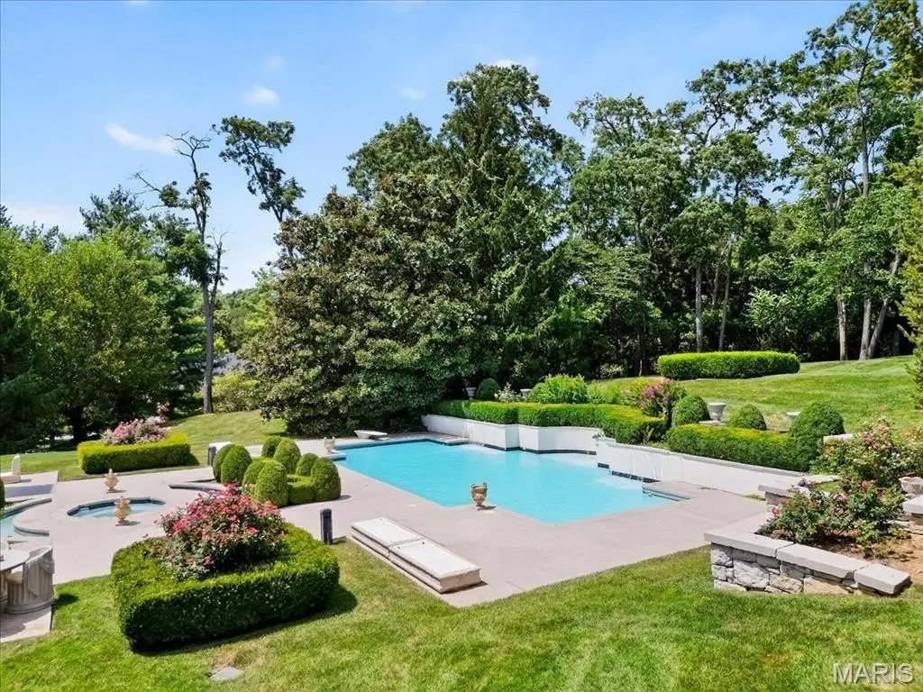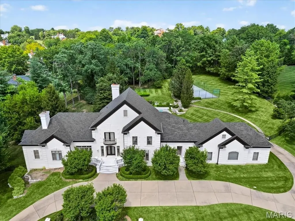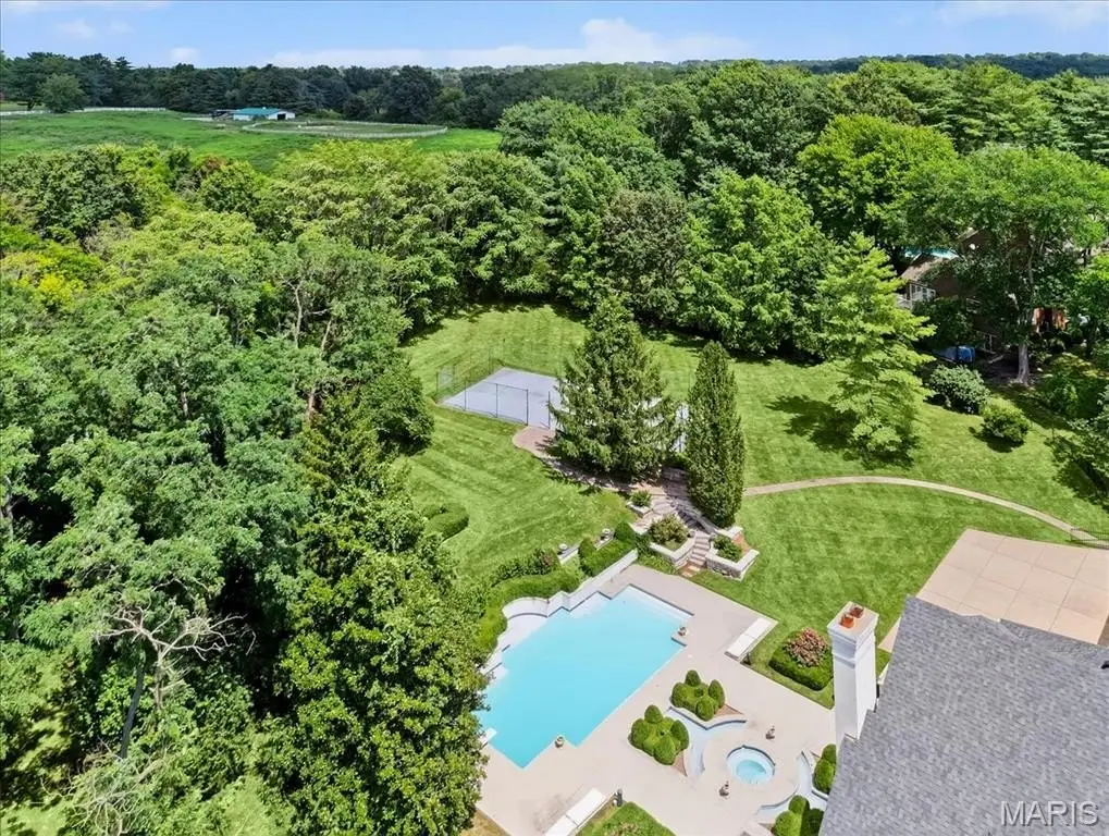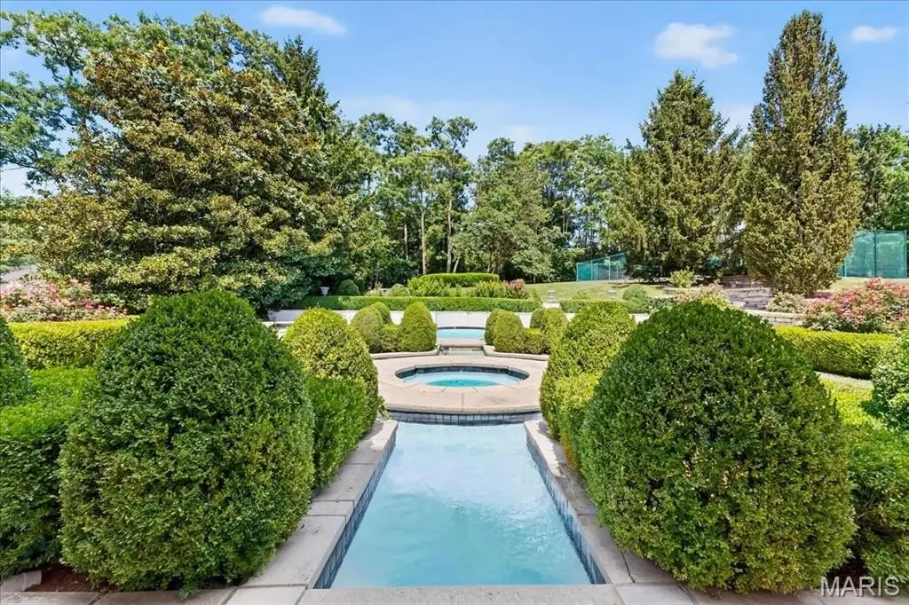 Poised for transformation, this Town & Country estate rests on nearly two beautifully landscaped acres in an exclusive gated enclave. Surrounded by trees, the lot provides unparalleled privacy, while the home’s generous square footage, resort-style amenities, and thoughtfully designed layout provide a perfect personalization opportunity. Designed for entertaining, the gracious foyer invites you into the expansive living room and dining room with floor-to-ceiling windows overlooking the stunning backyard—complete with a pool with waterfalls, tennis court, and lush landscaping for your personal oasis. The spacious eat-in kitchen offers abundant cabinetry, counter space, and a breakfast room with a built-in banquette. A cozy den is ideal for movie nights, while the billiards room provides a versatile space for games, an office, or library. The main-floor primary suite, with a gas fireplace offers dual walk-in closets, soaking tub, separate shower, and dual vanities. Upstairs are two bedrooms with a shared bath, one en-suite, and a flexible fourth bedroom or creative studio. The walk-out lower level checks all the boxes with a wine cellar, theater room, guest bedroom, full bath and kitchen. Additional highlights include a spacious first-floor laundry and mudroom, a secondary service entrance, and an oversized four-car garage. With its timeless setting and impressive grounds, this property provides the canvas for a new homeowner to create their own custom masterpiece.