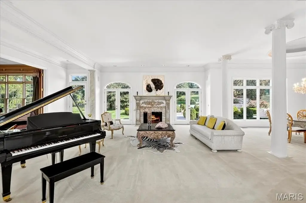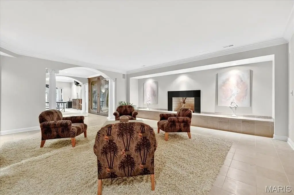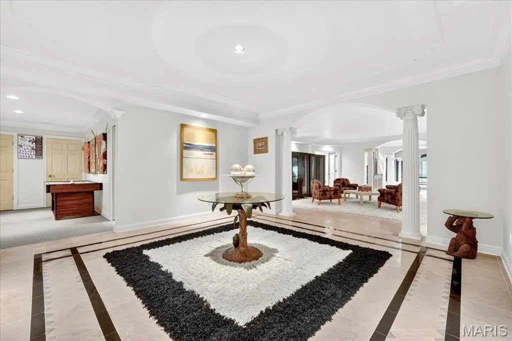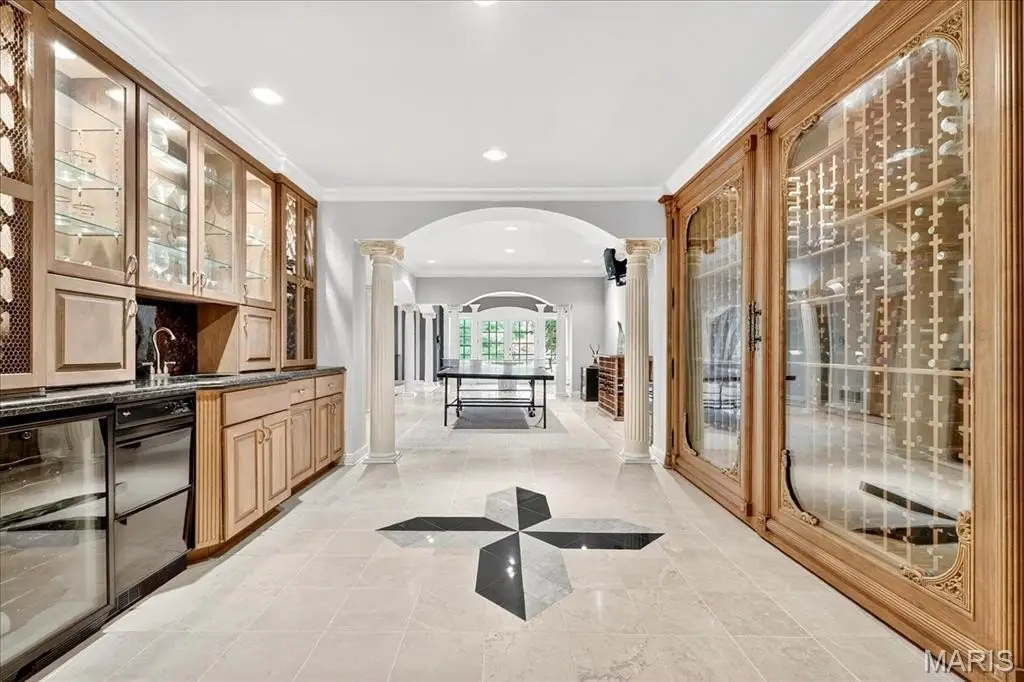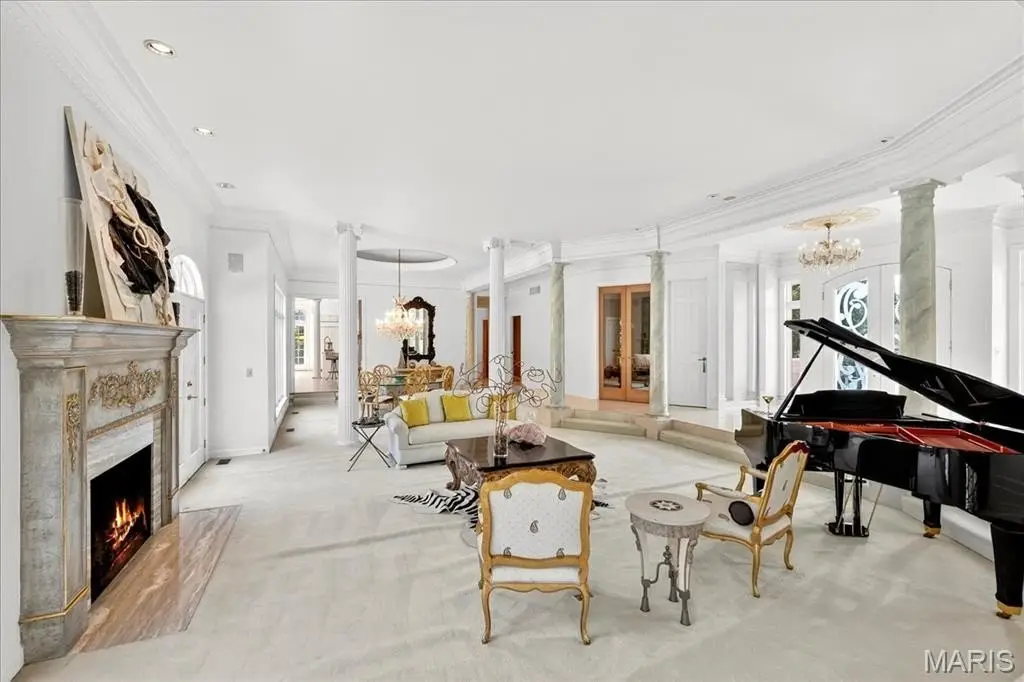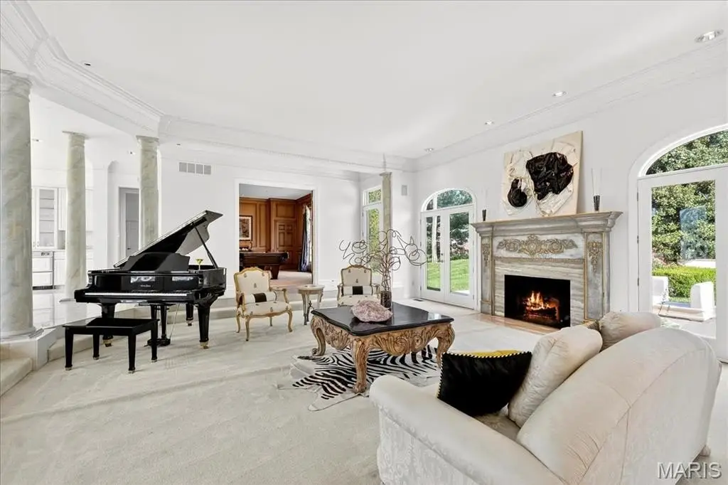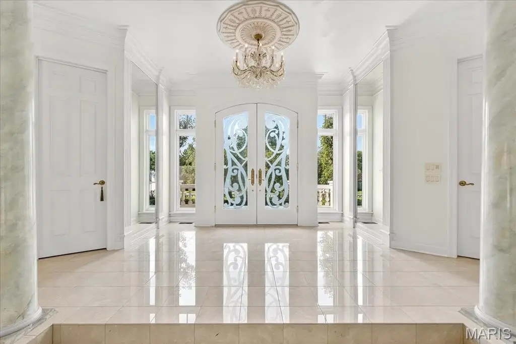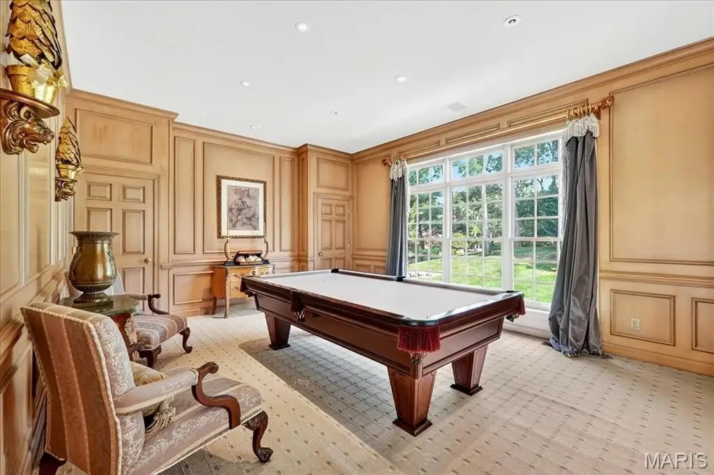 Poised for transformation, this Town & Country estate rests on nearly two beautifully landscaped acres in an exclusive gated enclave. Surrounded by trees, the lot provides unparalleled privacy, while the home’s generous square footage, resort-style amenities, and thoughtfully designed layout provide a perfect personalization opportunity. Designed for entertaining, the gracious foyer invites you into the expansive living room and dining room with floor-to-ceiling windows overlooking the stunning backyard—complete with a pool with waterfalls, tennis court, and lush landscaping for your personal oasis. The spacious eat-in kitchen offers abundant cabinetry, counter space, and a breakfast room with a built-in banquette. A cozy den is ideal for movie nights, while the billiards room provides a versatile space for games, an office, or library. The main-floor primary suite, with a gas fireplace offers dual walk-in closets, soaking tub, separate shower, and dual vanities. Upstairs are two bedrooms with a shared bath, one en-suite, and a flexible fourth bedroom or creative studio. The walk-out lower level checks all the boxes with a wine cellar, theater room, guest bedroom, full bath and kitchen. Additional highlights include a spacious first-floor laundry and mudroom, a secondary service entrance, and an oversized four-car garage. With its timeless setting and impressive grounds, this property provides the canvas for a new homeowner to create their own custom masterpiece.