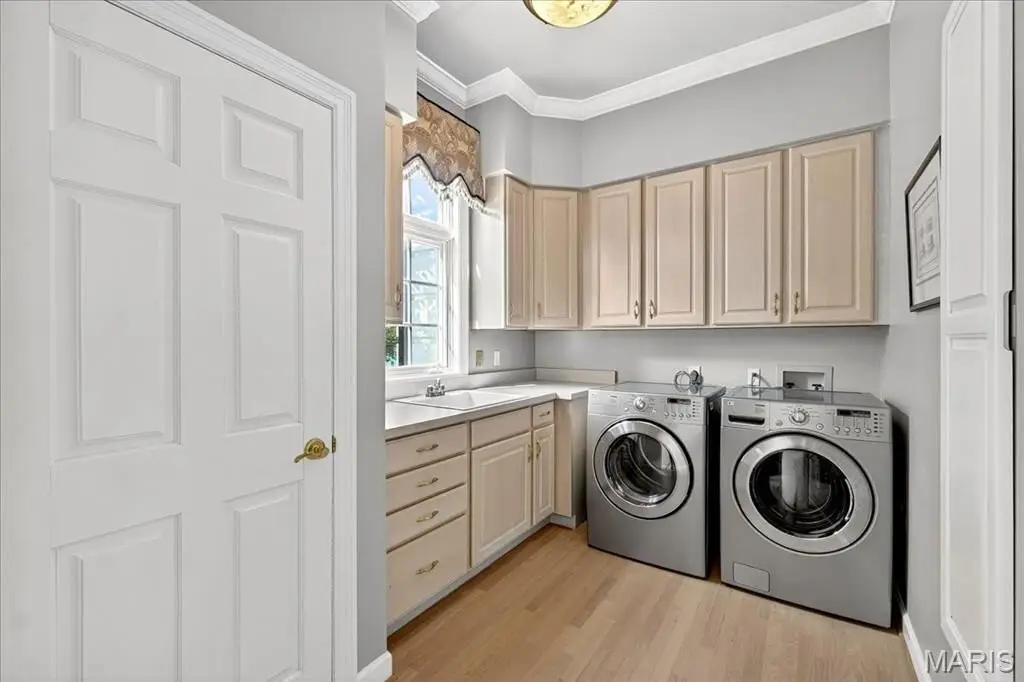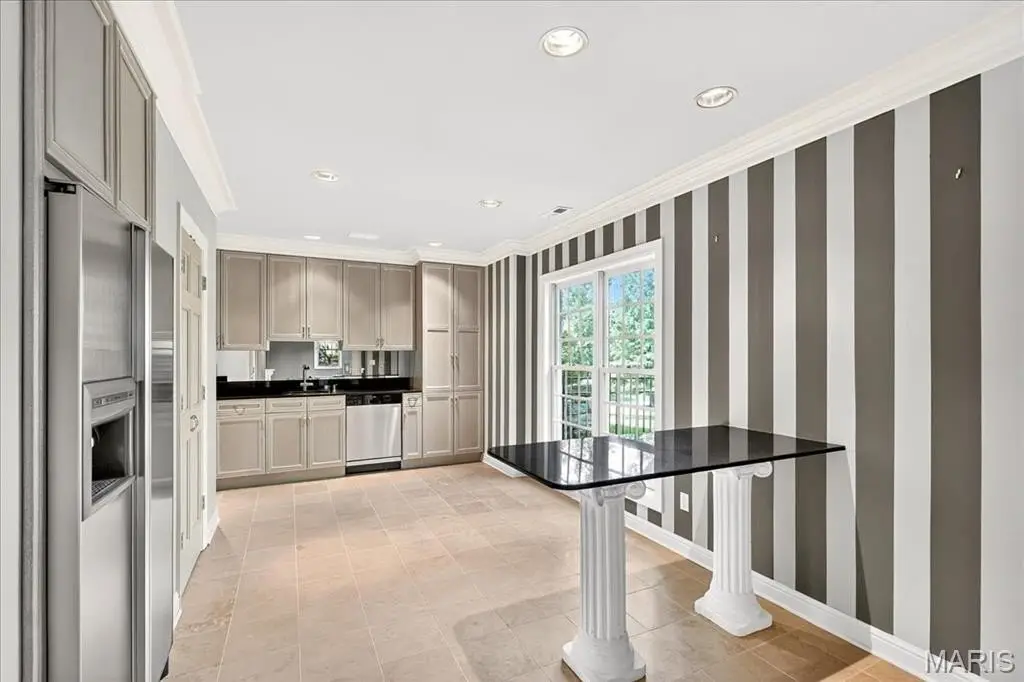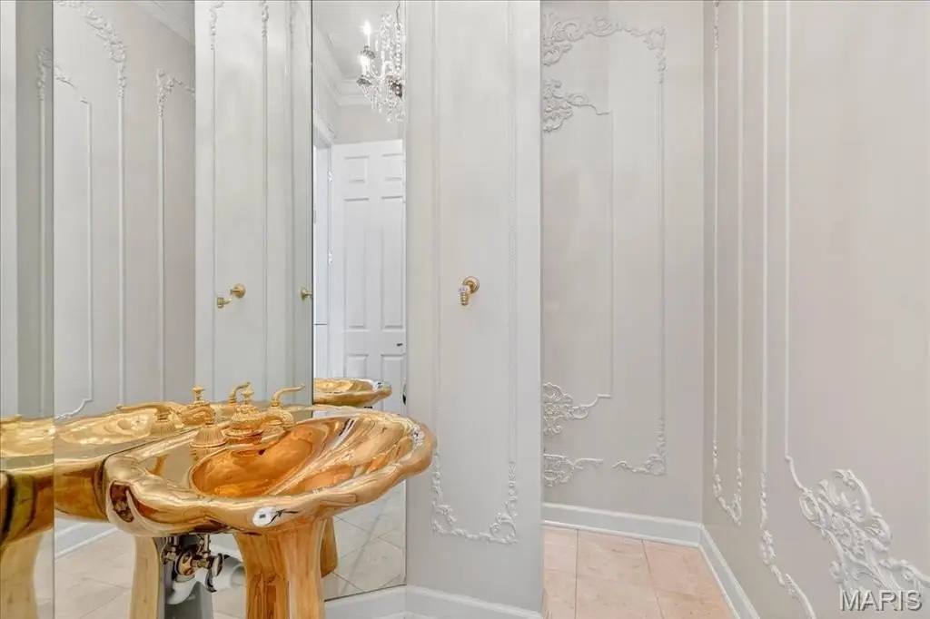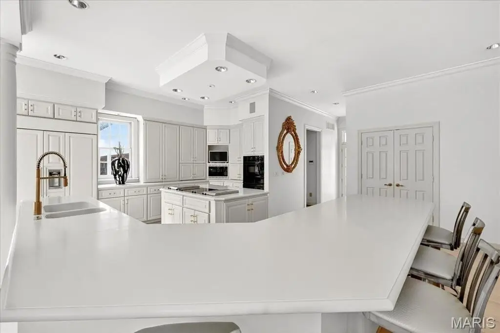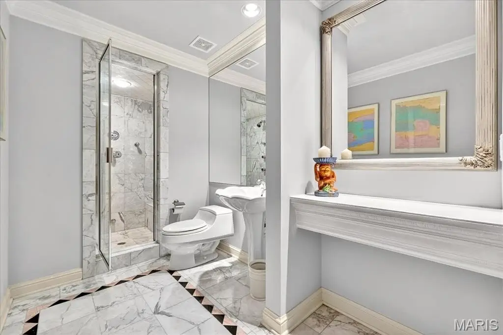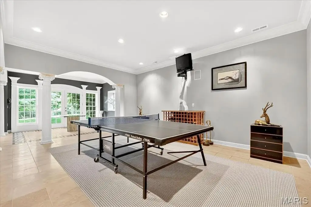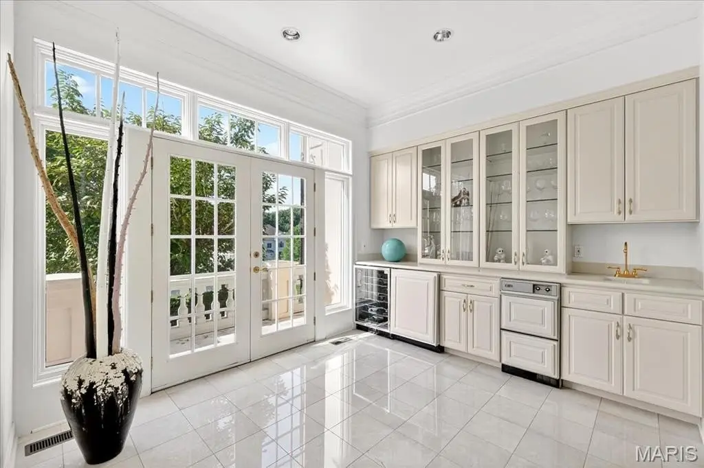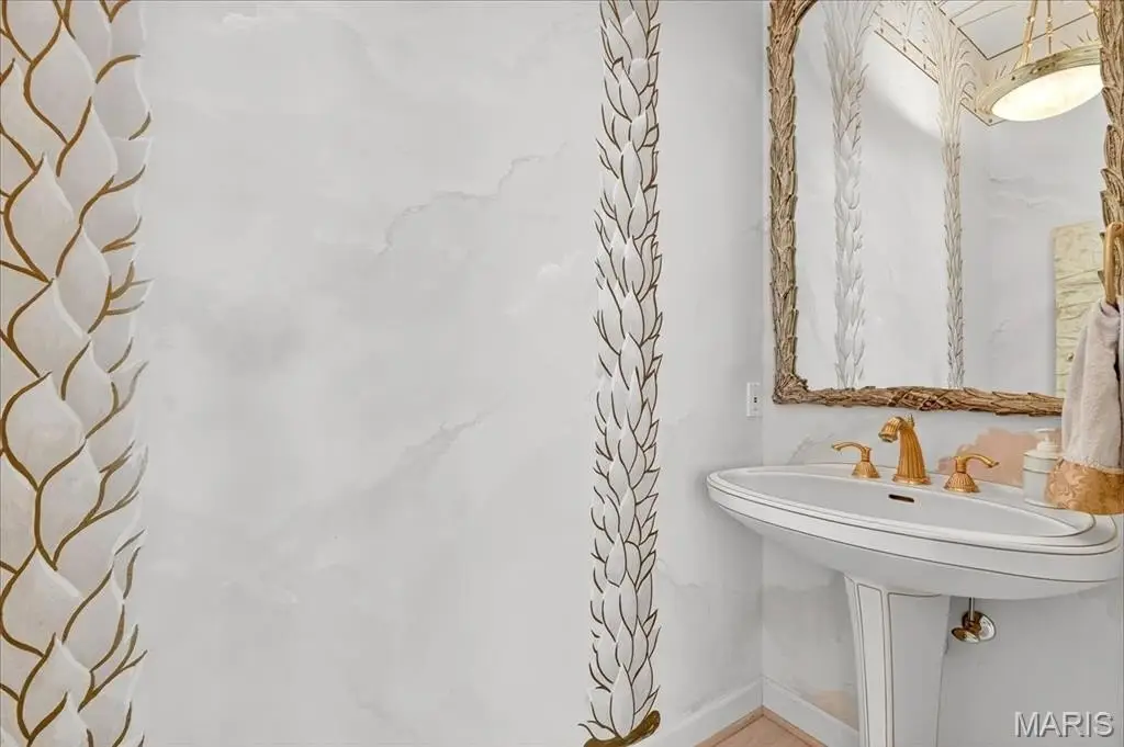 Poised for transformation, this Town & Country estate rests on nearly two beautifully landscaped acres in an exclusive gated enclave. Surrounded by trees, the lot provides unparalleled privacy, while the home’s generous square footage, resort-style amenities, and thoughtfully designed layout provide a perfect personalization opportunity. Designed for entertaining, the gracious foyer invites you into the expansive living room and dining room with floor-to-ceiling windows overlooking the stunning backyard—complete with a pool with waterfalls, tennis court, and lush landscaping for your personal oasis. The spacious eat-in kitchen offers abundant cabinetry, counter space, and a breakfast room with a built-in banquette. A cozy den is ideal for movie nights, while the billiards room provides a versatile space for games, an office, or library. The main-floor primary suite, with a gas fireplace offers dual walk-in closets, soaking tub, separate shower, and dual vanities. Upstairs are two bedrooms with a shared bath, one en-suite, and a flexible fourth bedroom or creative studio. The walk-out lower level checks all the boxes with a wine cellar, theater room, guest bedroom, full bath and kitchen. Additional highlights include a spacious first-floor laundry and mudroom, a secondary service entrance, and an oversized four-car garage. With its timeless setting and impressive grounds, this property provides the canvas for a new homeowner to create their own custom masterpiece.