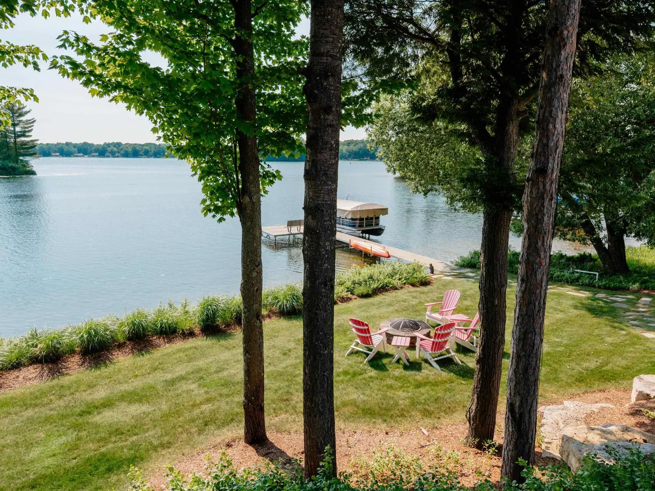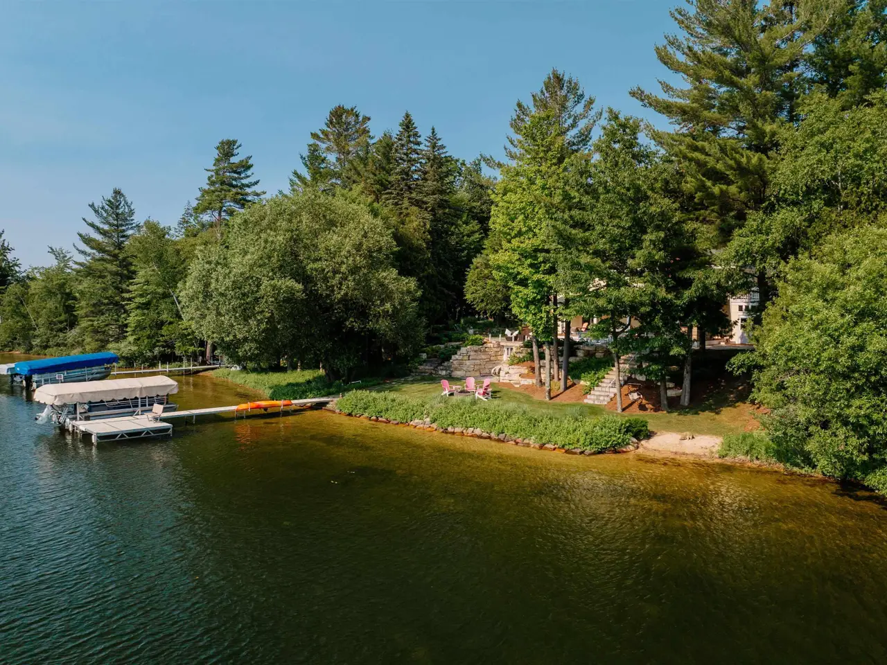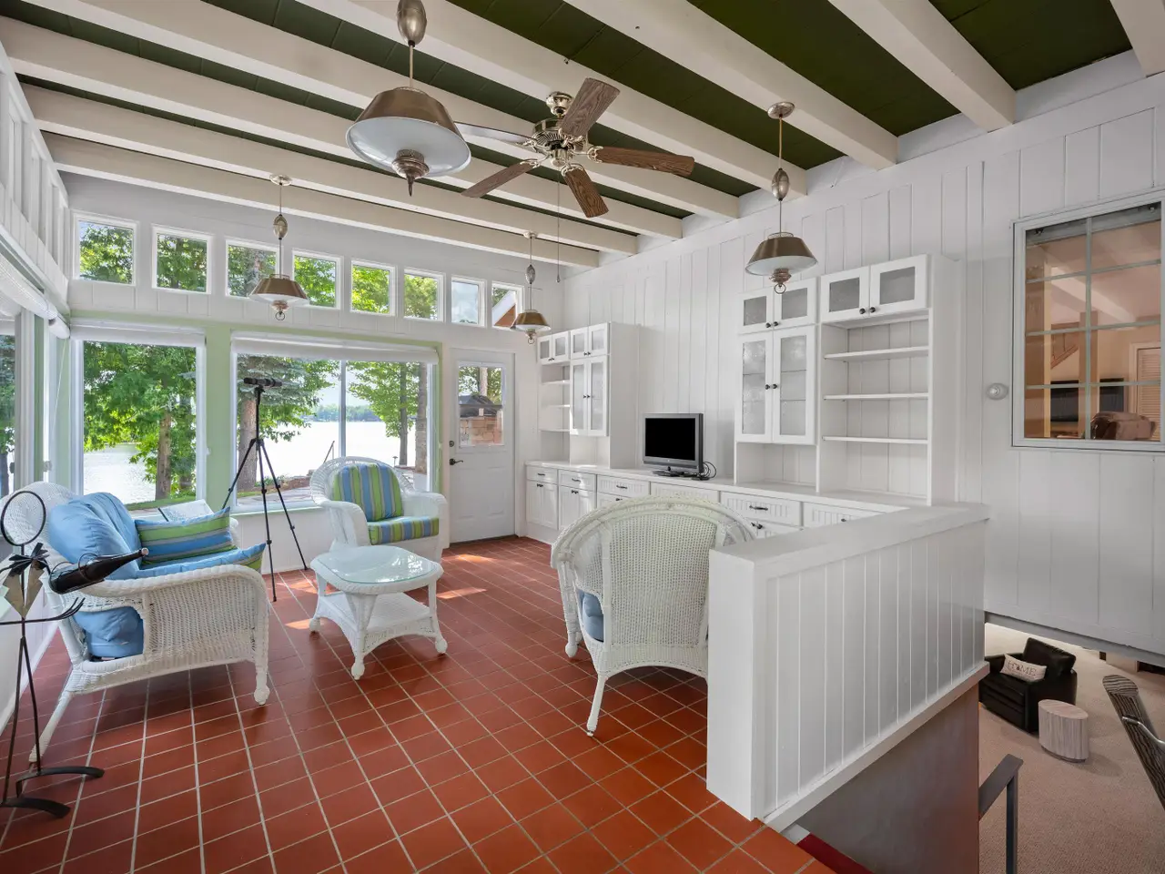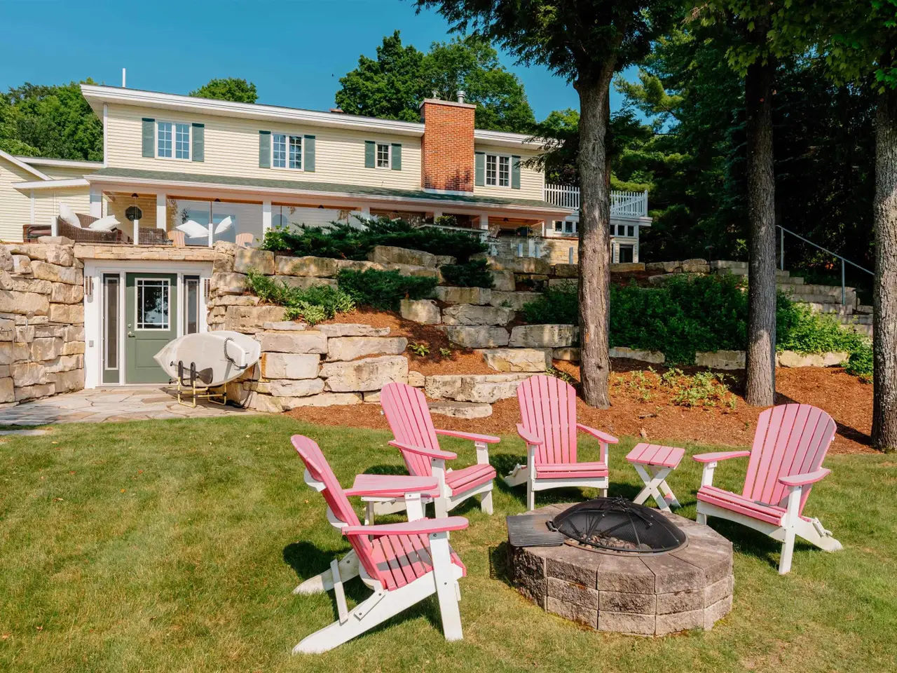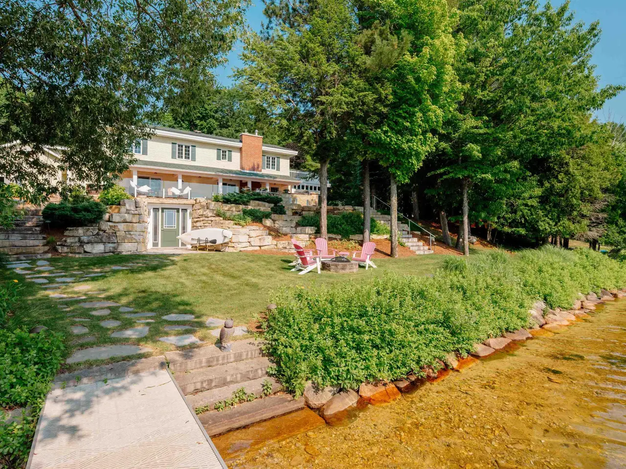 Tucked away on 1.46 beautifully landscaped acres with 170 feet of private frontage on all-sports Bass Lake, this extraordinary estate offers an unparalleled blend of history, charm, and modern luxury--all just minutes from downtown Traverse City. Thoughtfully updated while preserving its rich heritage, this exquisite home invites you into main-floor living at its finest. Soak in serene lake views from the light-filled three-season porch, complete with a cozy fireplace--one of three throughout the home. The private primary suite is a true retreat, featuring a spacious walk-in closet, a luxurious walk-in steam shower, and the comfort of in-floor radiant heating. Upstairs, you'll find additional bedrooms, including a suite with its own private bath and kitchenette--ideal for guests or multigenerational living. Another bedroom offers its own sun porch sanctuary, and there's a flexible office and bonus bedroom space to suit your lifestyle. The walkout lower level is designed for entertaining, with a second kitchenette/bar, a generous family/game room, and a unique tunnel that leads directly to the lake--perfect for effortless access to your waterfront playground. Dock, boat, and shore station? All included--just bring your sunscreen and start making memories. Professionally designed landscaping with outdoor shower and built-in grill enhances the beauty of this rare offering on 343-acre Bass Lake, making it the perfect sanctuary for those who value character, craftsmanship, and an unbeatable location.