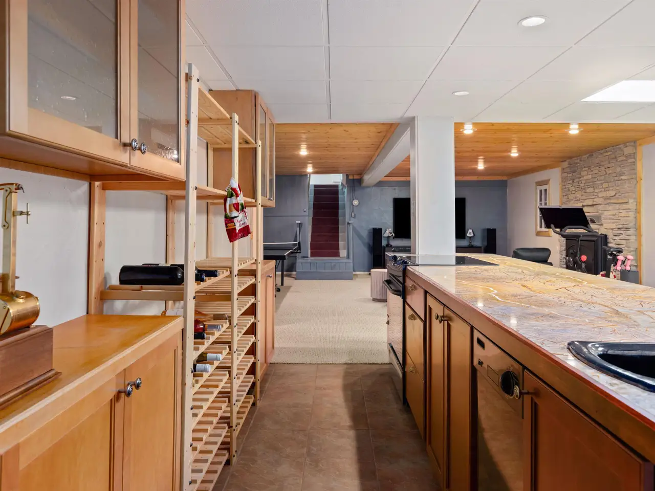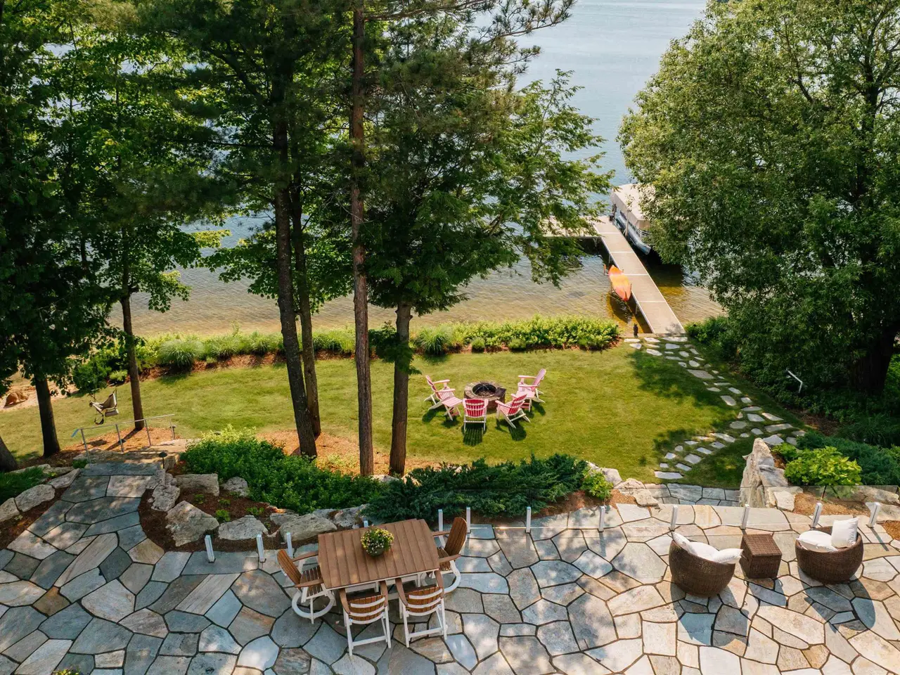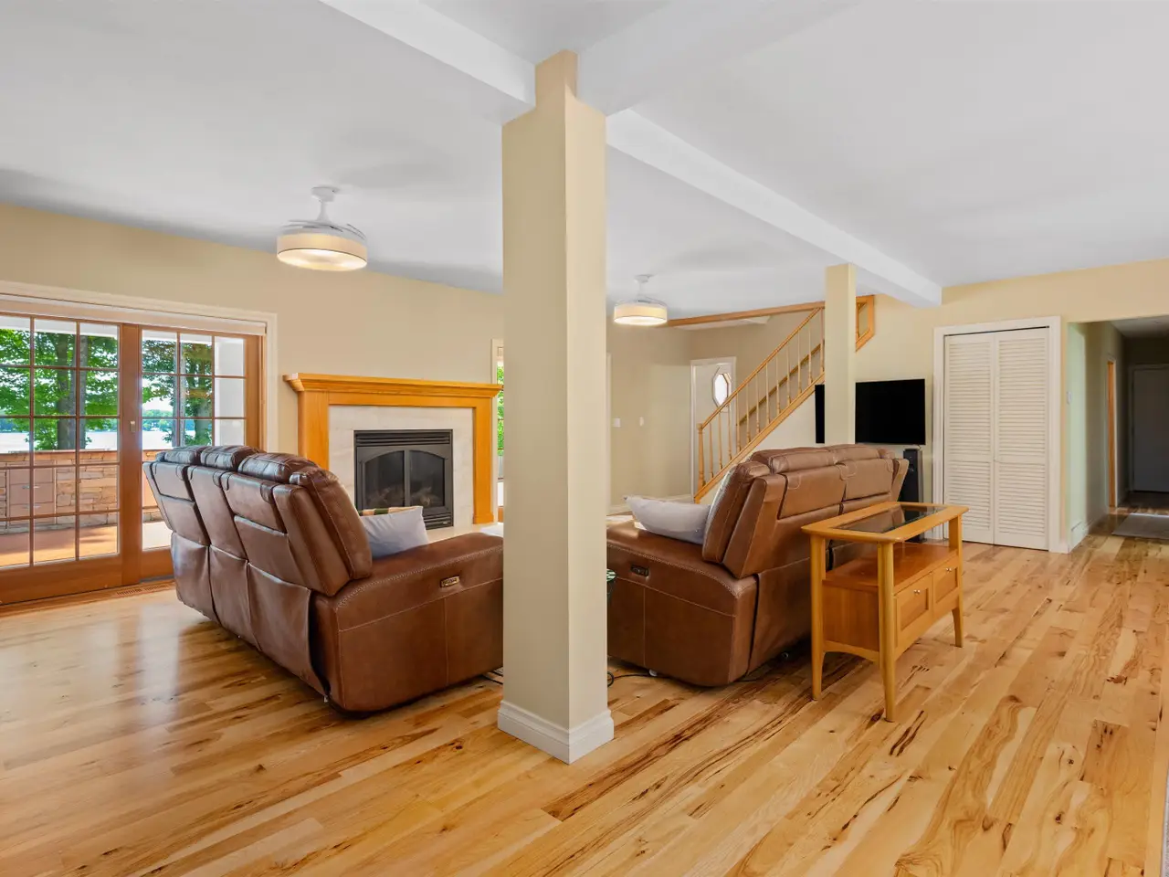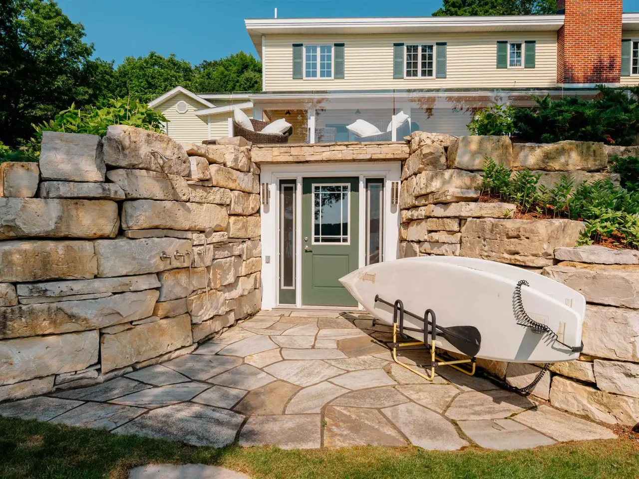 Tucked away on 1.46 beautifully landscaped acres with 170 feet of private frontage on all-sports Bass Lake, this extraordinary estate offers an unparalleled blend of history, charm, and modern luxury--all just minutes from downtown Traverse City. Thoughtfully updated while preserving its rich heritage, this exquisite home invites you into main-floor living at its finest. Soak in serene lake views from the light-filled three-season porch, complete with a cozy fireplace--one of three throughout the home. The private primary suite is a true retreat, featuring a spacious walk-in closet, a luxurious walk-in steam shower, and the comfort of in-floor radiant heating. Upstairs, you'll find additional bedrooms, including a suite with its own private bath and kitchenette--ideal for guests or multigenerational living. Another bedroom offers its own sun porch sanctuary, and there's a flexible office and bonus bedroom space to suit your lifestyle. The walkout lower level is designed for entertaining, with a second kitchenette/bar, a generous family/game room, and a unique tunnel that leads directly to the lake--perfect for effortless access to your waterfront playground. Dock, boat, and shore station? All included--just bring your sunscreen and start making memories. Professionally designed landscaping with outdoor shower and built-in grill enhances the beauty of this rare offering on 343-acre Bass Lake, making it the perfect sanctuary for those who value character, craftsmanship, and an unbeatable location.