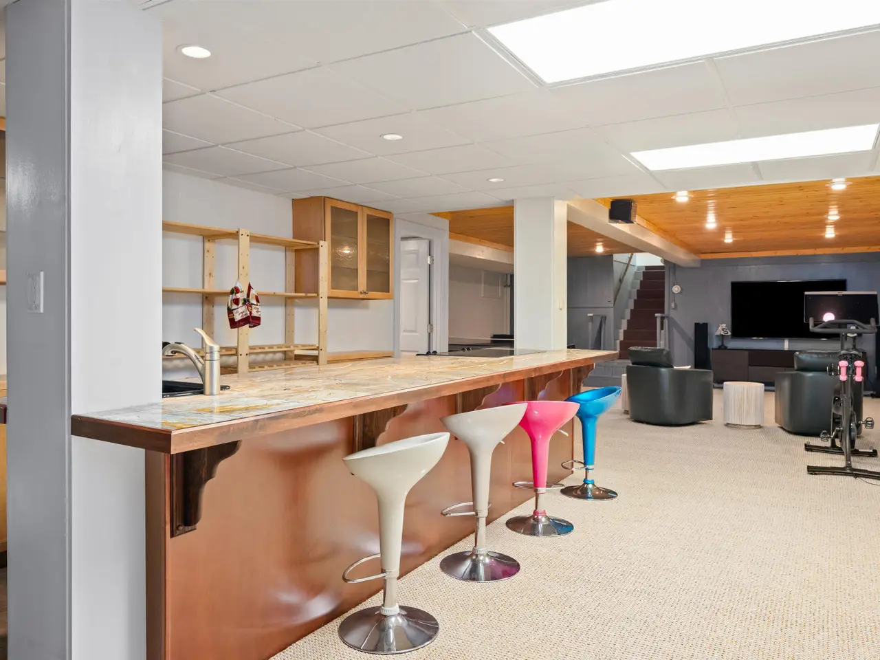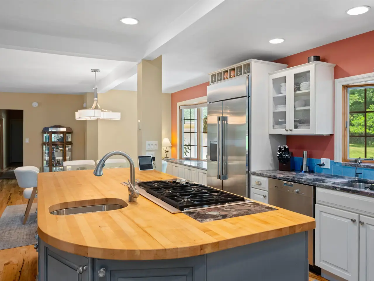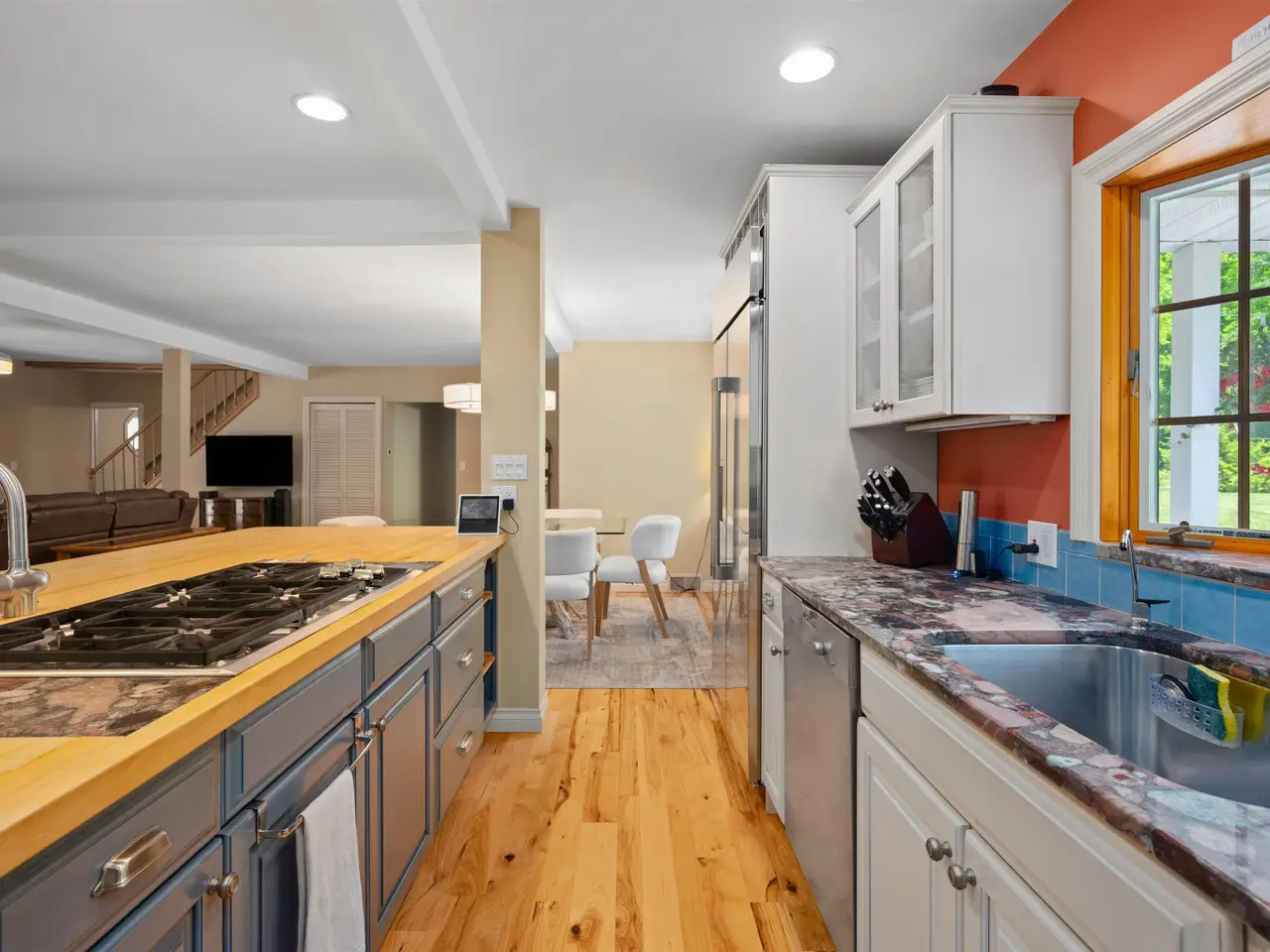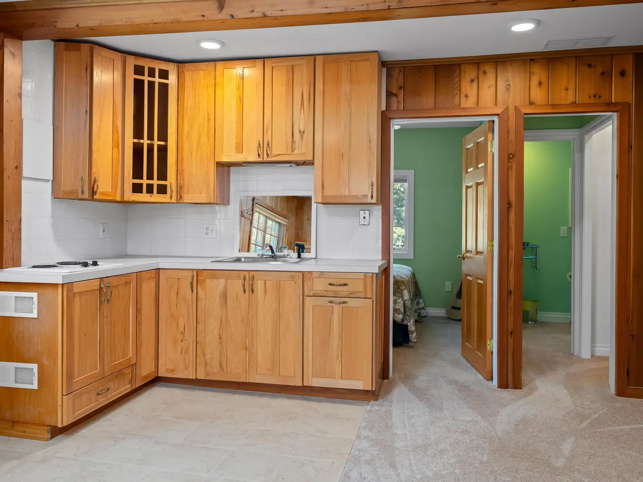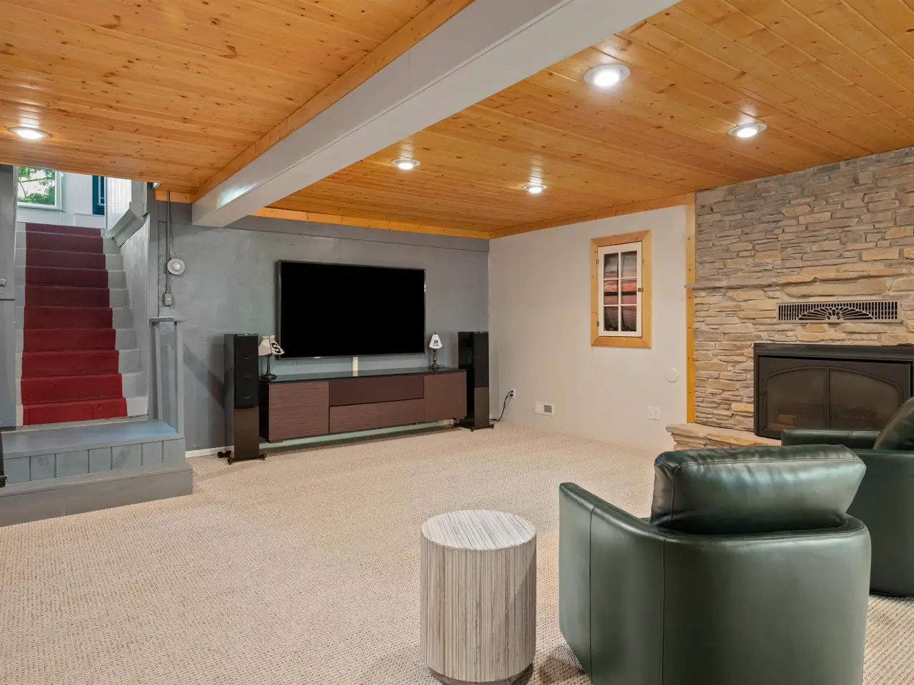 Tucked away on 1.46 beautifully landscaped acres with 170 feet of private frontage on all-sports Bass Lake, this extraordinary estate offers an unparalleled blend of history, charm, and modern luxury--all just minutes from downtown Traverse City. Thoughtfully updated while preserving its rich heritage, this exquisite home invites you into main-floor living at its finest. Soak in serene lake views from the light-filled three-season porch, complete with a cozy fireplace--one of three throughout the home. The private primary suite is a true retreat, featuring a spacious walk-in closet, a luxurious walk-in steam shower, and the comfort of in-floor radiant heating. Upstairs, you'll find additional bedrooms, including a suite with its own private bath and kitchenette--ideal for guests or multigenerational living. Another bedroom offers its own sun porch sanctuary, and there's a flexible office and bonus bedroom space to suit your lifestyle. The walkout lower level is designed for entertaining, with a second kitchenette/bar, a generous family/game room, and a unique tunnel that leads directly to the lake--perfect for effortless access to your waterfront playground. Dock, boat, and shore station? All included--just bring your sunscreen and start making memories. Professionally designed landscaping with outdoor shower and built-in grill enhances the beauty of this rare offering on 343-acre Bass Lake, making it the perfect sanctuary for those who value character, craftsmanship, and an unbeatable location.
