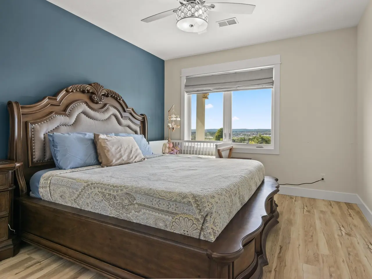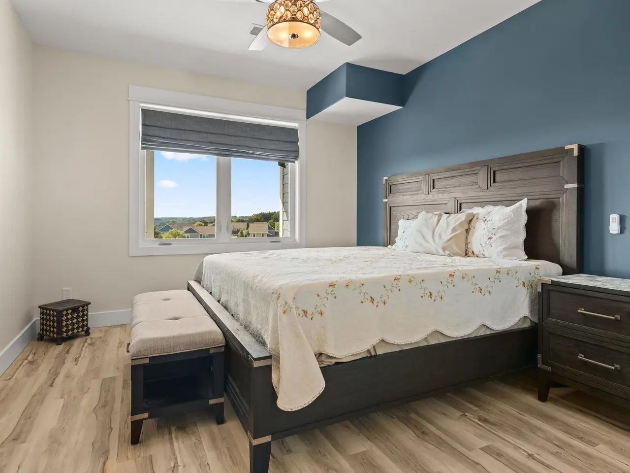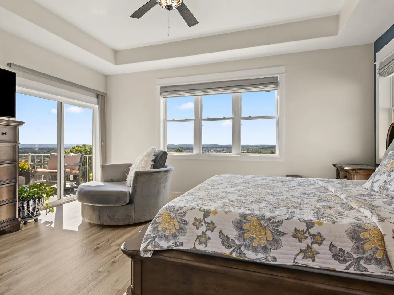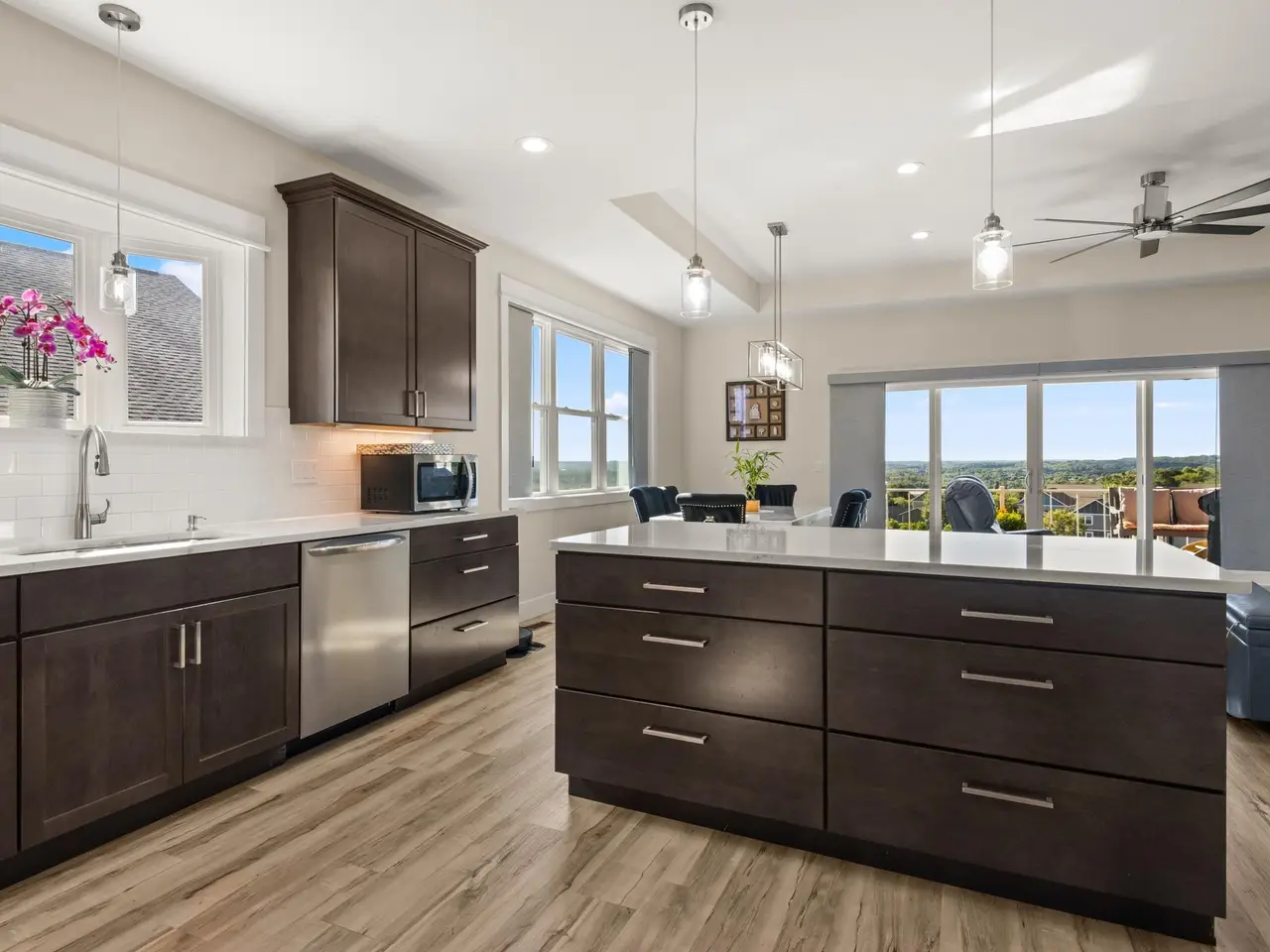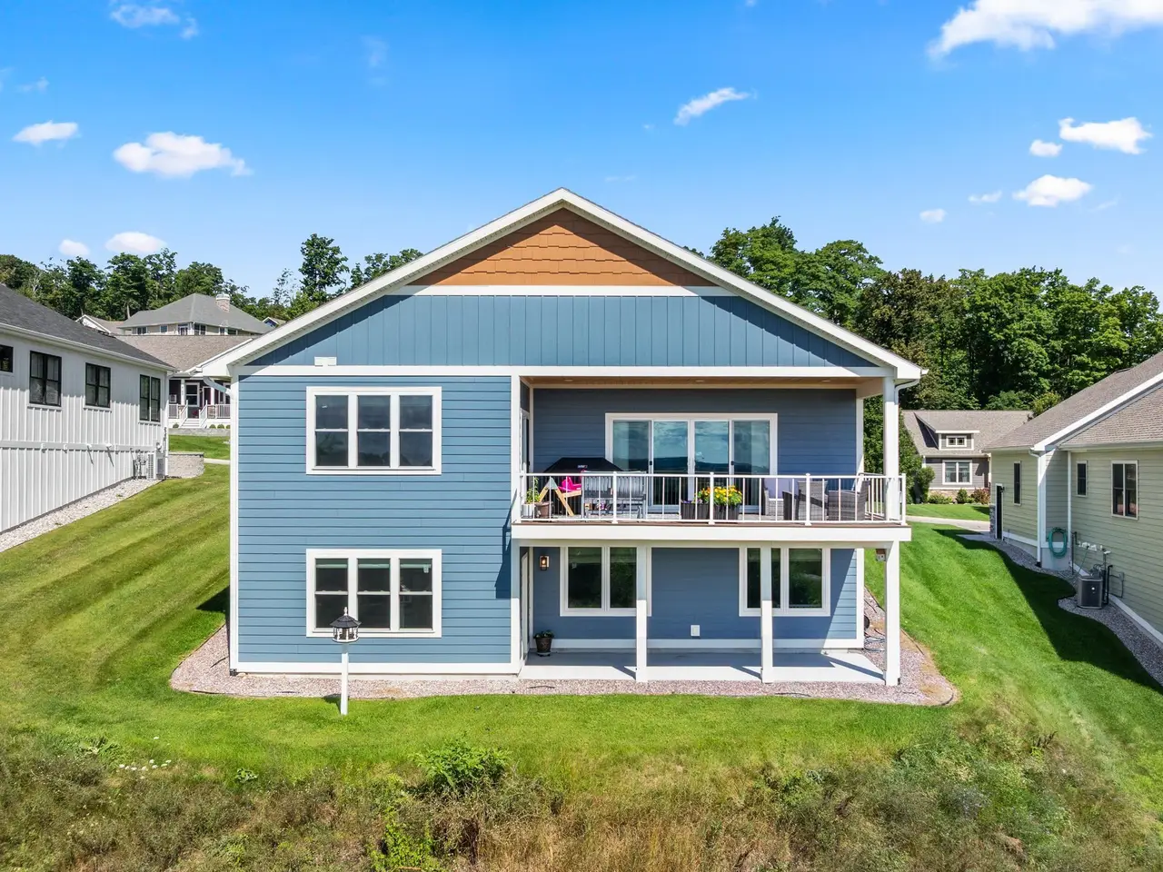 Welcome to Eagles View -- One of Traverse City's Premier Communities! This like-new, one-owner custom-built home offers the perfect blend of style, comfort, and functionality in one of Traverse City's most desirable developments. Its sweeping views make a stunning, picturesque backdrop. Thoughtfully designed with attention to detail throughout, this residence provides the ease of main-floor living in an open and inviting layout. The spacious primary suite features a private bath and a walk-in closet. The primary bedroom has a trayed ceiling to add to the luxurious look. The bright and modern kitchen is equipped with granite countertops, stainless steel appliances, a large island, a pantry, and extra shelving. The living and dining areas showcase a trayed ceiling, a stunning stone-surround gas fireplace, and double...yes, double sliding doors that open to a private rear patio -- perfect for relaxing or entertaining. Luxury vinyl plank flooring runs through the main living areas, and the home includes central air conditioning for year-round comfort. All of the bathrooms have tile flooring. The main floor also offers a convenient laundry room just off the attached two-car finished garage. The finished lower-level walk-out includes two additional bedrooms, a full bathroom, a spacious family room, a recreational area, and ample storage space. Professionally landscaped by Living Art Landscapes, the yard is equipped with irrigation and provides a serene outdoor oasis. This home is ideally located just minutes from downtown Traverse City, Munson Medical Center, shopping, schools, and numerous hiking and biking trails.