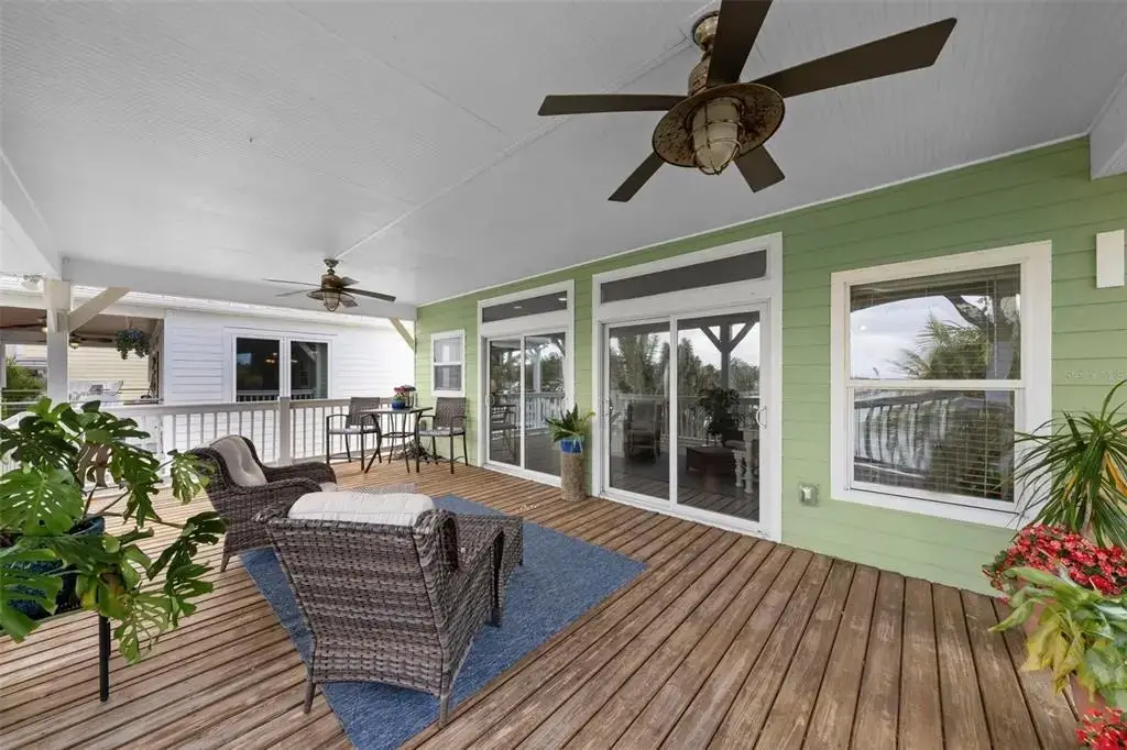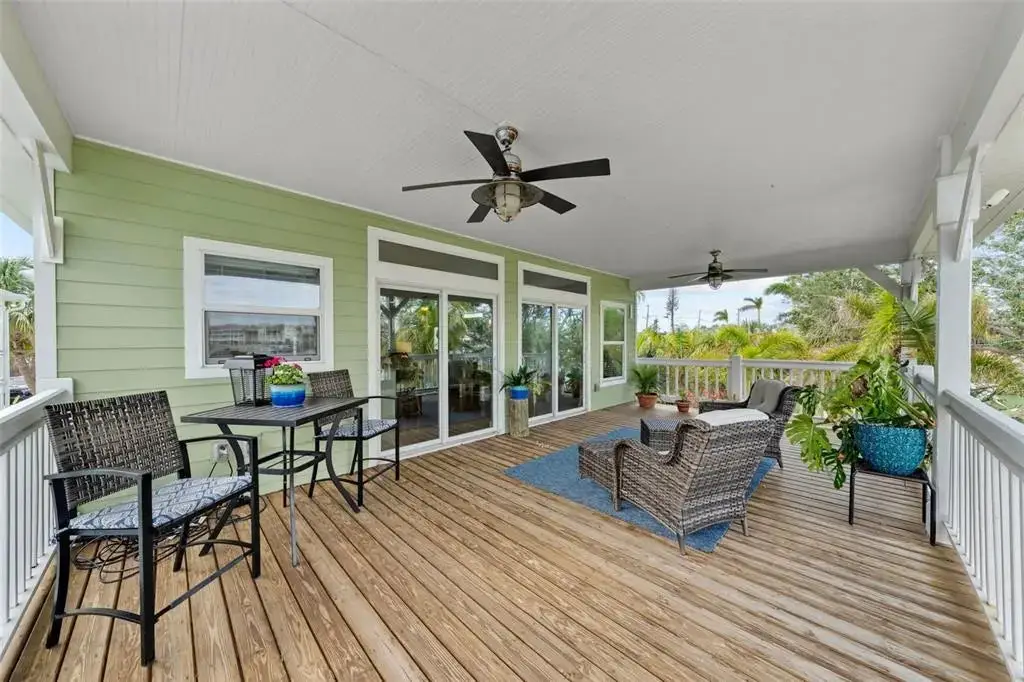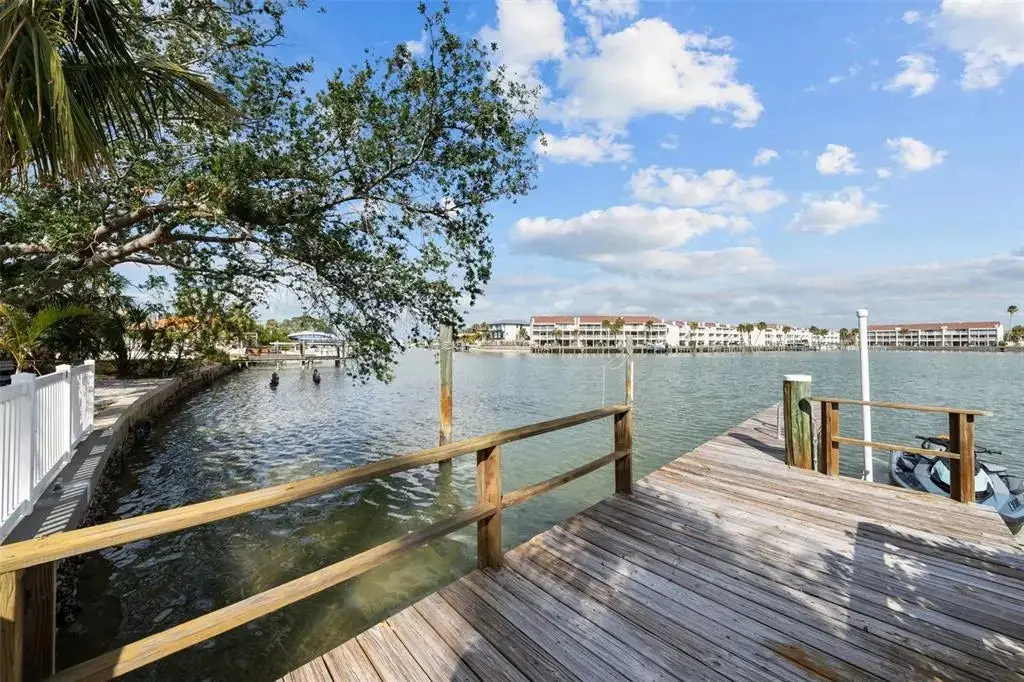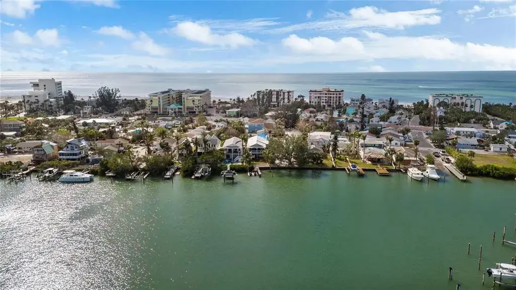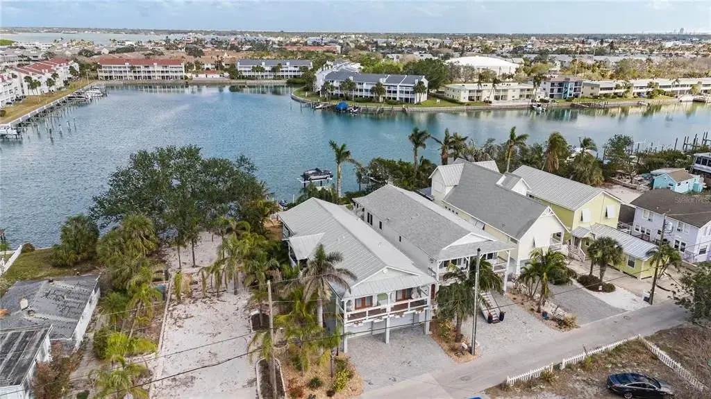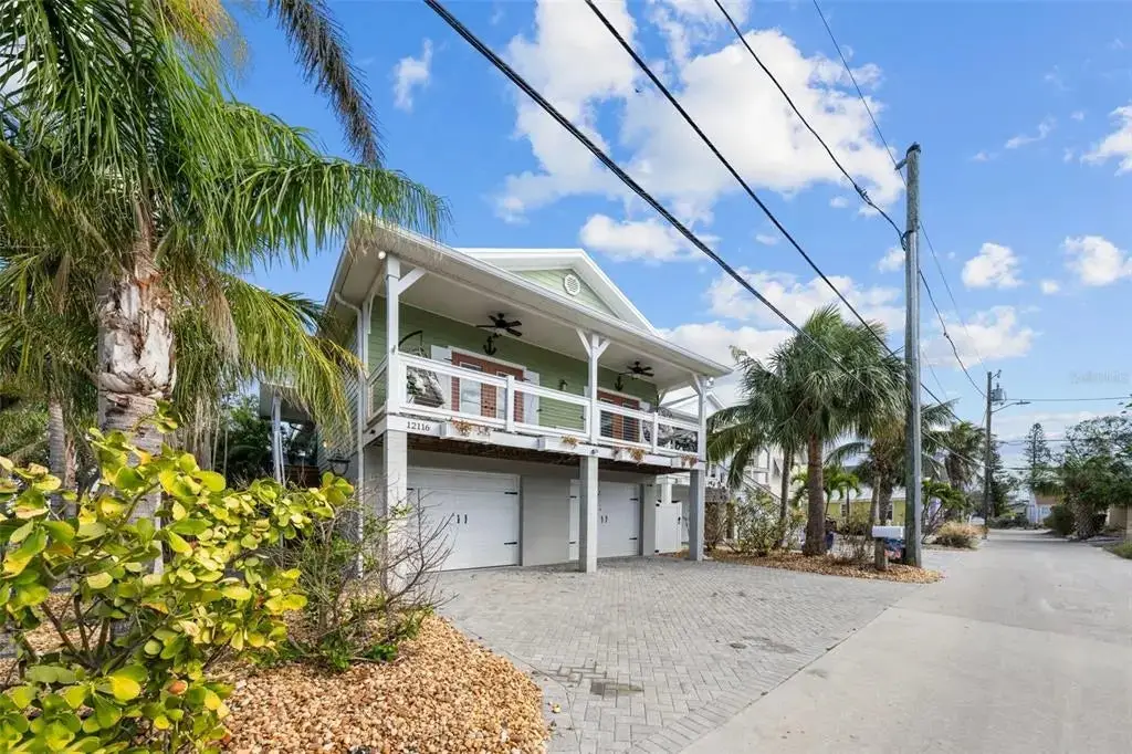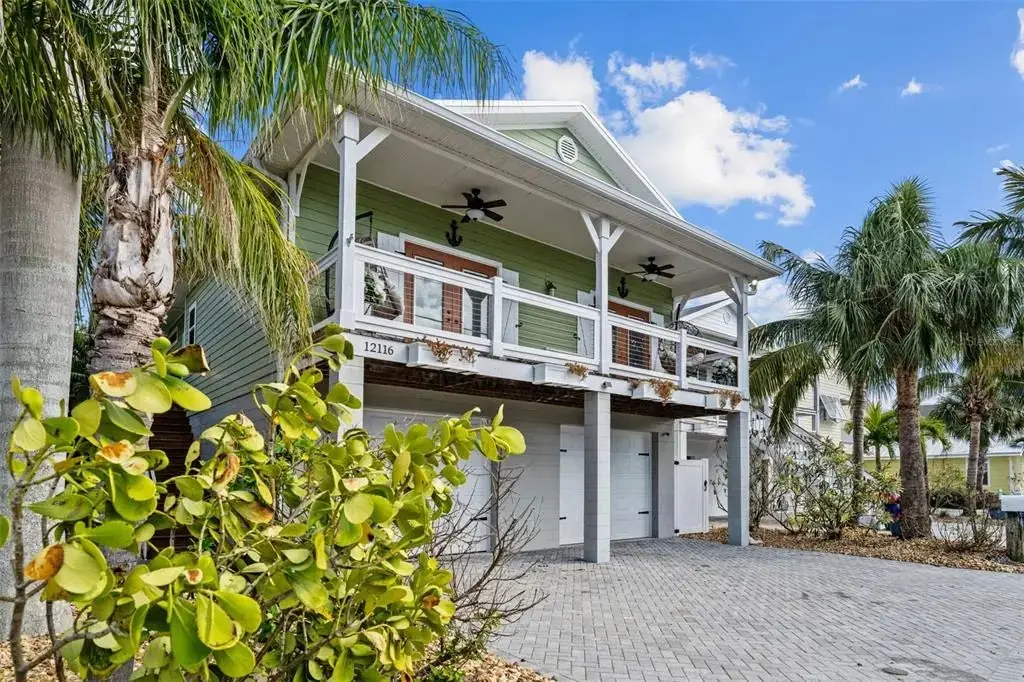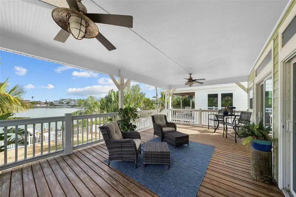 This Coastal Home is a boater's dream in a protected Lagoon on the Intracoastal Waterway with direct access to the Gulf of Mexico. The Key West-style home is wrapped in porches, capturing salty breezes for an endless vacation vibe. This waterfront beach house is found on a corner lot with both sunrise and sunset views. An open floor plan includes a living room with built-in shelving for media, entertainment and personal treasures. The dining area provides a large gathering space while the kitchen has a center island with breakfast bar, open shelving for glassware, a wine nook, and a large pantry for storing dry goods and small appliances. Sand colored granite countertops float above white shaker cabinets with abundant prep and storage space. Take indoor living outside through sliding doors to the covered waterfront living area. All on one living level, the Primary Suite has French doors to the westward porches to delight in sunset skies and nightcaps. The ensuite bath has been updated with large vanity and a gorgeous, tiled steam shower. No need to share a closet, you can each have your very own! The second bedroom also has French doors to the sunset porch to let in the natural light. The third bedroom offers flexibility for residents, guests or a home office. This Custom home has gorgeous eucalyptus flooring and 9’ ceilings throughout, 6” crown moldings, thoughtful built-in features, designer hardware and fixtures – this is a truly special home. While the living area has ample storage space, there is also a large garage with room for several vehicles, golf carts, bicycles, beach toys and fitness area. Take your kayaks and paddleboards right out the back door. The waterfront has a deep-water dock with power, water and even an outdoor shower. Sailboat water, in a no wake zone, has direct access to the Gulf of Mexico via John’s Pass. The backyard oasis has a covered lanai for BBQ and al fresco dining or chilling out in the shade. Tropical palms and bamboo surround the space for privacy, leaving room for a pool. Beach access is just two blocks away with a crosswalk at Gulf Boulevard and 123rd Avenue. Custom built in 2016 at 14 feet above sea level, this home is a fortress, exceeding FEMA requirements with impact glass windows and doors, metal roof, and reinforced engineering. This home is offered fully furnished, Move-in Ready with Motivated Sellers!