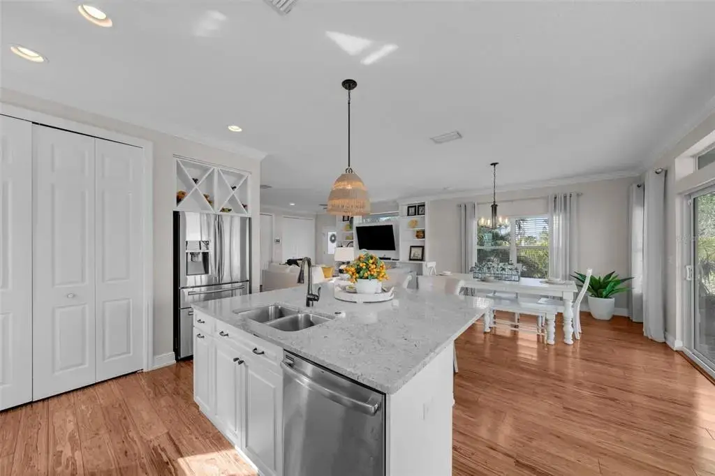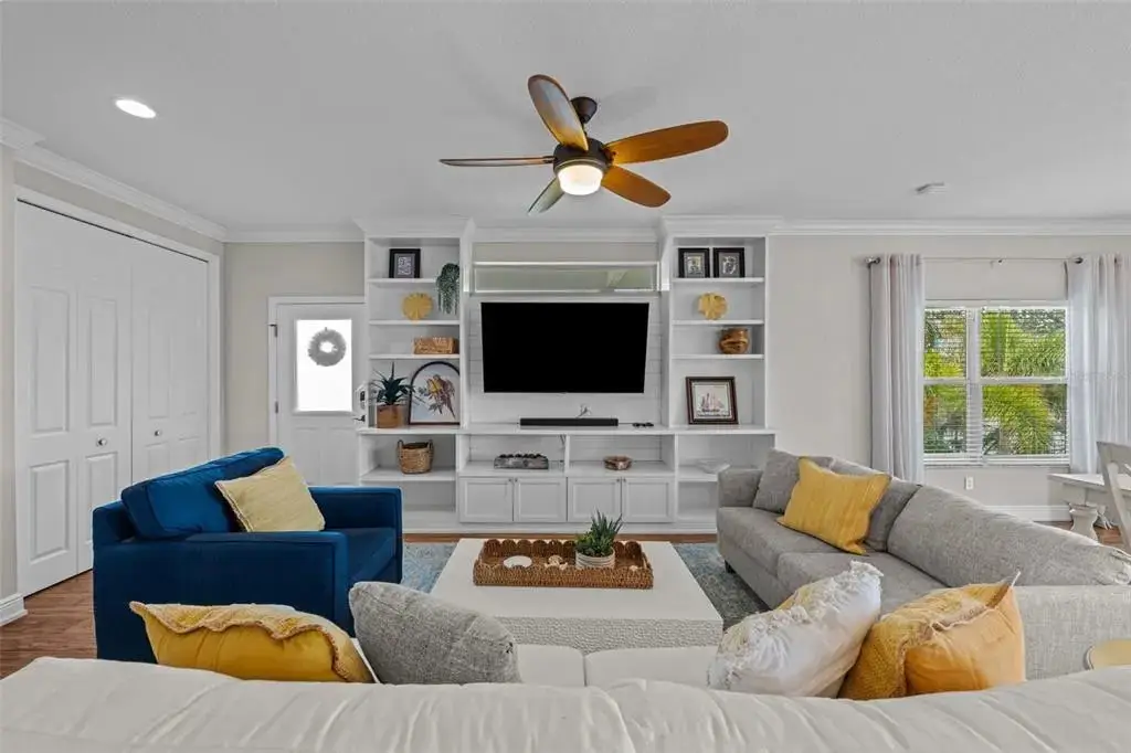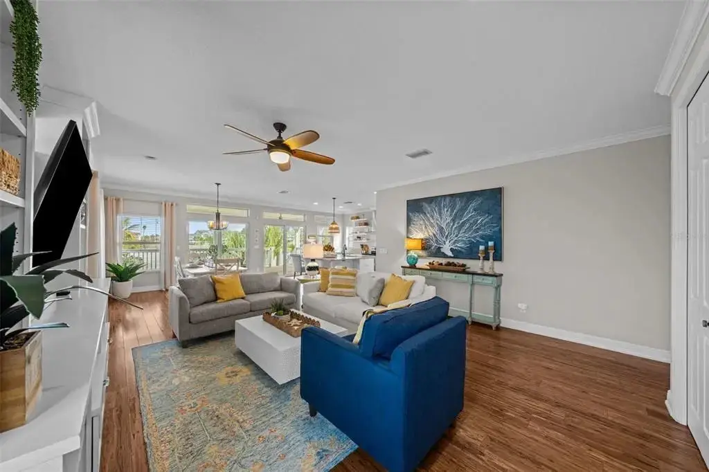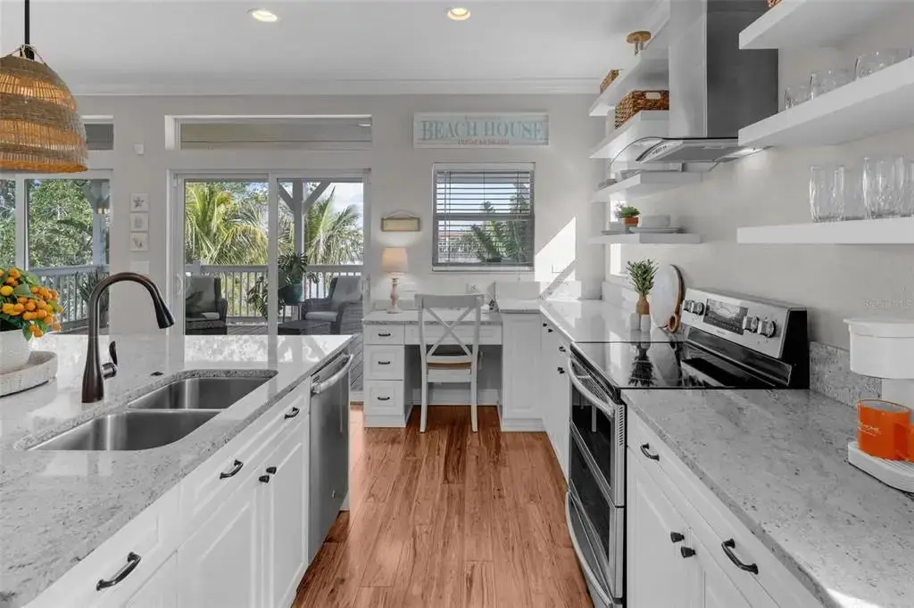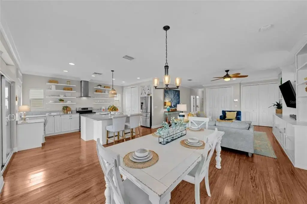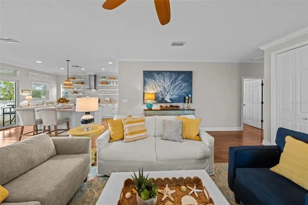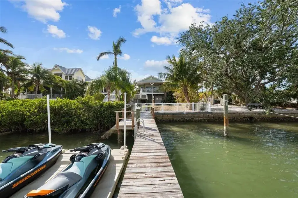 This Coastal Home is a boater's dream in a protected Lagoon on the Intracoastal Waterway with direct access to the Gulf of Mexico. The Key West-style home is wrapped in porches, capturing salty breezes for an endless vacation vibe. This waterfront beach house is found on a corner lot with both sunrise and sunset views. An open floor plan includes a living room with built-in shelving for media, entertainment and personal treasures. The dining area provides a large gathering space while the kitchen has a center island with breakfast bar, open shelving for glassware, a wine nook, and a large pantry for storing dry goods and small appliances. Sand colored granite countertops float above white shaker cabinets with abundant prep and storage space. Take indoor living outside through sliding doors to the covered waterfront living area. All on one living level, the Primary Suite has French doors to the westward porches to delight in sunset skies and nightcaps. The ensuite bath has been updated with large vanity and a gorgeous, tiled steam shower. No need to share a closet, you can each have your very own! The second bedroom also has French doors to the sunset porch to let in the natural light. The third bedroom offers flexibility for residents, guests or a home office. This Custom home has gorgeous eucalyptus flooring and 9’ ceilings throughout, 6” crown moldings, thoughtful built-in features, designer hardware and fixtures – this is a truly special home. While the living area has ample storage space, there is also a large garage with room for several vehicles, golf carts, bicycles, beach toys and fitness area. Take your kayaks and paddleboards right out the back door. The waterfront has a deep-water dock with power, water and even an outdoor shower. Sailboat water, in a no wake zone, has direct access to the Gulf of Mexico via John’s Pass. The backyard oasis has a covered lanai for BBQ and al fresco dining or chilling out in the shade. Tropical palms and bamboo surround the space for privacy, leaving room for a pool. Beach access is just two blocks away with a crosswalk at Gulf Boulevard and 123rd Avenue. Custom built in 2016 at 14 feet above sea level, this home is a fortress, exceeding FEMA requirements with impact glass windows and doors, metal roof, and reinforced engineering. This home is offered fully furnished, Move-in Ready with Motivated Sellers!