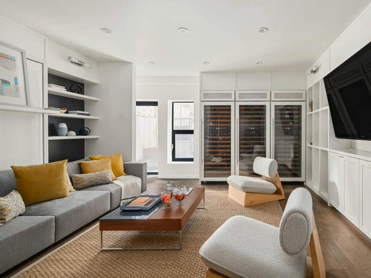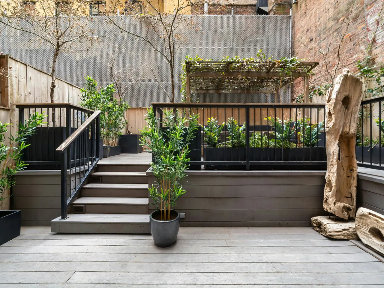 This expansive 3,300 SF townhouse offers a rare blend of privacy, space, and modern luxury in the heart of North Tribeca. With five bedrooms, five bathrooms, and a private 630 SF patio, the home is thoughtfully designed across three levels. Enter through a private Washington Street entrance or the 24-hour attended condo lobby. The main level features a dramatic 41-foot-long great room with soaring ceilings, ideal for entertaining and displaying art. The open-concept kitchen is equipped with premium appliances and generous storage. Two well-proportioned bedrooms overlooking the private garden, and two full baths complete this floor. Upstairs, the secluded primary suite offers a peaceful retreat with a spa-like en-suite bath and a windowed walk-in closet. The lower level serves as a versatile media room or guest suite, featuring a Murphy bed, full bath, built-in wine storage, and direct access to the landscaped two-level terrace. Designed for seamless indoor-outdoor living, the terrace includes a gazebo, lush plantings, and outdoor furnishings, including a built-in banquet and a dining table for ten. Set on a quiet cobblestone street, The Fairchild is a boutique condominium with a full-time doorman, private storage, and bike storage. Just one block from Hudson River Park and moments from top restaurants and the Fouquet Hotel, this home offers the best of townhouse-style living with the convenience of a full-service building.