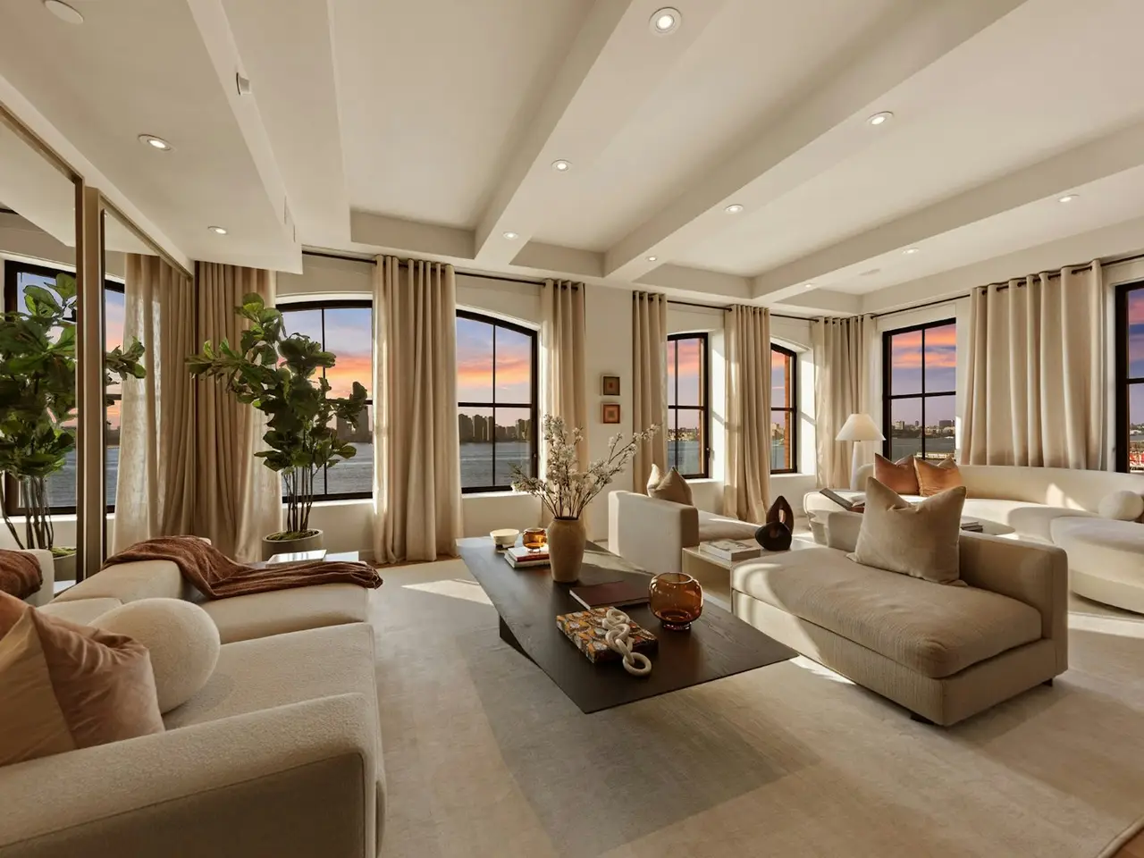 Introducing a luxurious home with 4 bedrooms plus an office and den, offering 4,120 square feet of meticulously designed living space, where elegance meets abundance. This exquisite residence has recently undergone a lavish, full-scale renovation, with painstaking attention paid to every detail. The corner living room offers breathtaking views of vibrant sunsets over the Hudson River through seven expansive arched windows, set against solid white oak wood floors. The kitchen is a masterpiece, featuring new custom white oak cabinetry complemented by Borghini Calcutta marble countertops and backsplash. It's outfitted with top-of-the-line appliances, including a Sub-Zero refrigerator, extra refrigerator drawers, and wine cooler, Miele dishwasher, Wolf cooktop, oven, and microwave, XO range hood, and a custom pantry. The river-facing primary suite offers captivating views and includes a magnificent walk-in closet with integrated lighting throughout all three closets and adorned with custom wall panels. The spa-inspired en-suite bathroom boasts heated Statuario Premier Carrara marble floors, a tub deck, Arabescato decorative wall tiles by Walker Zanger, and a new Kohler tub. Additional features include a new Toto toilet, RH vanity base, and Statuario Premier Carrara countertop, complemented by Water Works fixtures in polished nickel. Down a private corridor, you'll discover a stunning home office/library with a custom walk-in closet and two large windows offering sweeping northern views. The residence includes three additional spacious bedrooms, each with its own luxurious suite bath, complete with Carrara marble, Toto toilets, designer fixtures, and custom closets. A generous playroom/TV den, featuring a separate entrance and a custom-built mudroom, adds to the home's functionality. This impressive "smart" home is equipped with automated blackout shades, an integrated speaker system, three-zone central heating and air conditioning, and fully outfitted closets throughout. Situated in TriBeCa's historic district at 250 West Street, this landmark building from 1906 has been beautifully transformed into a collection of luxury condominiums. Residents enjoy unparalleled amenities, including a sophisticated lobby with a separate library lounge, a 61-foot swimming pool, a state-of-the-art fitness center, and a delightful children's playroom. The building also features a sprawling 5,000 sq ft rooftop terrace with panoramic views, sundeck, lounge, dining area, and a vegetable garden. Just across the street, Hudson River Park's Piers 25 and 26 offer an array of recreational amenities, including a children's playground, miniature golf course, beach volleyball courts, and more. Located just a few blocks from the Greenwich Hotel, Fouquet Hotel, and an array of downtown's finest dining destinations.