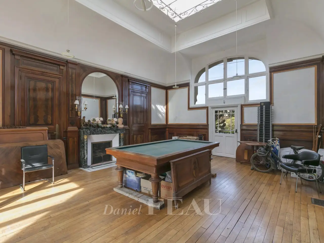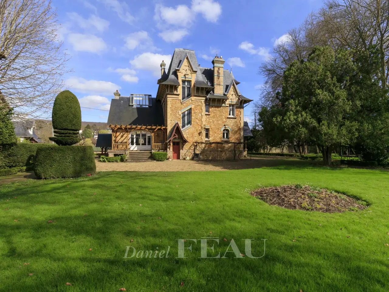 This elegant early 20th century villa with annexes is set in about 1.5 hectares of grounds. The main house includes a living/reception room and dining room with a fireplace, a kitchen, and a magnificent near 44 sqm billiard room featuring 5-metre high ceilings and mahogany panelling opening onto a terrace with a pergola. Upstairs are three bedrooms including a master, a bathroom and a separate wc. Three further bedrooms, a dressing room and a wc are on the 2nd floor. With a convertible attic. On a total basement with a good ceiling height. The caretaker’s lodge includes a living room, a kitchen/dining room, a bedroom with a fireplace, and a shower room/wc. A garage with a workshop includes a 2-room apartment to renovate and an attic. In a prime location enjoying a view of the Seine, the property oozes with period charm and features a tiled façade, wrought iron, mosaic floor tiles, parquet flooring, marble fireplaces, mouldings and stained glass. It is accessed by means of a peaceful cul-de-sac on the riverside. A 12-minute walk from the station, close to the schools including renowned Notre-Dame Les Oiseaux High School, 5 minutes from the nearest shops, and benefiting from easy motorway access.
