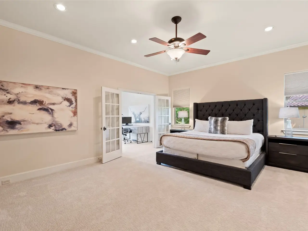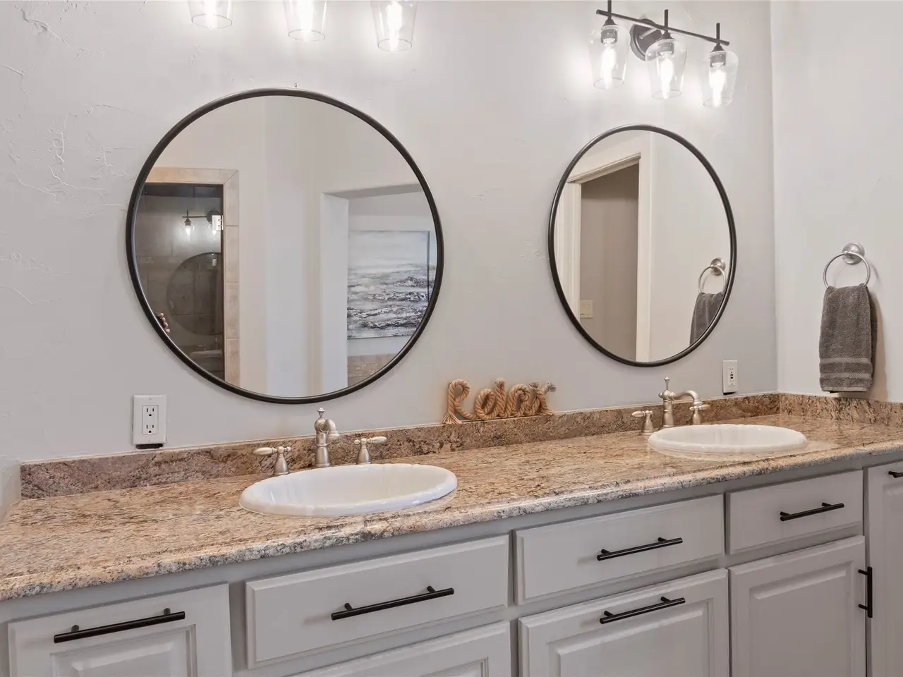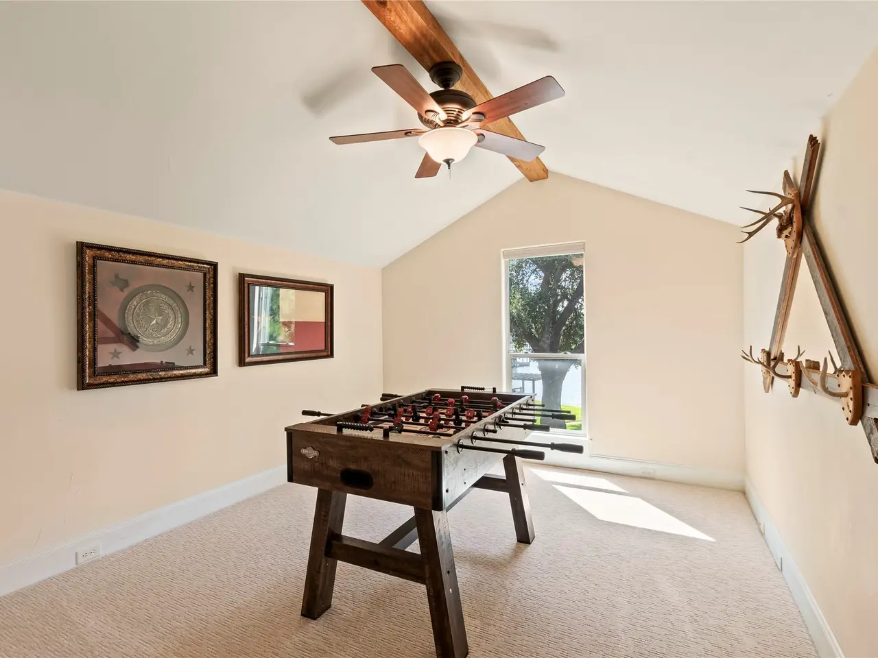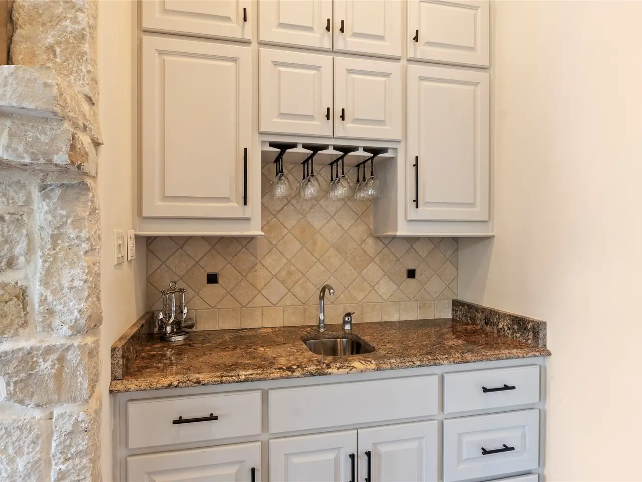 Situated on a stunning half-acre waterfront lot with an impressive 198 feet of shoreline, this expansive five bedroom, 3.5-bath home offers breathtaking open water views and deep water access in one of Cedar Creek Lakes most desirable subdivisions. Perfect as a full-time residence, vacation retreat, or short-term rental, this home is designed for hosting and entertaining. Inside, the living room boasts luxury vinyl plank flooring, a gas fireplace, a wet bar, and panoramic views of the lake. The kitchen features granite countertops, a built-in refrigerator, and an abundance of cabinet and counter space, complemented by a cozy breakfast area and formal dining room ideal for holiday gatherings. The primary suite offers lake views, a spacious ensuite with double vanities, a soaking tub, walk-in shower, and a large walk-in closet, as well as a private waterside sitting area perfect for a home office or peaceful retreat. Upstairs includes three additional bedrooms, two more bathrooms, a generously sized bunk room with a second wet bar, and a large game room with expansive picture windows showcasing unobstructed water views. Outdoor living is elevated with a wraparound deck composite deck overlooking a beautifully landscaped yard, complete with a fire pit, hot tub, and a massive composite-deck 1,337 square foot boathouse featuring a boat slip, dual jet ski platform, covered sitting area, and a party deck with miles of open water vistas. Oversized three-car garage accommodates two vehicles plus room for a golf cart and storing all those water toys. Circle drive and large driveway accommodate several vehicles. The home is sold fully furnished with limited exclusions, making it truly turnkey and ready for immediate enjoyment. Proven short-term rental history available.